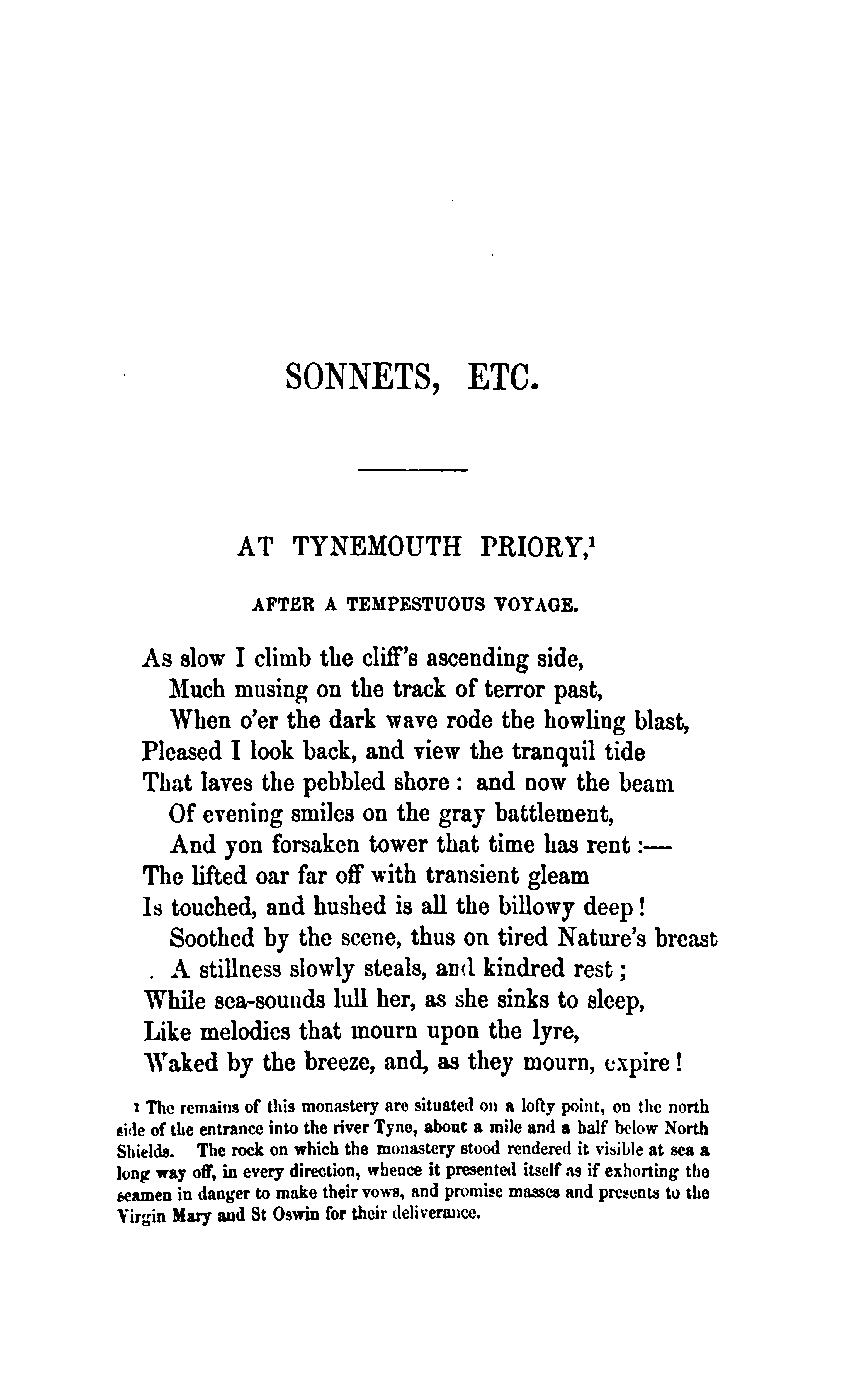 AT TYNEMOUTH PRIORY,66 The remains of this monastery are situated on a lofty point, on the north side of the entrance into the river Tyne, about a mile and a half below North Shields. The rock on which the monastery stood rendered it visible at sea a long way off, in every direction, whence it presented itself as if exhorting the seamen in danger to make their vows, and promise masses and presents to the Virgin Mary and St Oswin for their deliverance.