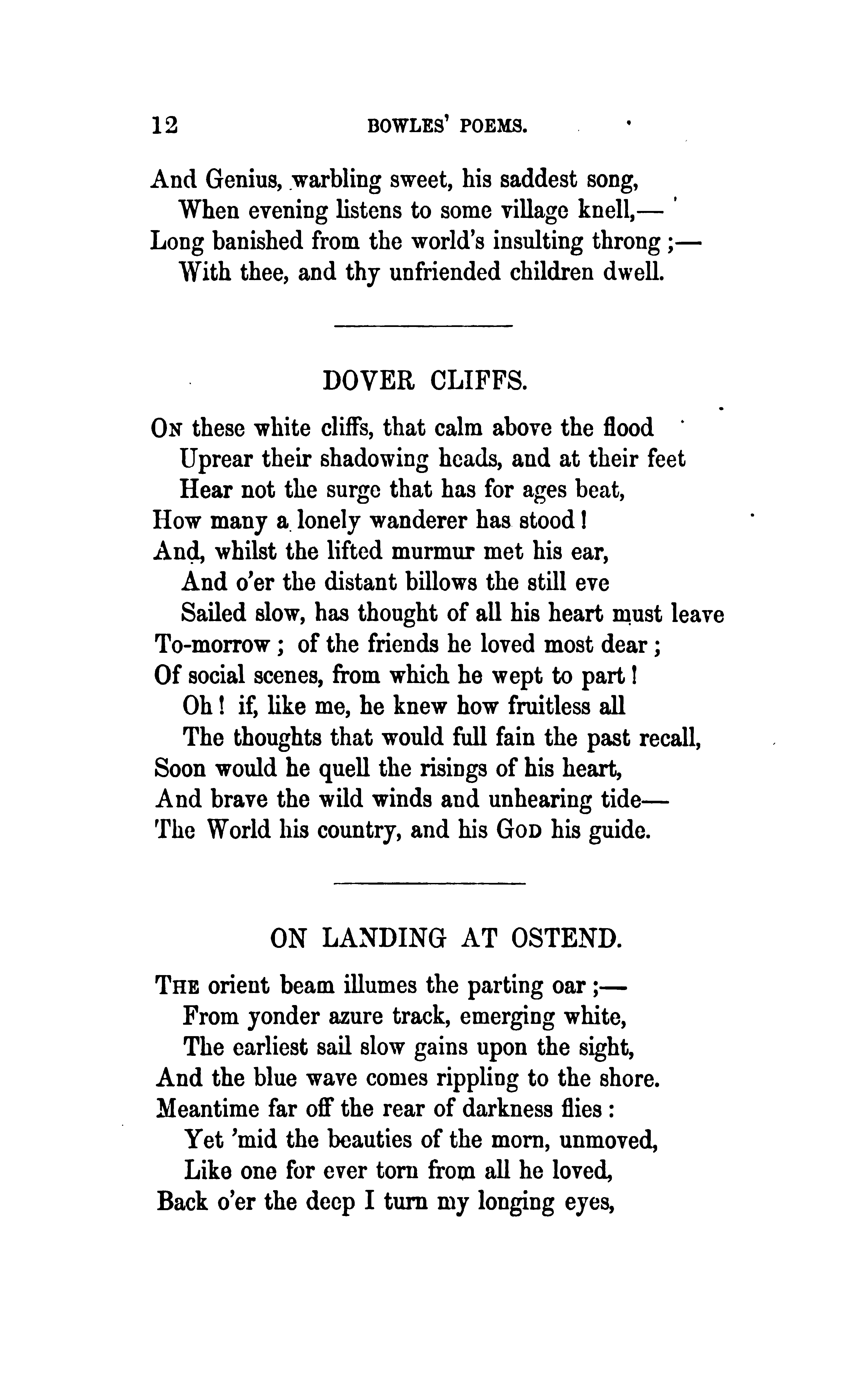 Bowles, William Lisle, 1762-1850. The Poetical Works of William Lisle Bowles, Vol. I. With Memoir, Critical Dissertation, and Explanatory Notes by George Gilfillan. Edinburgh: James Nichol, 9 North Bank Street..., 1855, p. 12. (Page images digitized from a copy held at the University of California Libraries.)