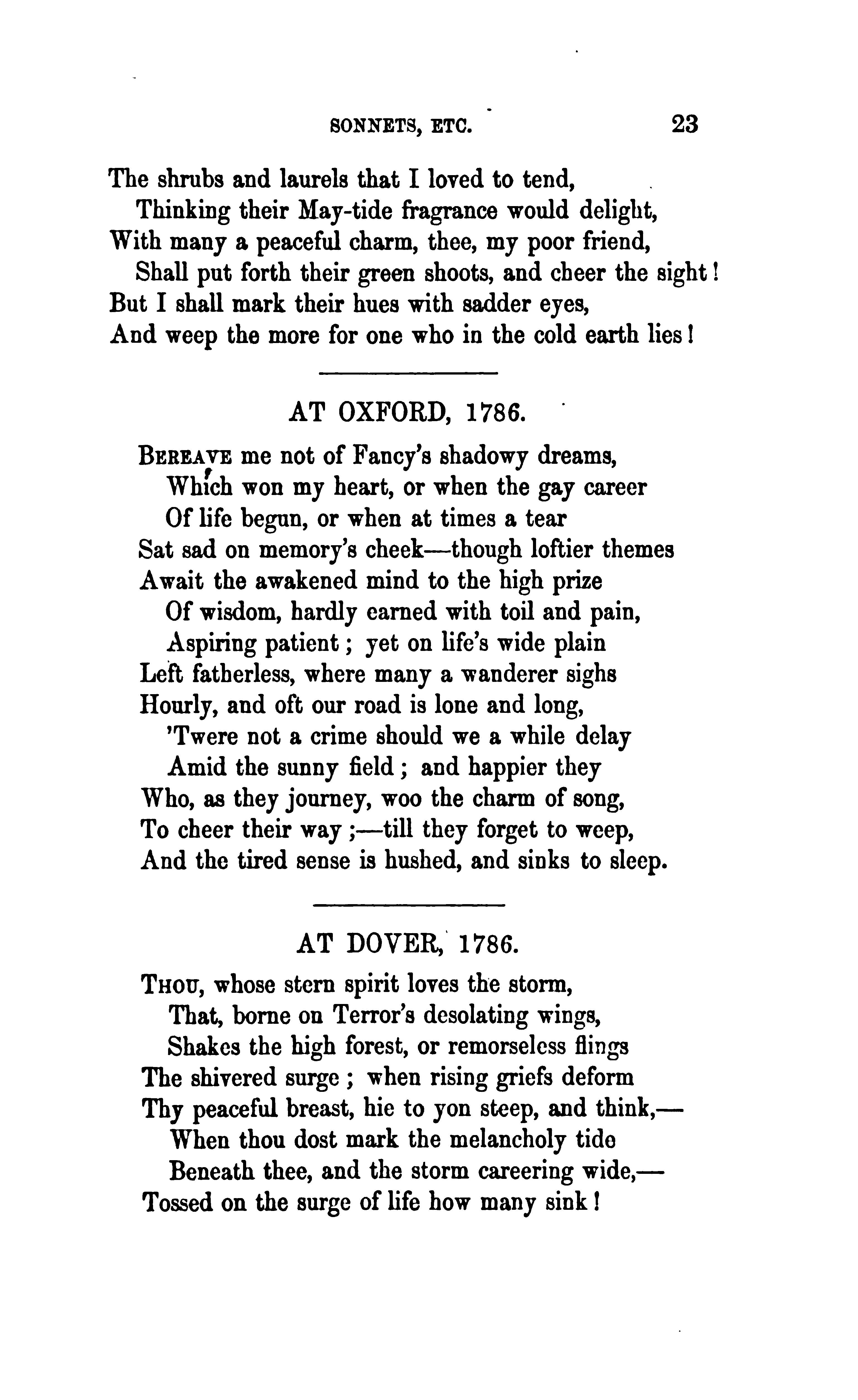 Bowles, William Lisle, 1762-1850. The Poetical Works of William Lisle Bowles, Vol. I. With Memoir, Critical Dissertation, and Explanatory Notes by George Gilfillan. Edinburgh: James Nichol, 9 North Bank Street..., 1855, p. 23. (Page images digitized from a copy held at the University of California Libraries.)