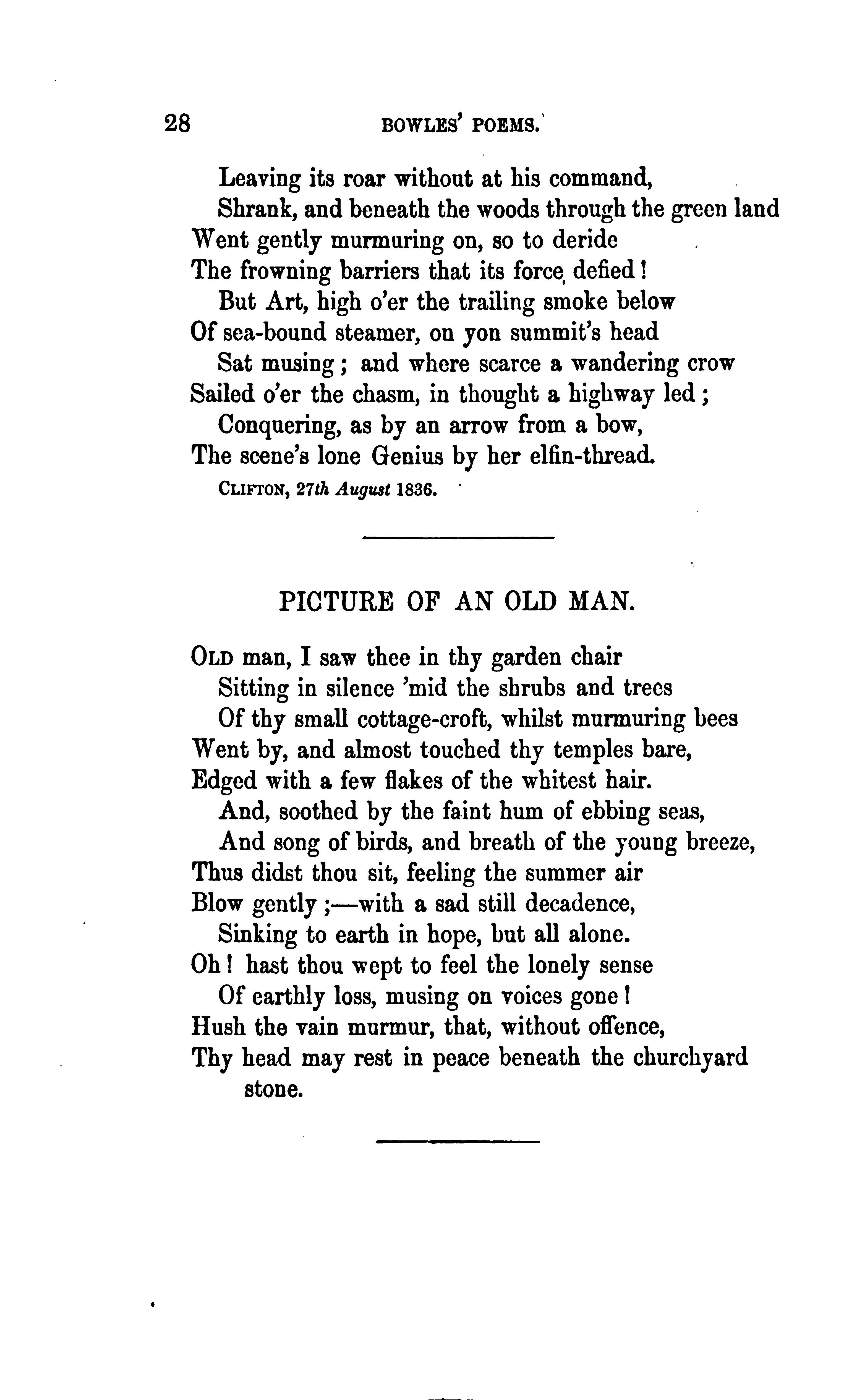 Bowles, William Lisle, 1762-1850. The Poetical Works of William Lisle Bowles, Vol. I. With Memoir, Critical Dissertation, and Explanatory Notes by George Gilfillan. Edinburgh: James Nichol, 9 North Bank Street..., 1855, pp. 28-29. (Page images digitized from a copy held at the University of California Libraries.)