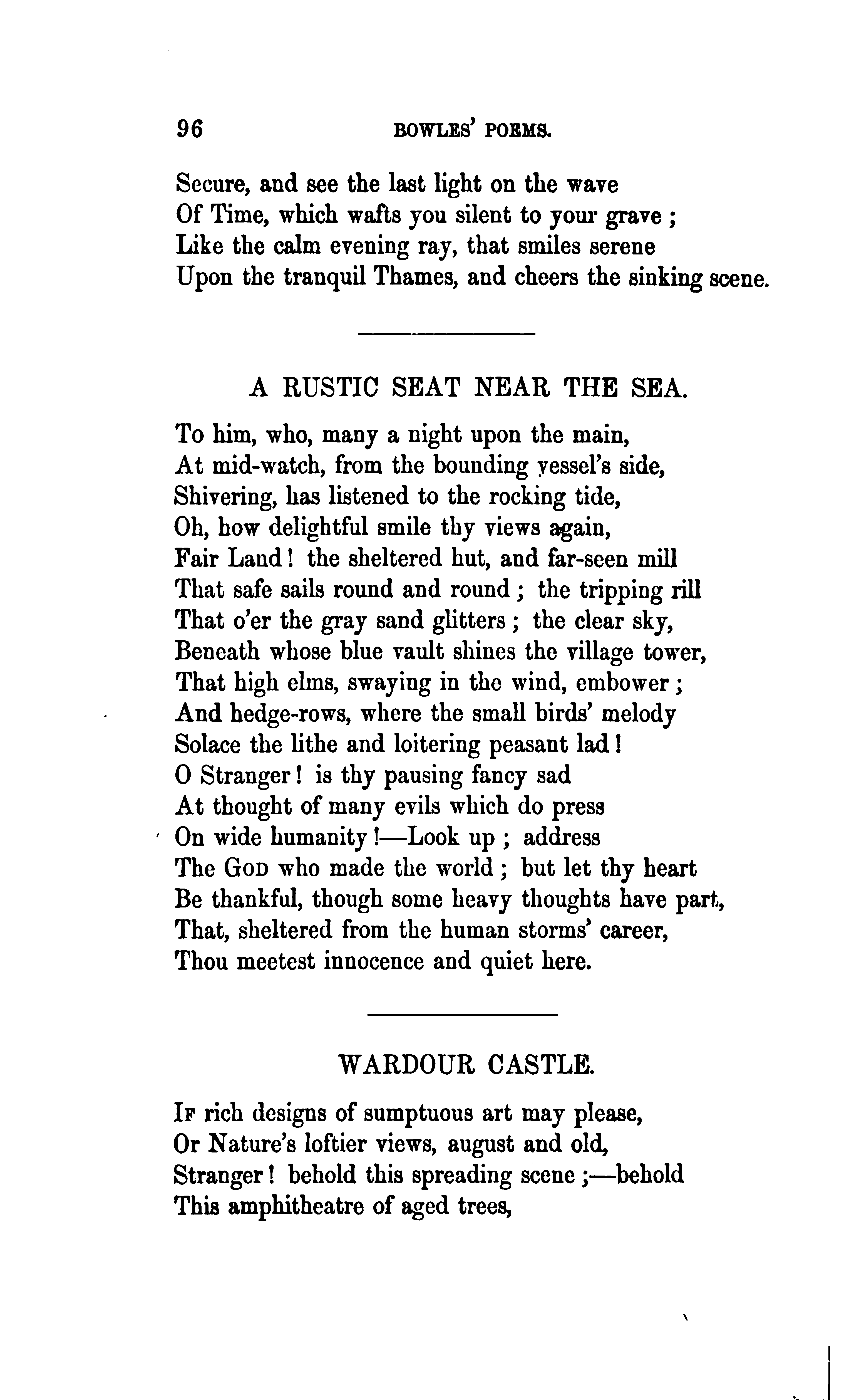 Bowles, William Lisle, 1762-1850. The Poetical Works of William Lisle Bowles, Vol. I. With Memoir, Critical Dissertation, and Explanatory Notes by George Gilfillan. Edinburgh: James Nichol, 9 North Bank Street..., 1855, pp. 95-96. (Page images digitized from a copy held at the University of California Libraries.)