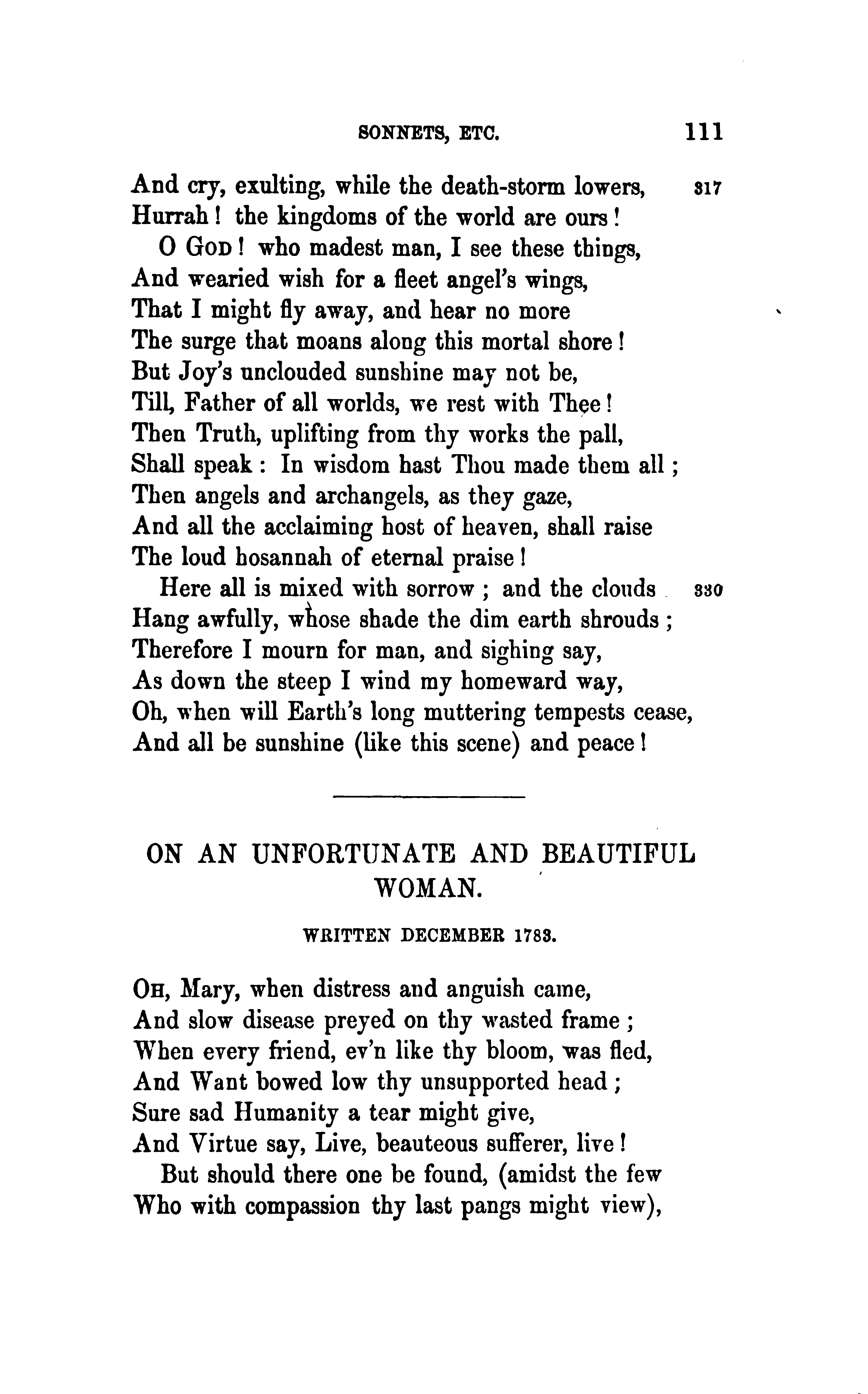 - ON AN UNFORTUNATE AND BEAUTIFUL WOMAN. WRITTEN DECEMBER 1783. ()