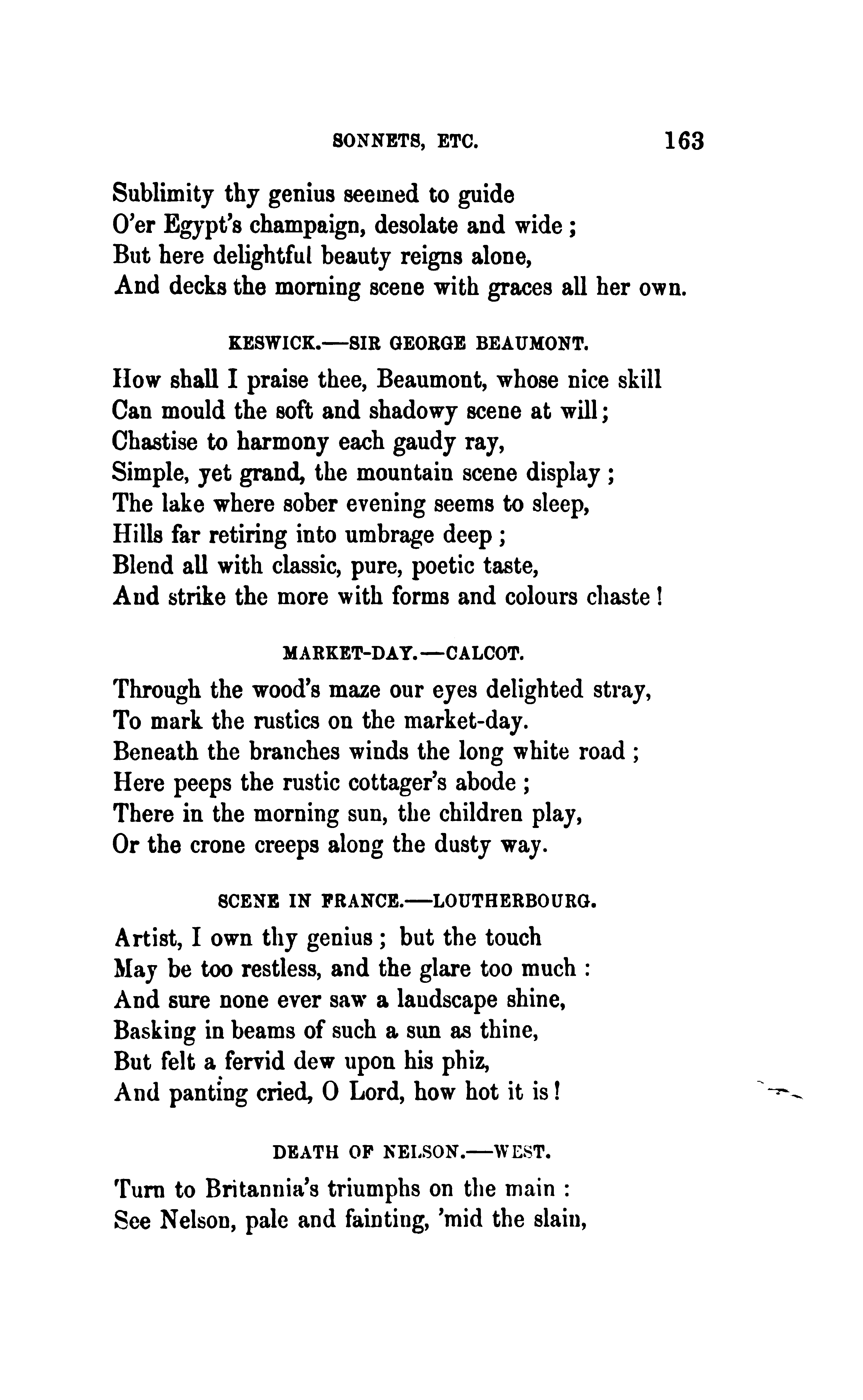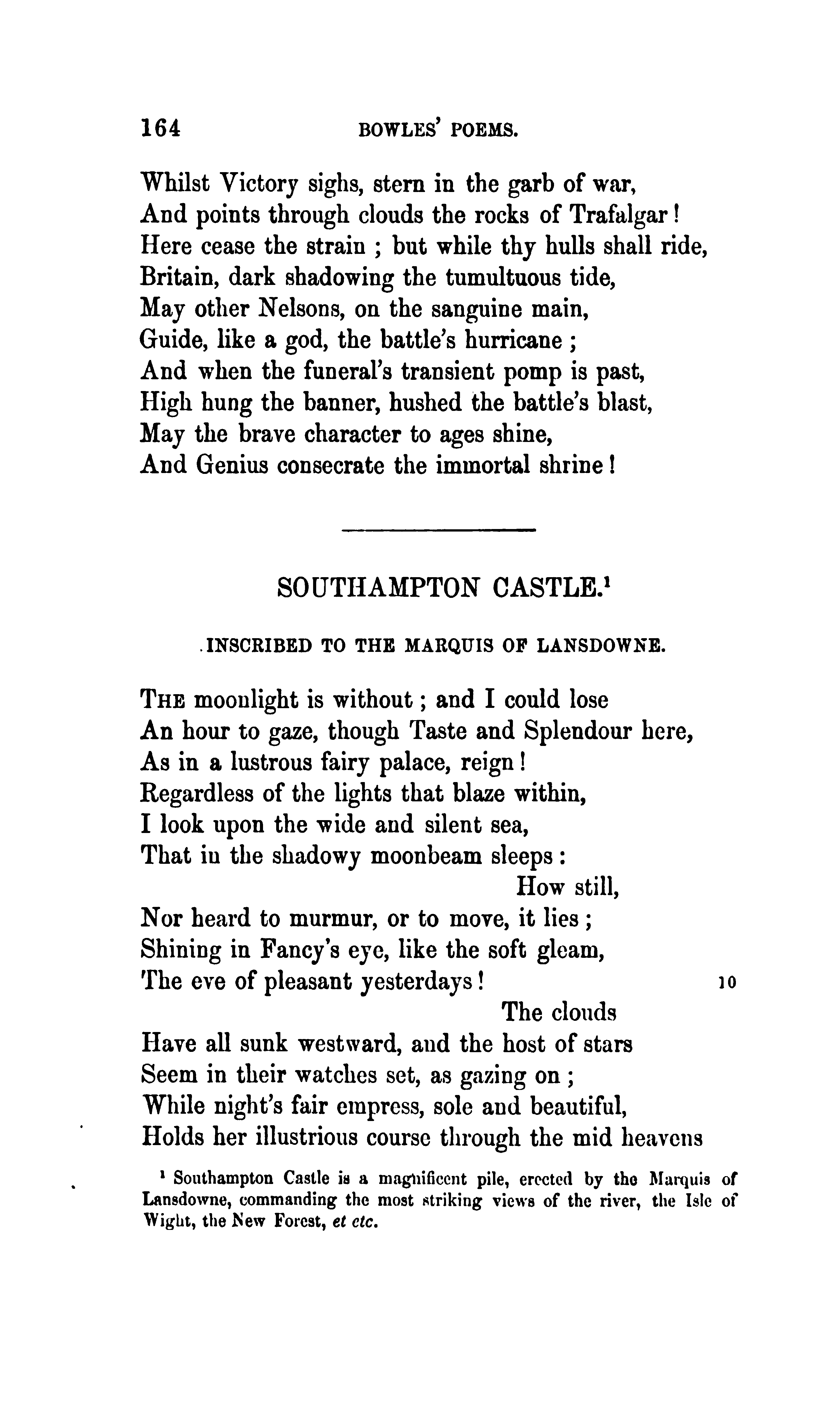 Bowles, William Lisle, 1762-1850. The Poetical Works of William Lisle Bowles, Vol. I. With Memoir, Critical Dissertation, and Explanatory Notes by George Gilfillan. Edinburgh: James Nichol, 9 North Bank Street..., 1855, pp. 162-164. (Page images digitized from a copy held at the University of California Libraries.)