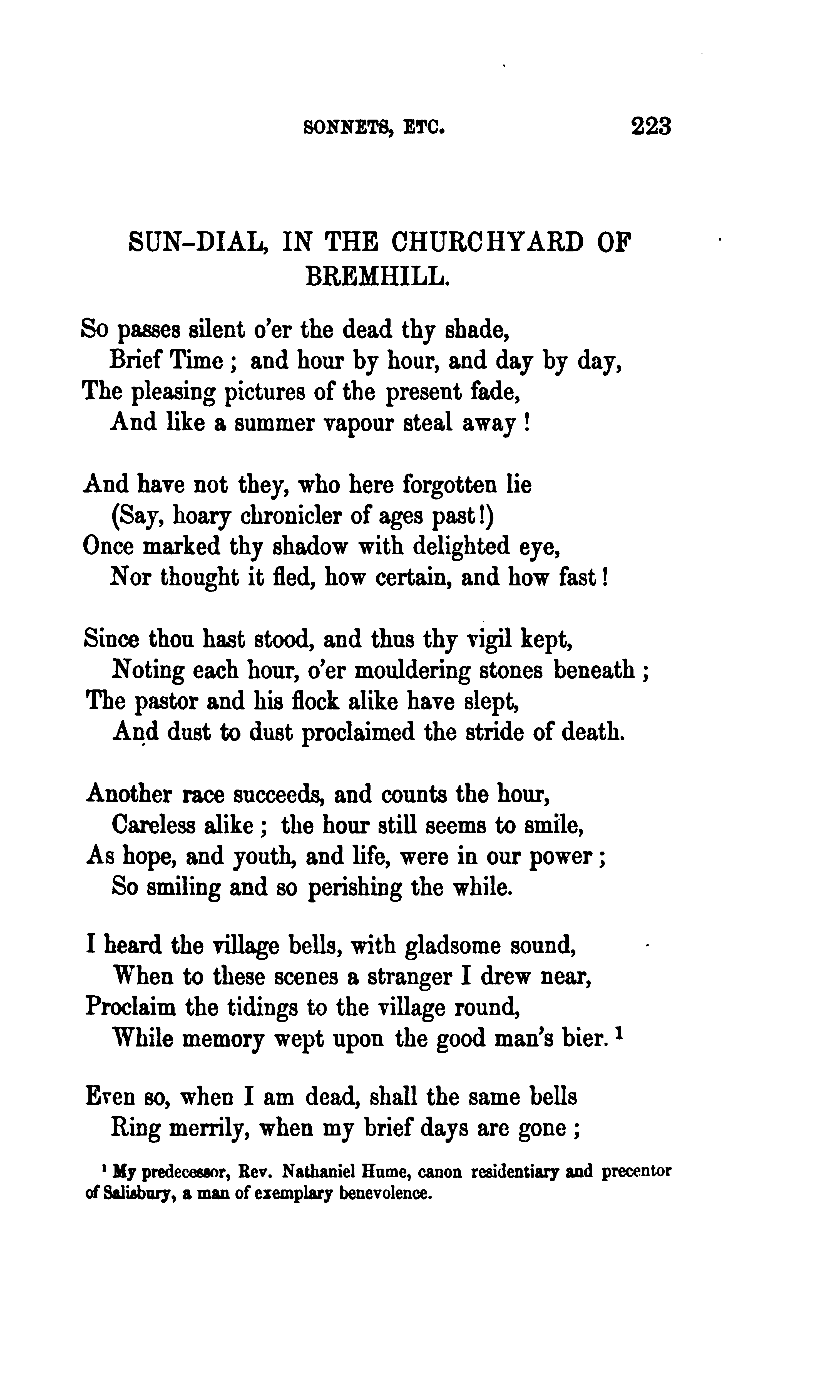 Bowles, William Lisle, 1762-1850. The Poetical Works of William Lisle Bowles, Vol. I. With Memoir, Critical Dissertation, and Explanatory Notes by George Gilfillan. Edinburgh: James Nichol, 9 North Bank Street..., 1855, pp. 223-224. (Page images digitized from a copy held at the University of California Libraries.)