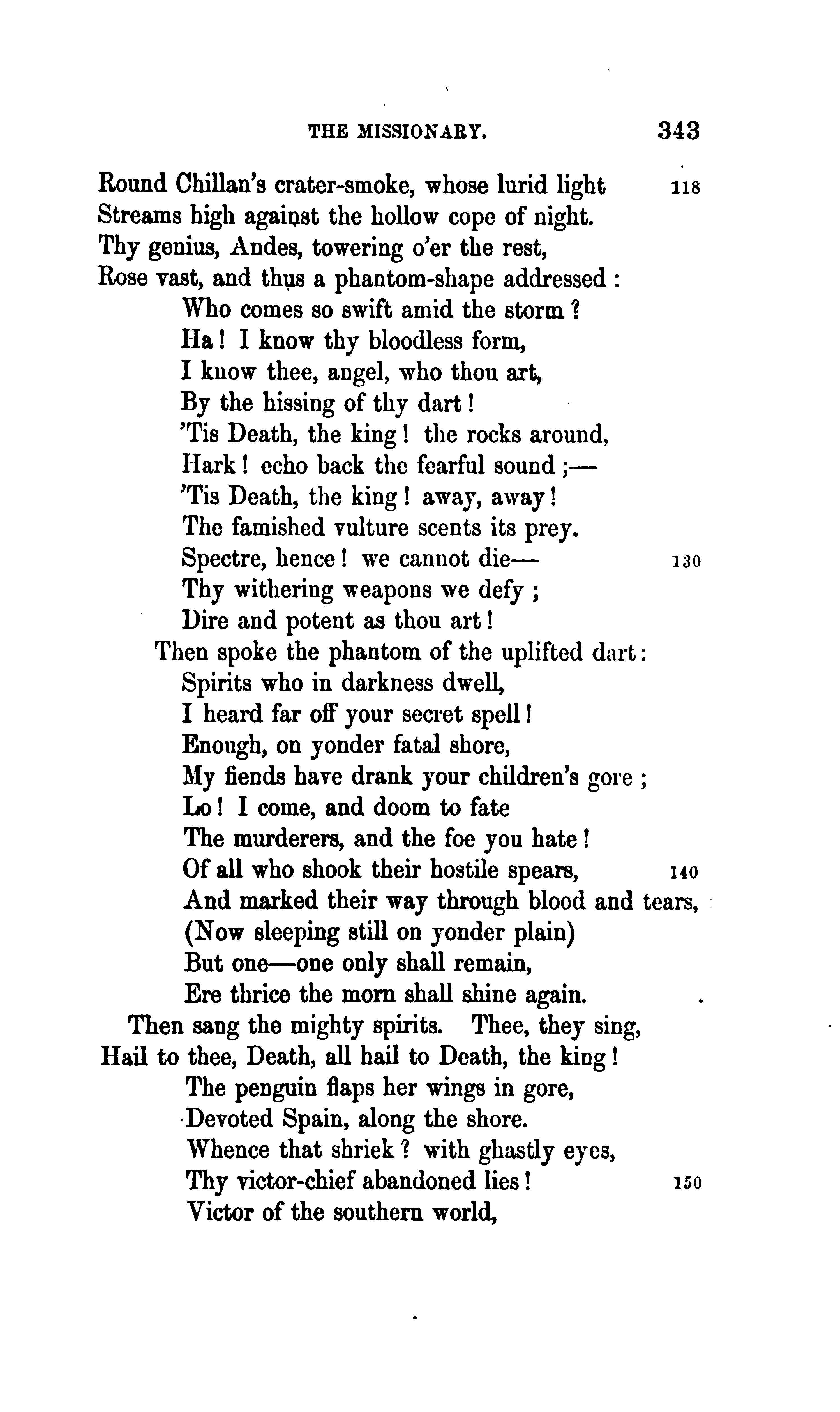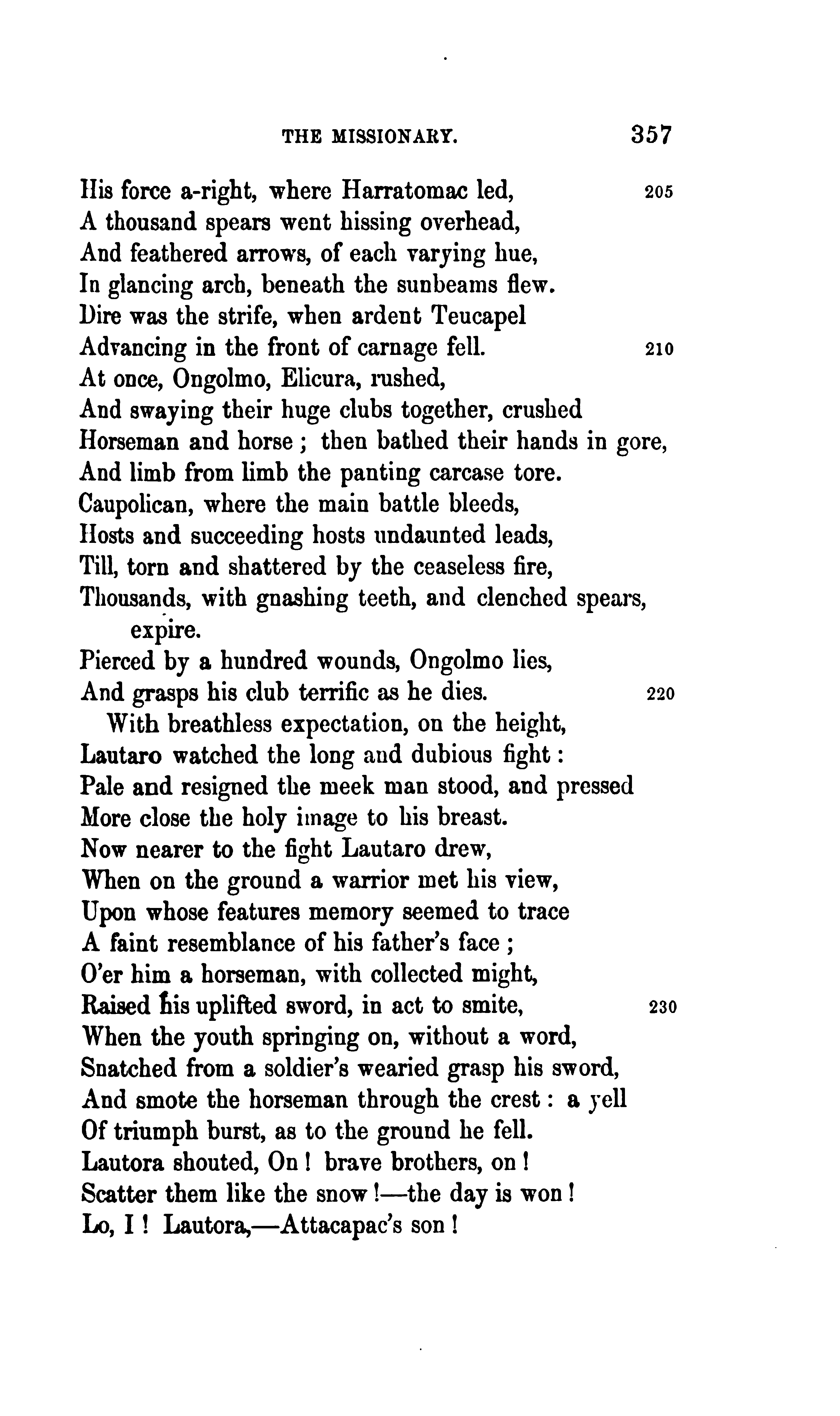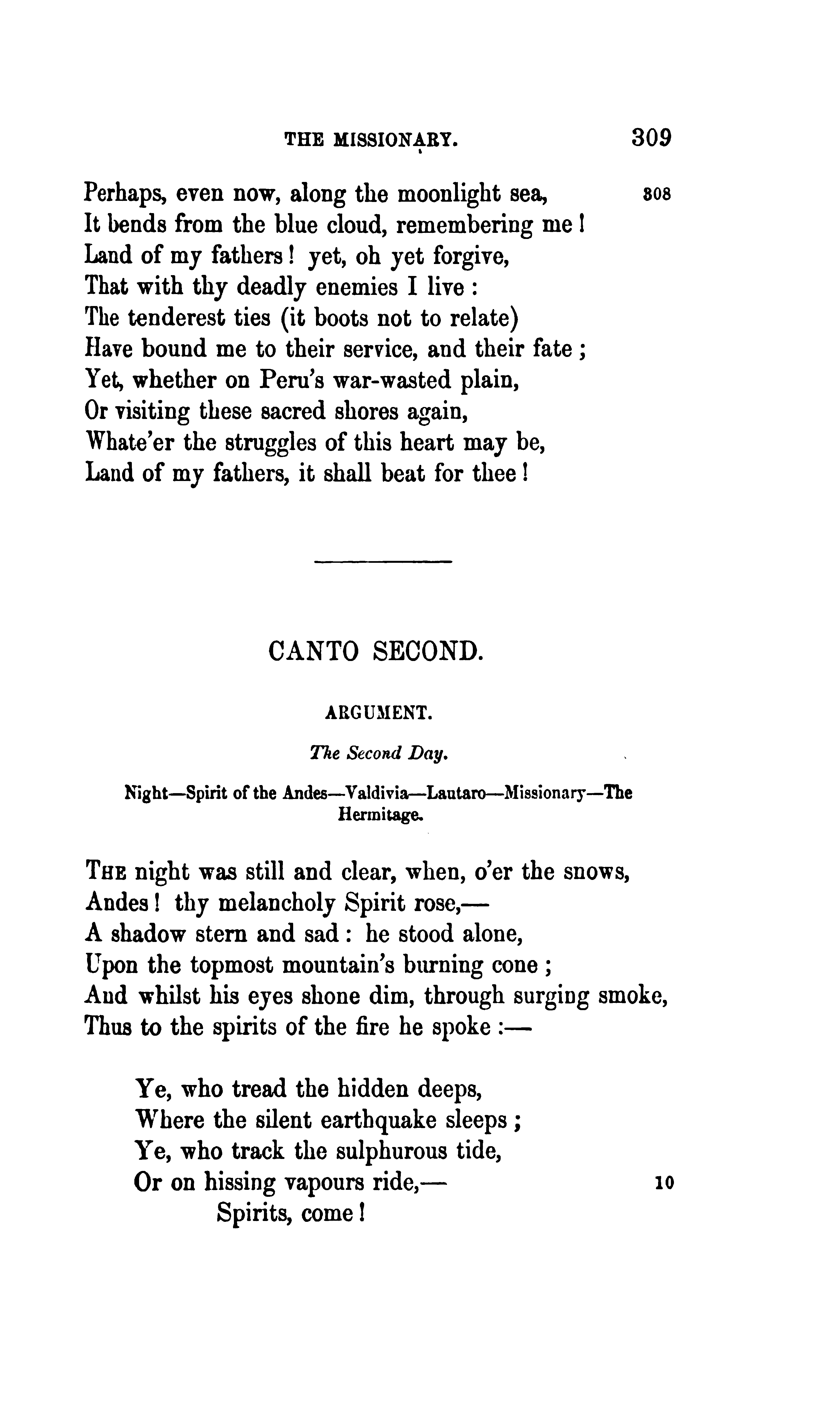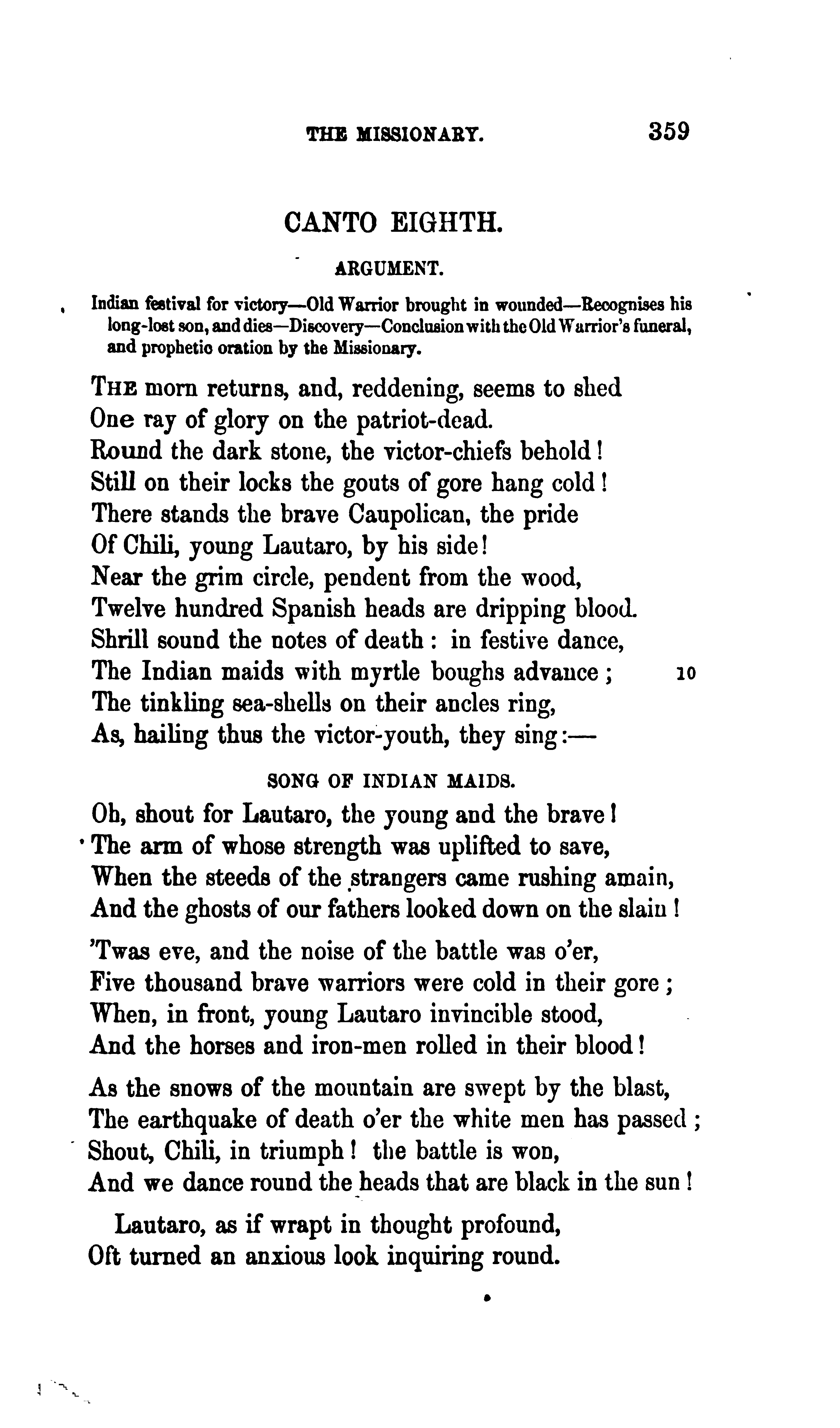 The chief event of the poem turns upon the conduct of Lautaro; but as the Missionary acts so distinguished a part, and as the whole of the moral depends upon him, it was thought better to retain the title which was originally given to the poem.