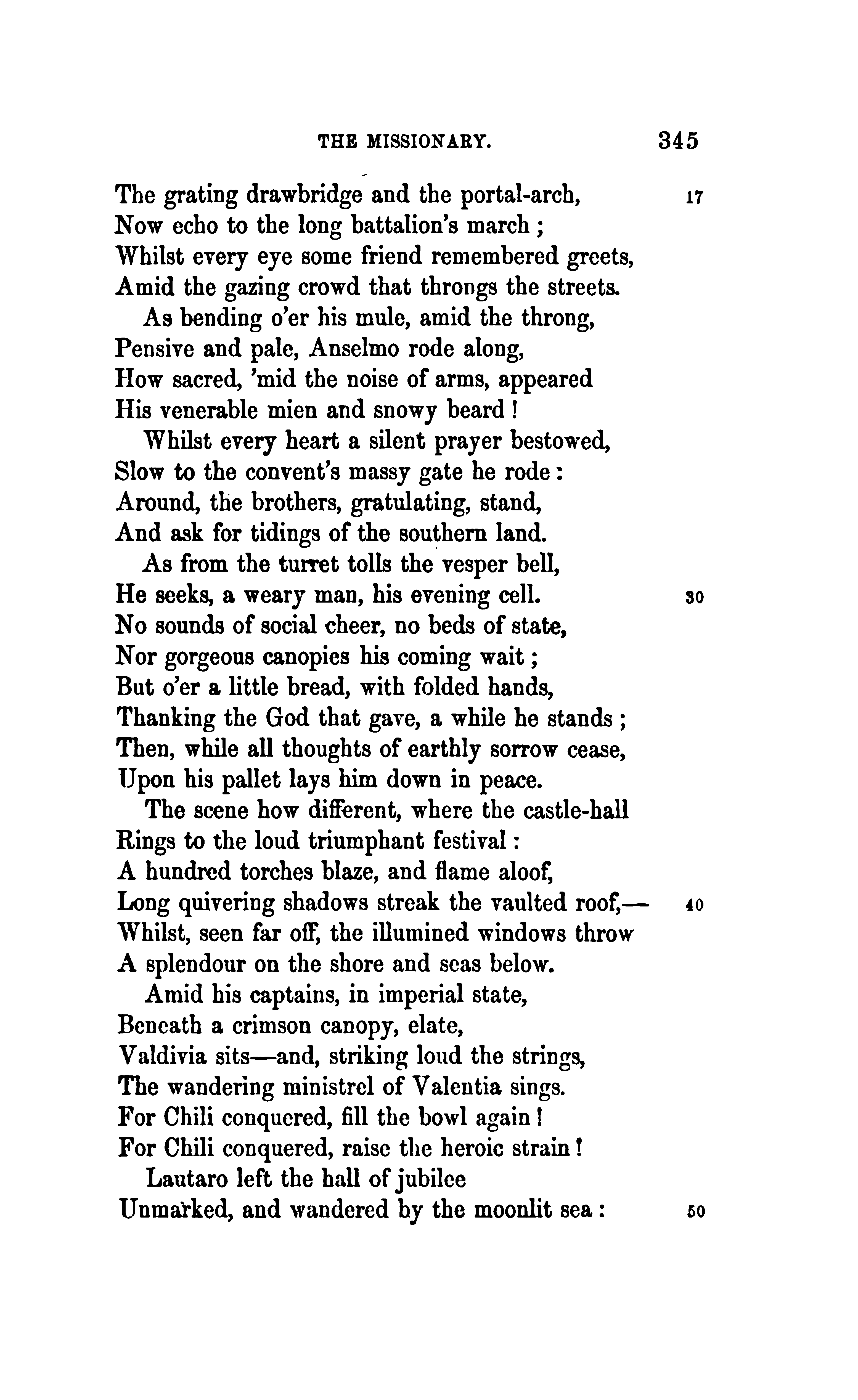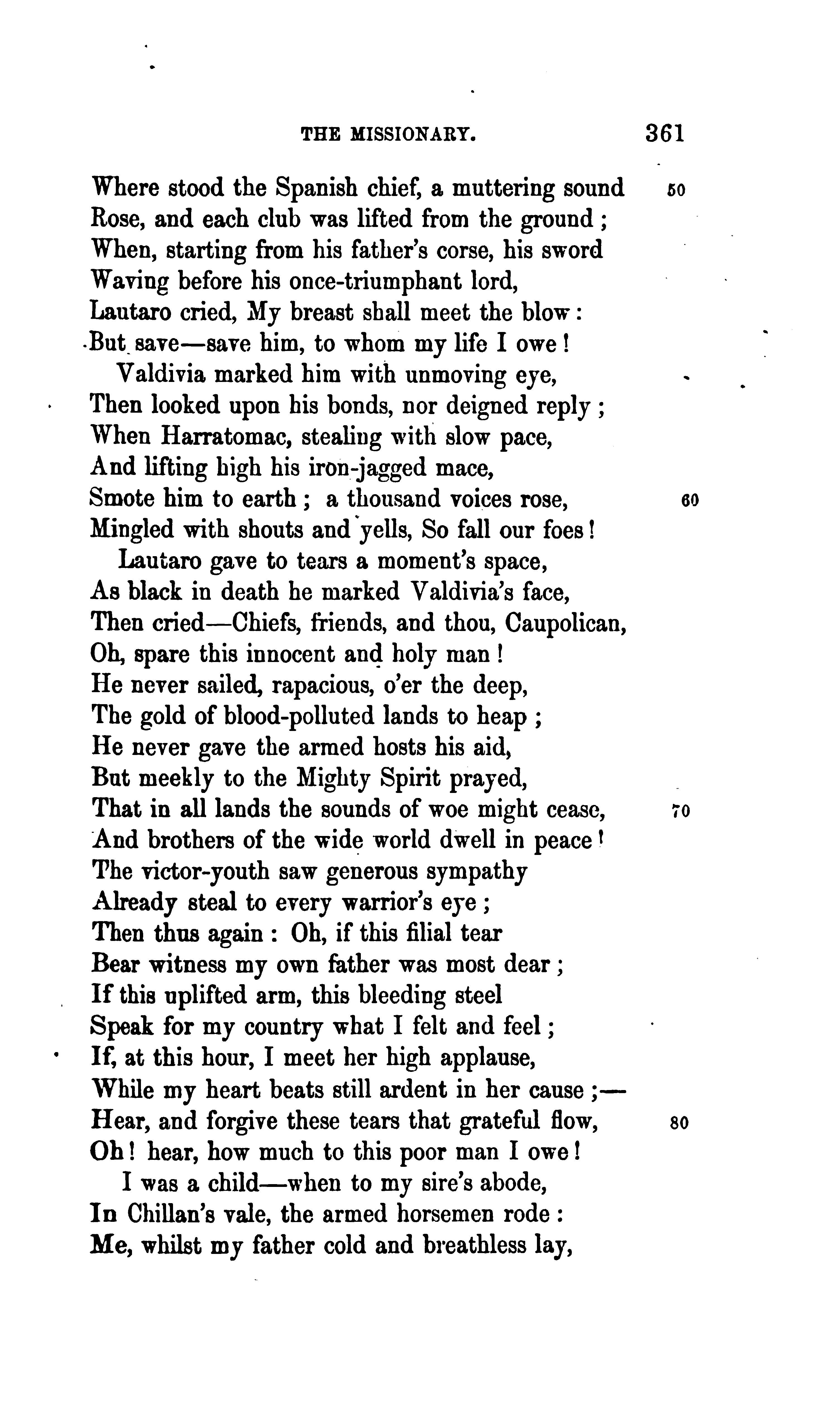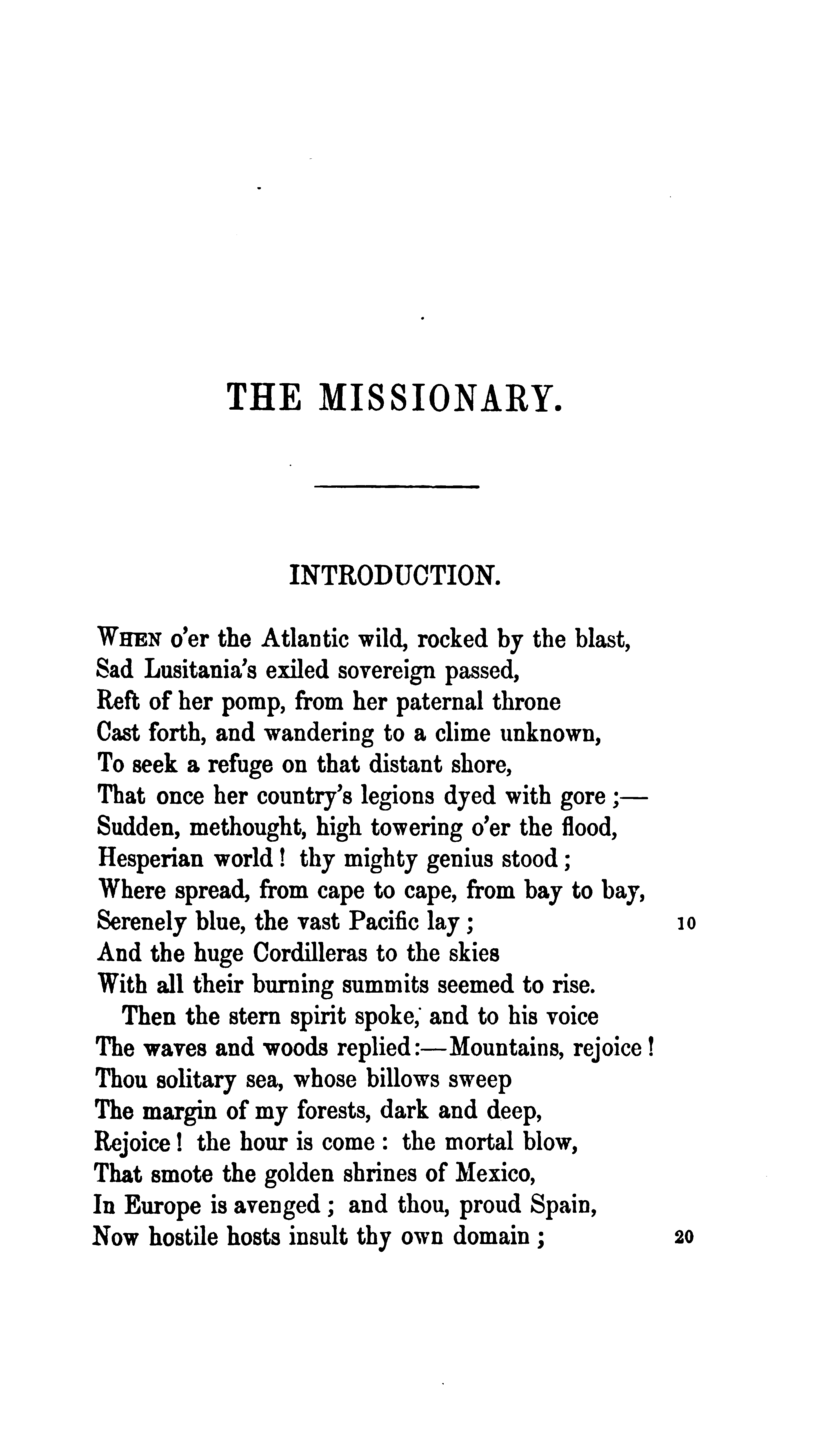 The chief event of the poem turns upon the conduct of Lautaro; but as the Missionary acts so distinguished a part, and as the whole of the moral depends upon him, it was thought better to retain the title which was originally given to the poem.
