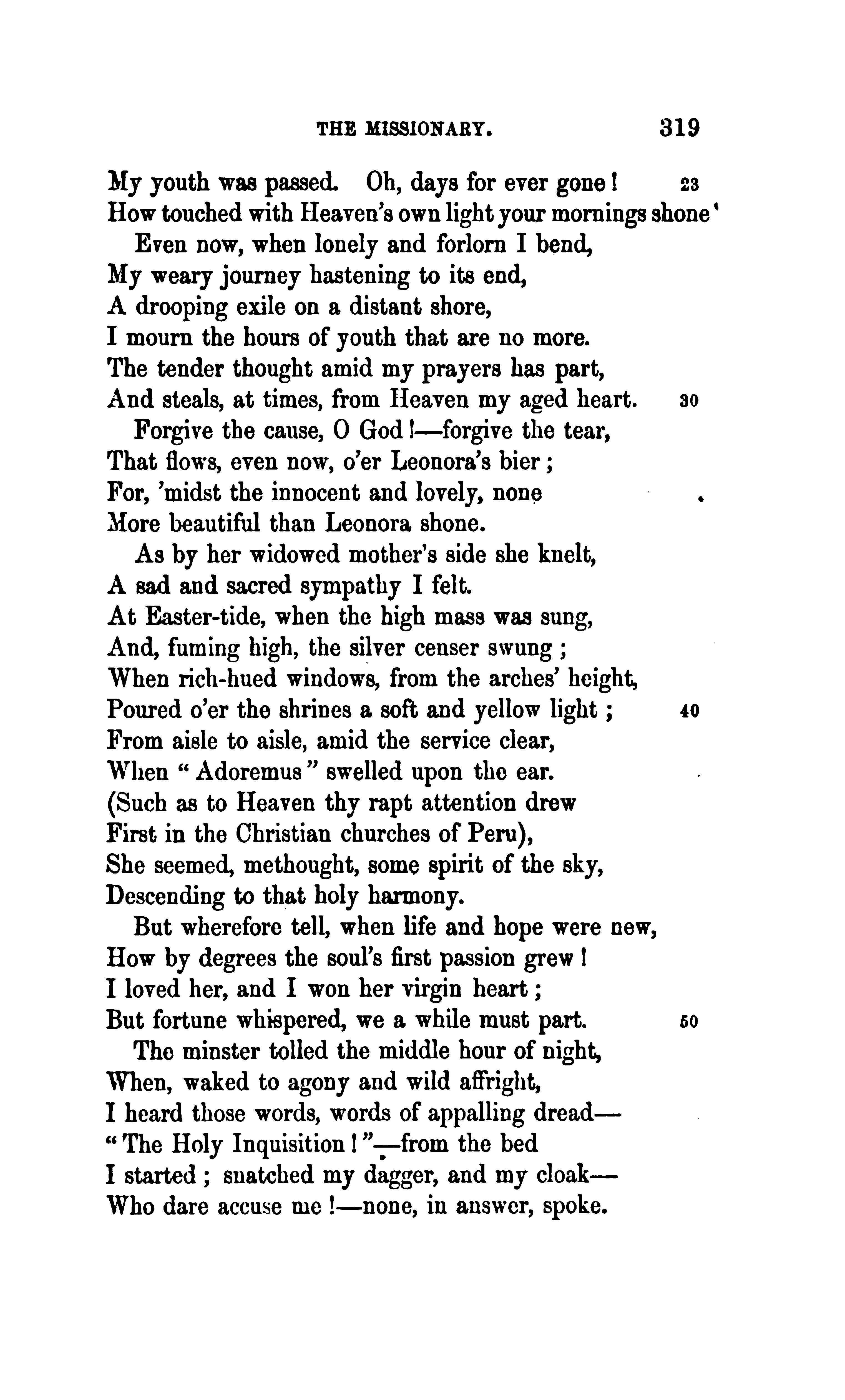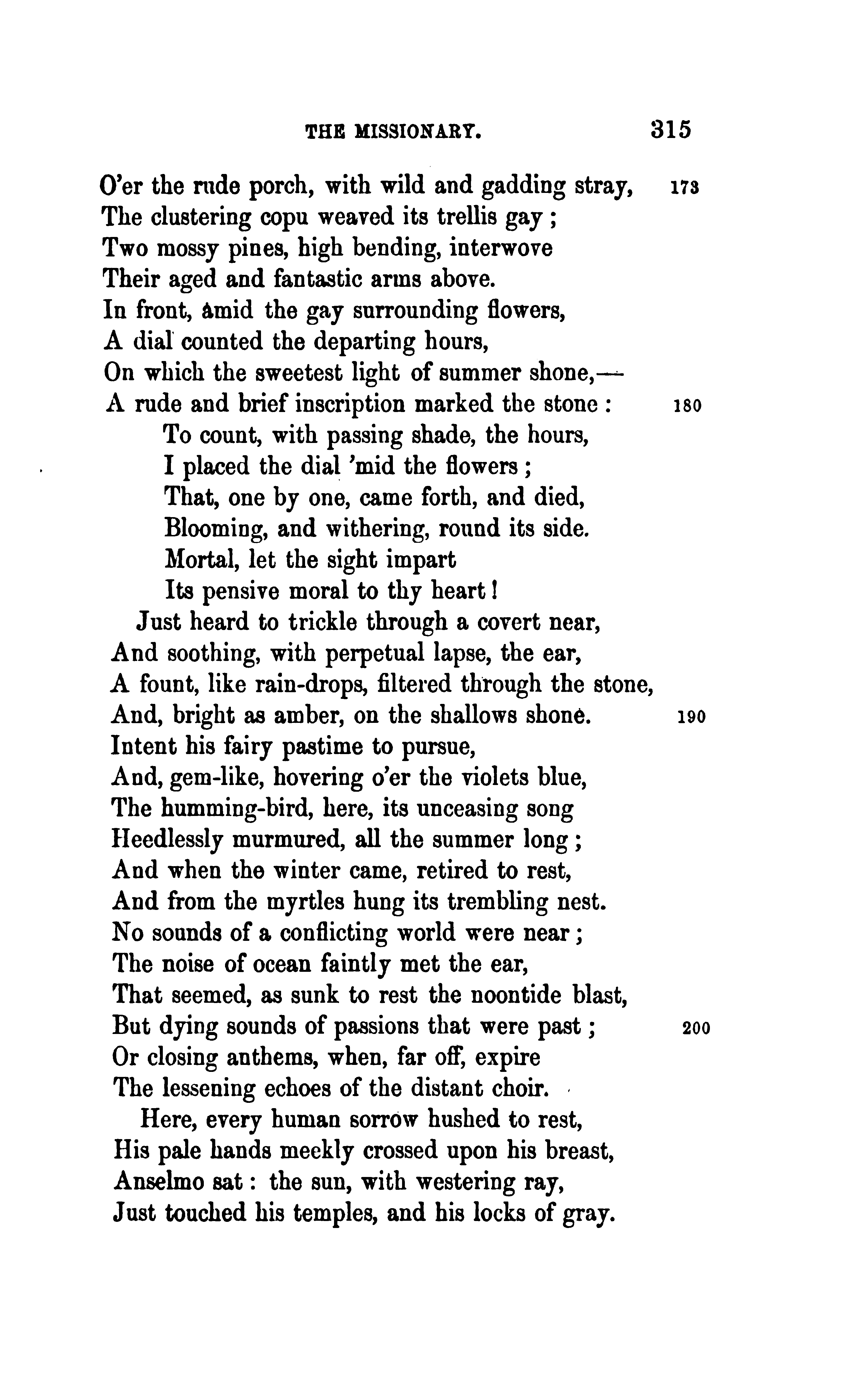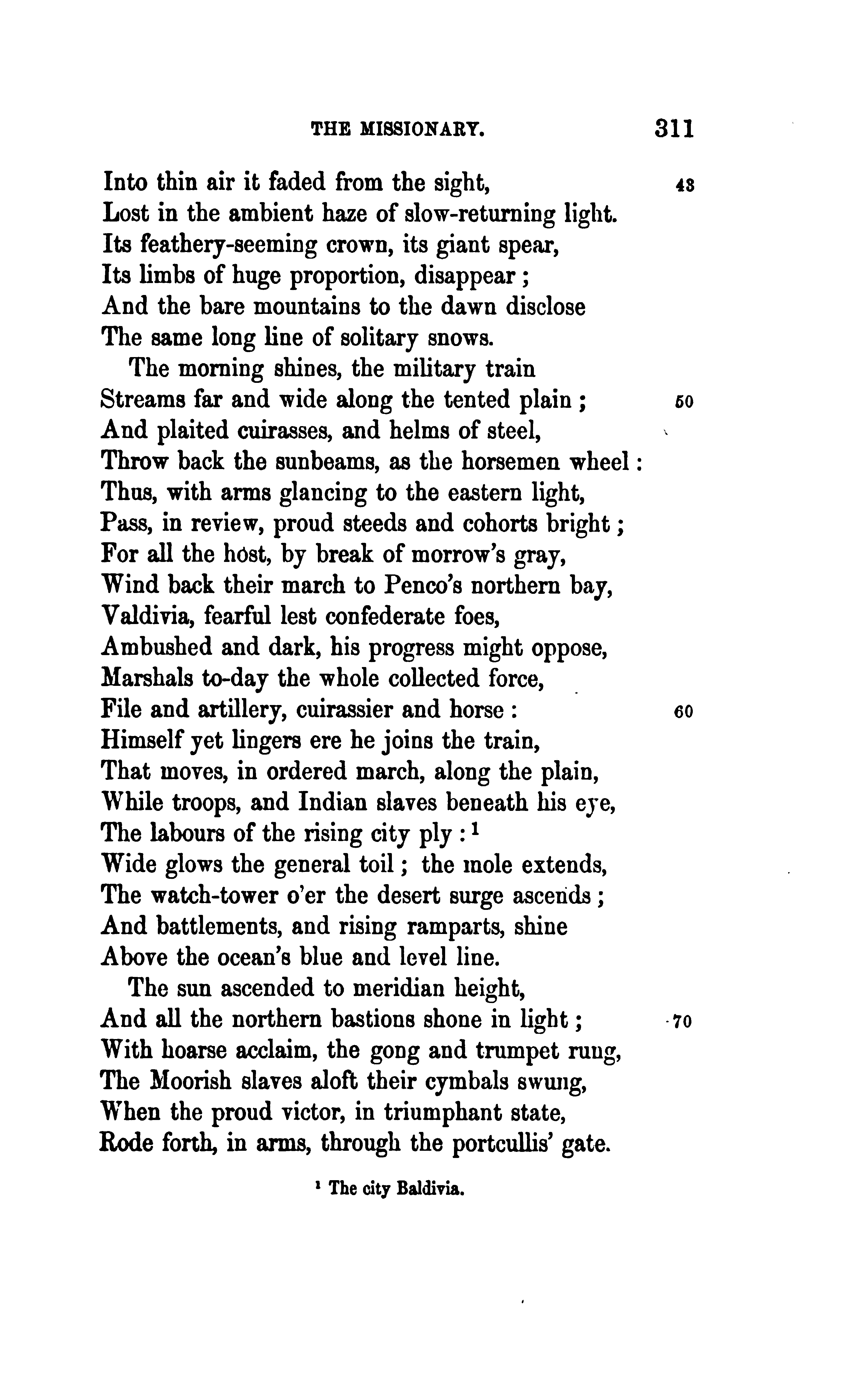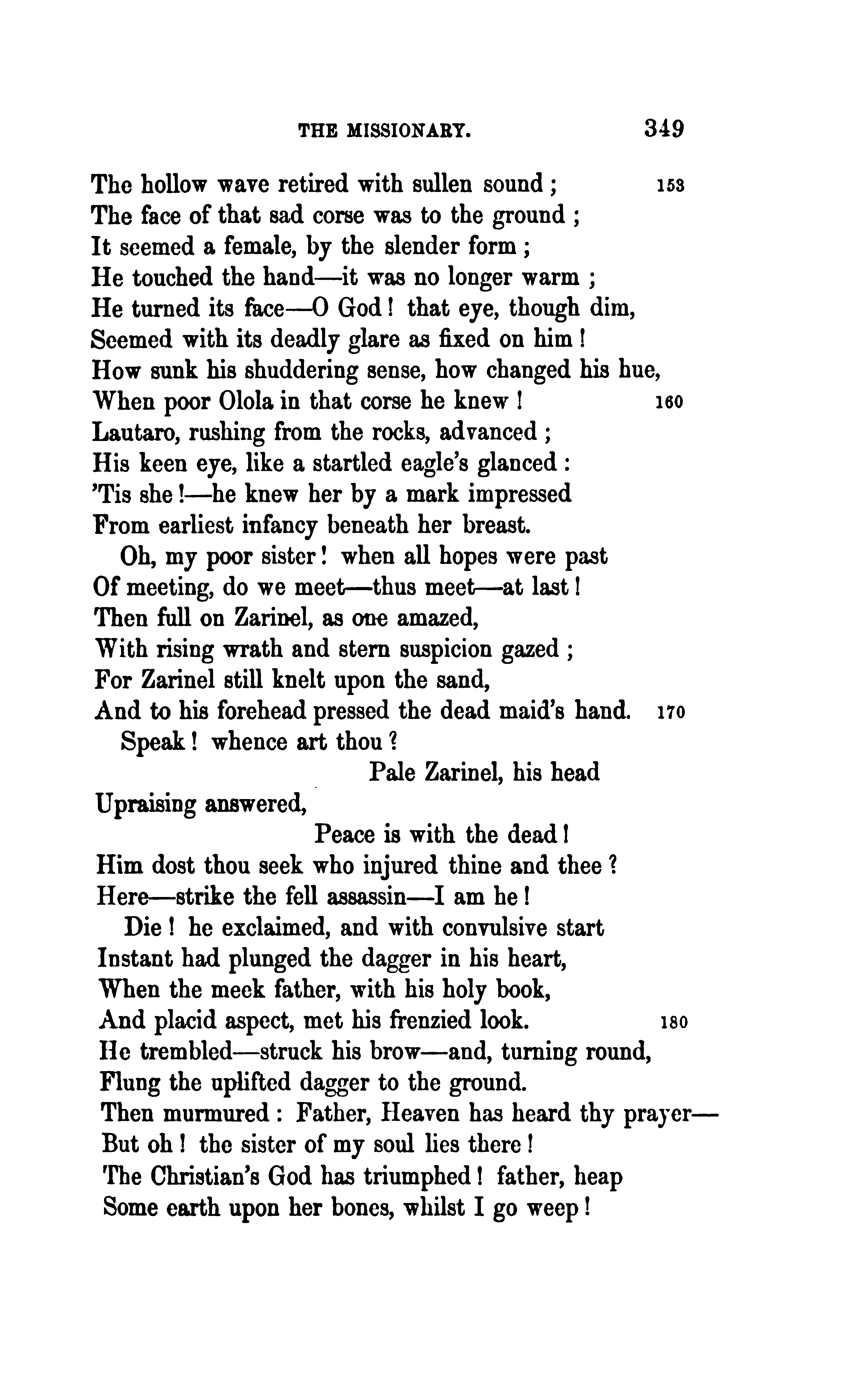 The chief event of the poem turns upon the conduct of Lautaro; but as the Missionary acts so distinguished a part, and as the whole of the moral depends upon him, it was thought better to retain the title which was originally given to the poem.