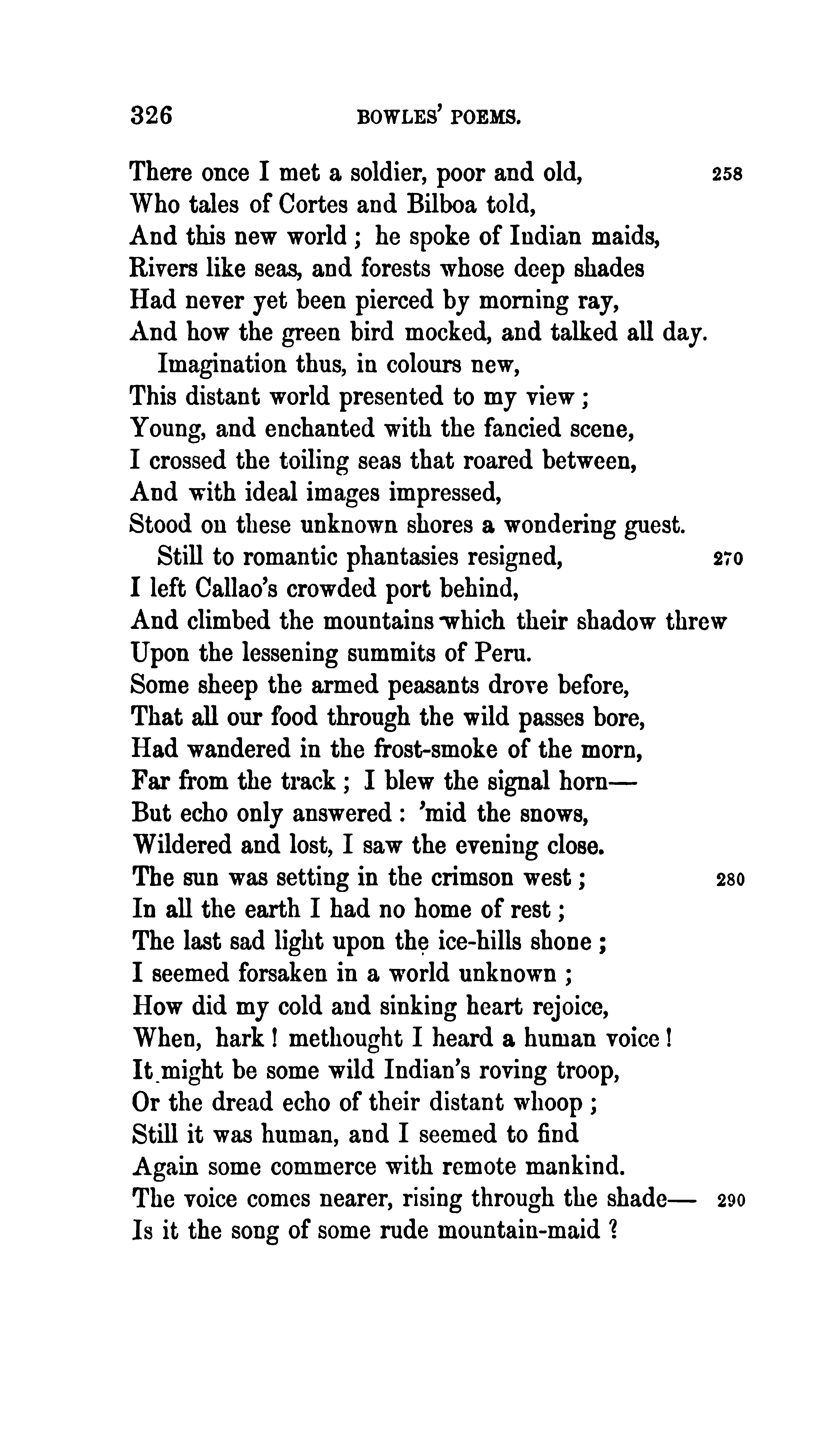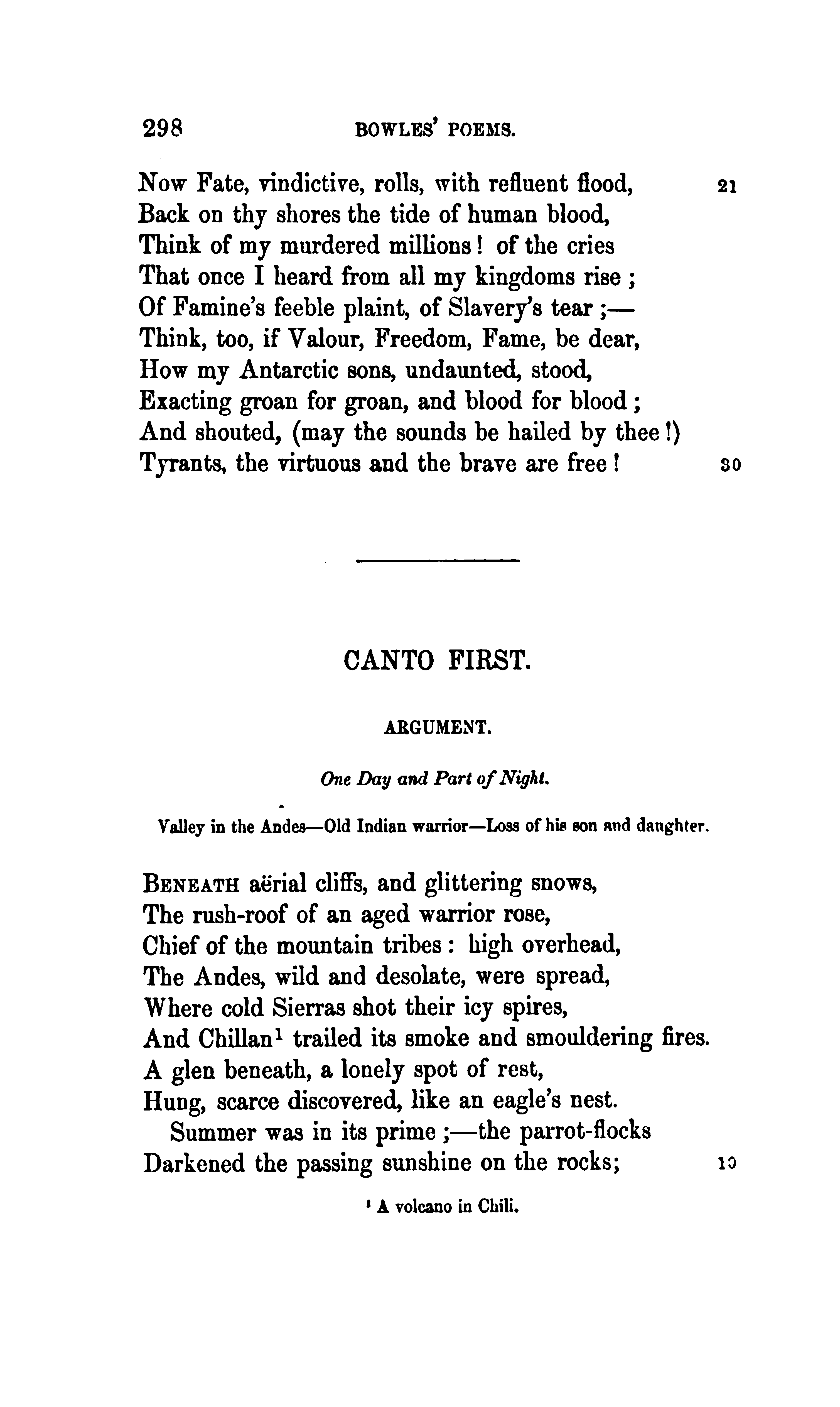 The single circumstance that a Spanish commander, with his army in South America, was destroyed by the Indians, in consequence of the treachery of his page, who was a native, and that only a priest was saved, is all that has been taken from history. The rest of this poem, the personages, father, daughter, wife, et cet. (with the exception of the names of Indian warriors) is imaginary. The time is two months. The first four books include as many days and nights. The rest of the time is occupied by the Spaniards' march, the assembly of warriors, et cet.