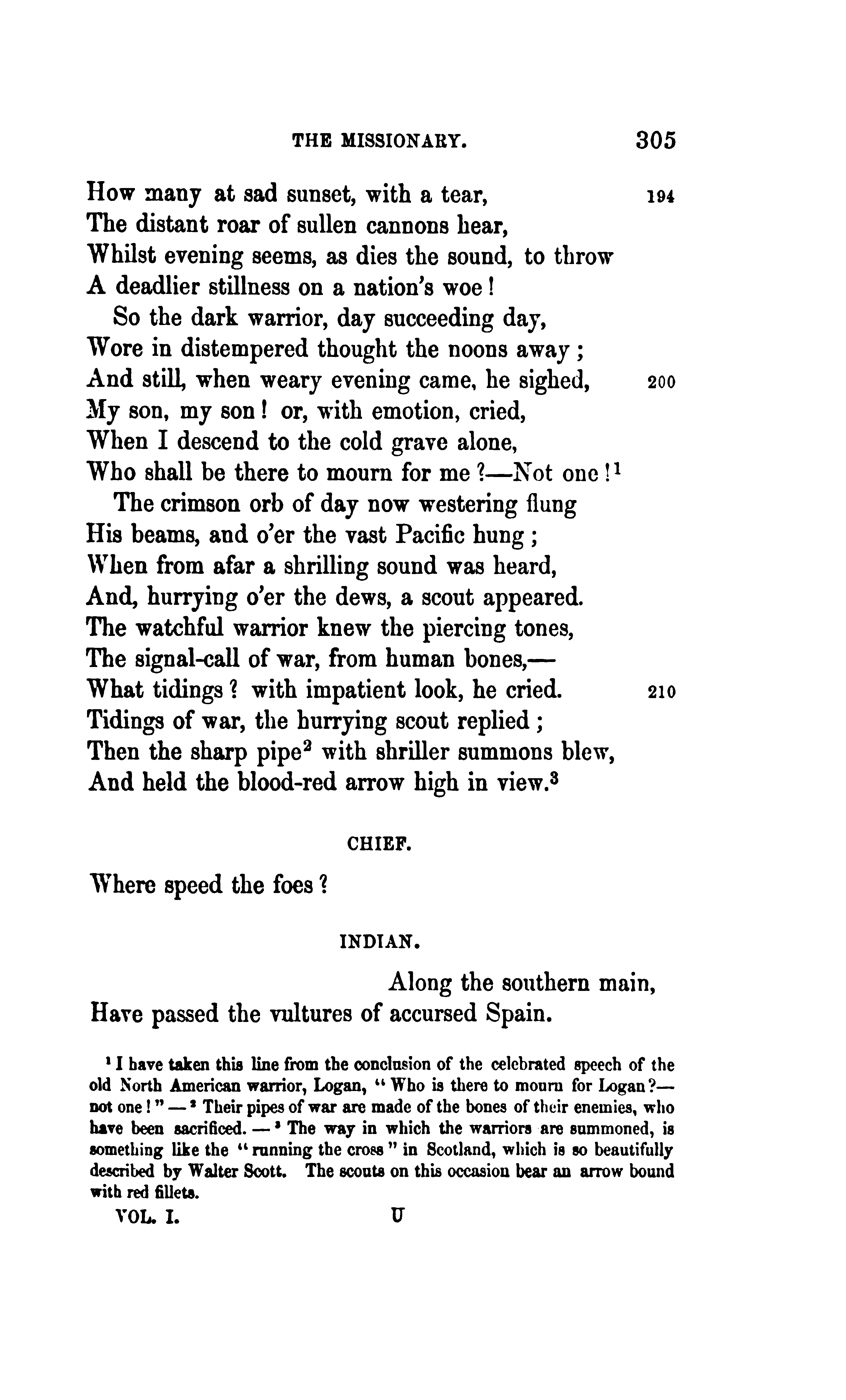 297 As the stone hatchet in the grave he threw. [Page 368] 298 The little child that to its mother clung,