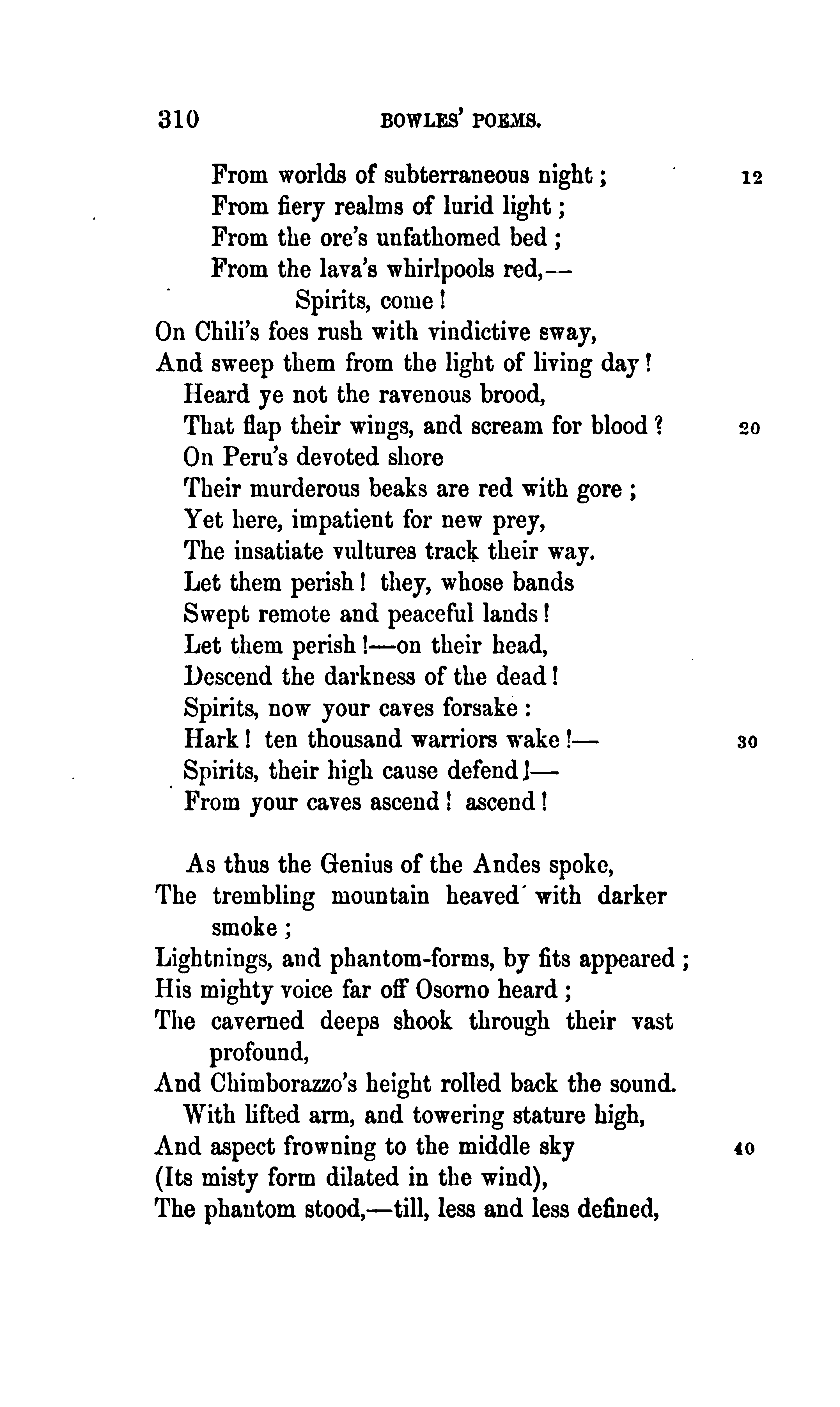From old-fashioned feelings, perhaps, I have admitted some aërial agents, or what is called machinery. It is true that the spirits cannot be said to accelerate or retard the events; but surely they may be allowed to show a sympathy with the fate of those, among whom poetical fancy has given them a prescriptive ideal existence. They may be further excused, as relieving the narrative, and adding to the imagery.