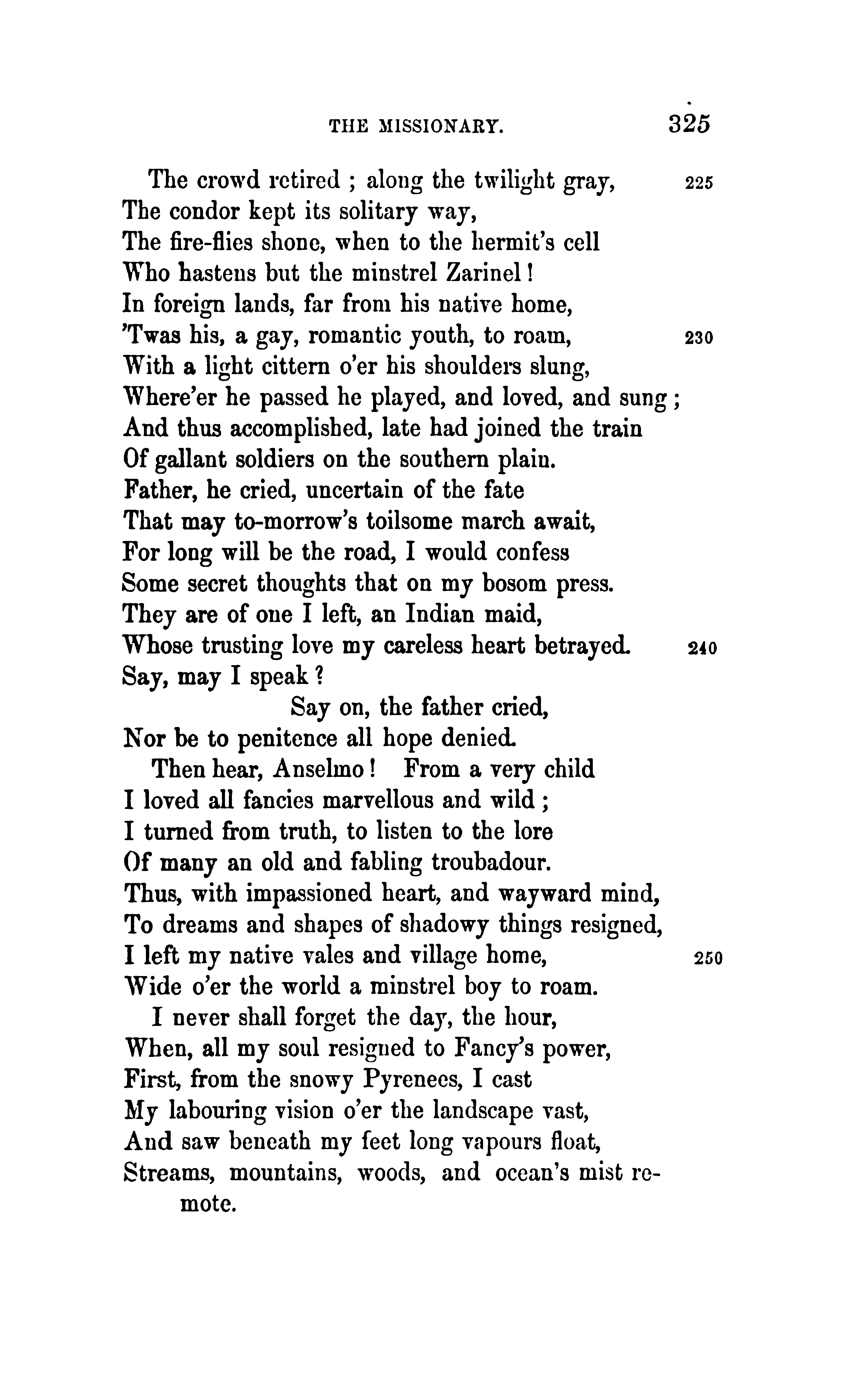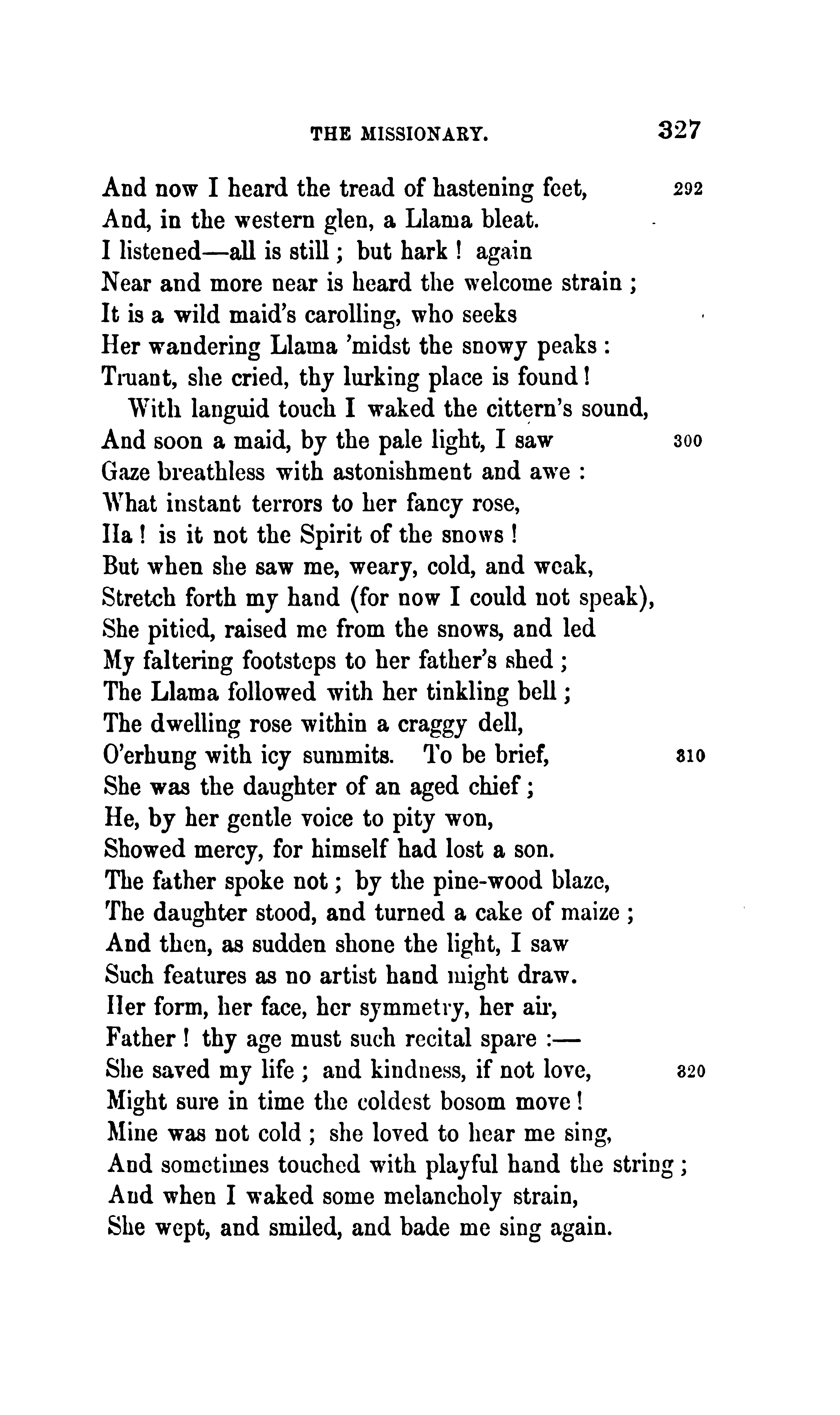 I have availed myself of every sensible objection, the most material of which was the circumstance, that the Indian maid, described in the first book, had not a part assigned to her of sufficient interest in the subsequent events of the poem, and that the character of the Missionary was not sufficiently professional.