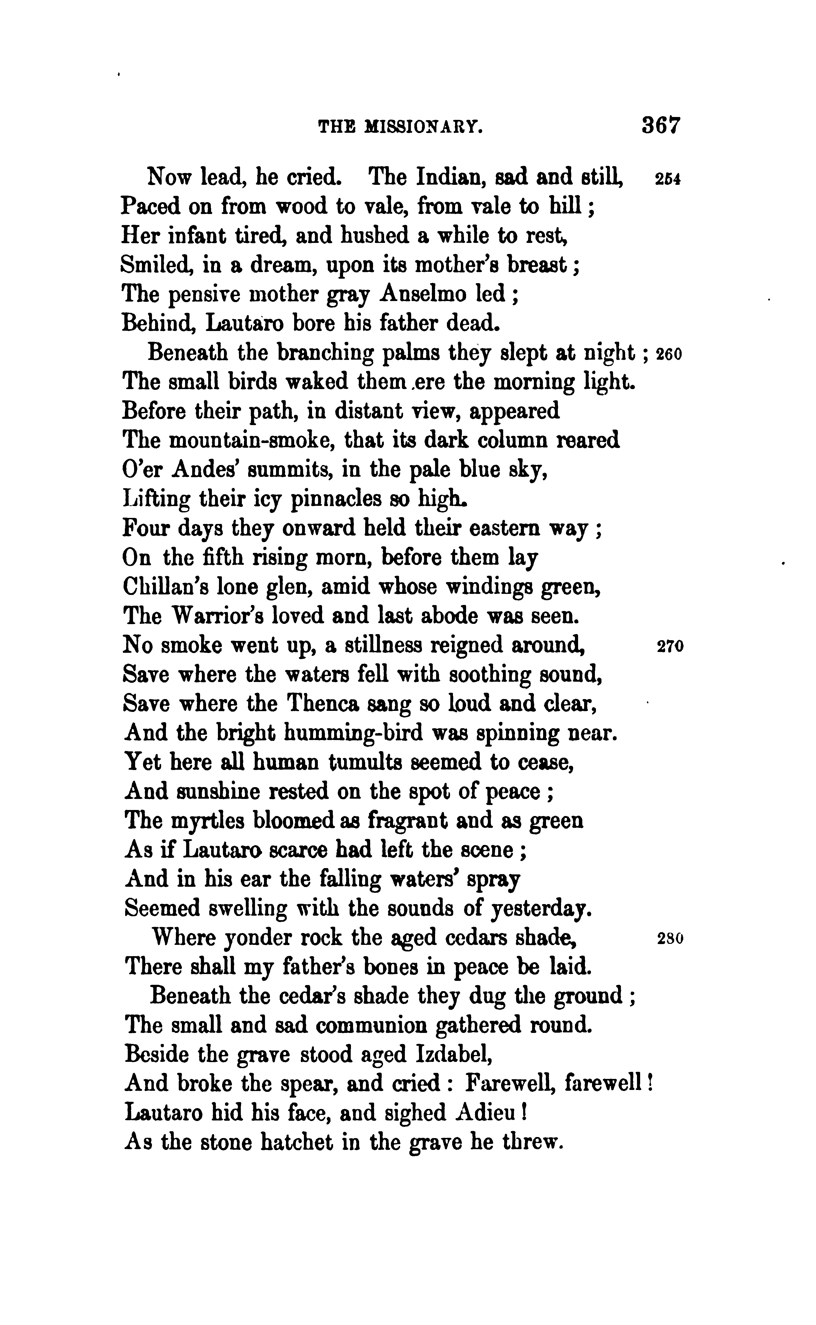 263 See where he comes — his father in his arms! [Page 367] 264 Now lead, he cried. The Indian, sad and still,
