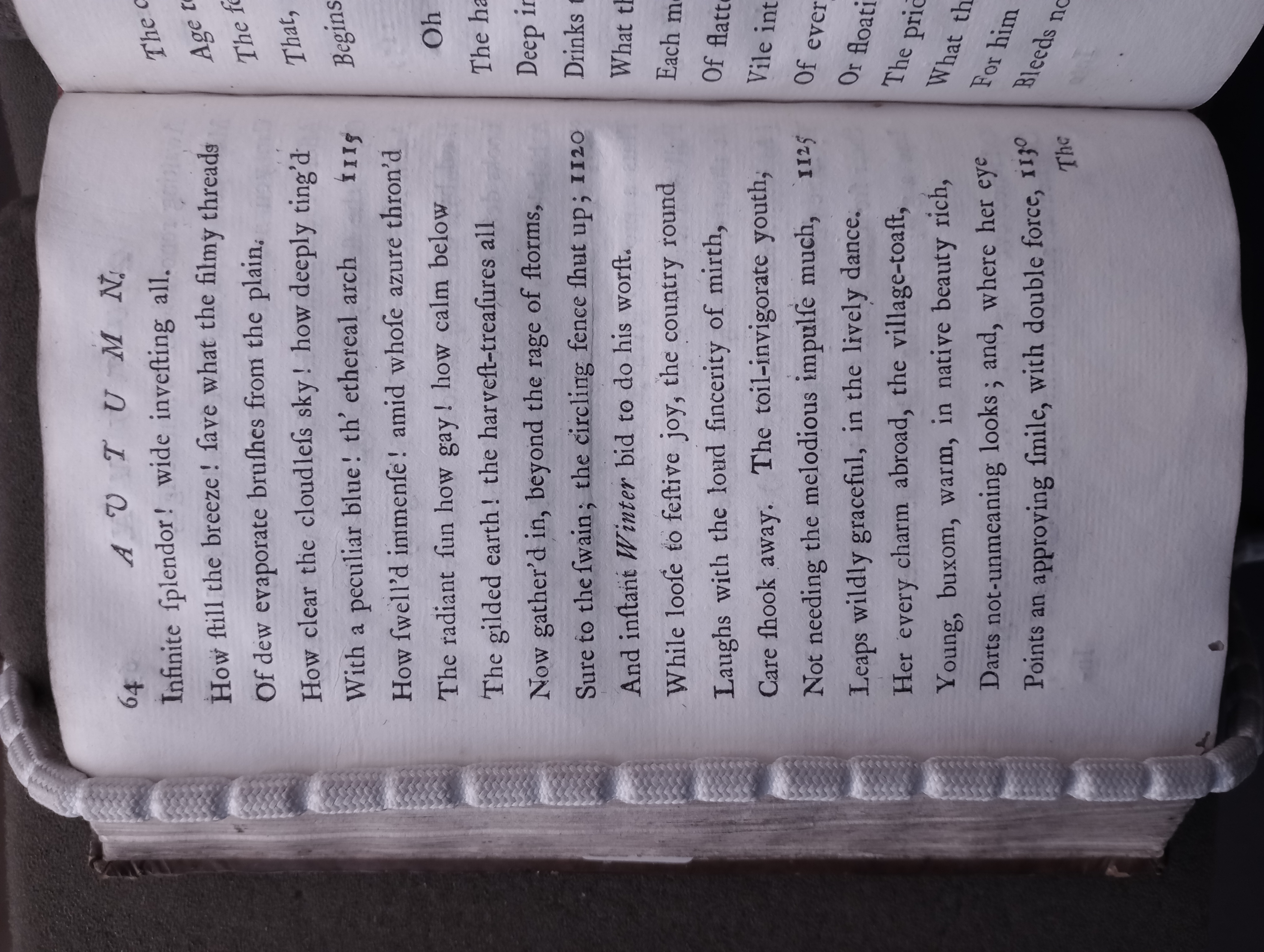 Thomson, James, 1700-1748. The four seasons, and other poems. By James Thomson. London: printed for J. Millan, near Scotland-Yard, White-Hall; and A. Millar, in the Strand, M.DCC.XXXV., 1735, pp. []-72. [2];77,[3];64;72;79,[1]p.,plates; 8⁰. (ESTC T83; Foxon T242; OTA K019862.000) (Page images digitized from a copy in the Bodleian Library, Vet. A4 e.2675.)