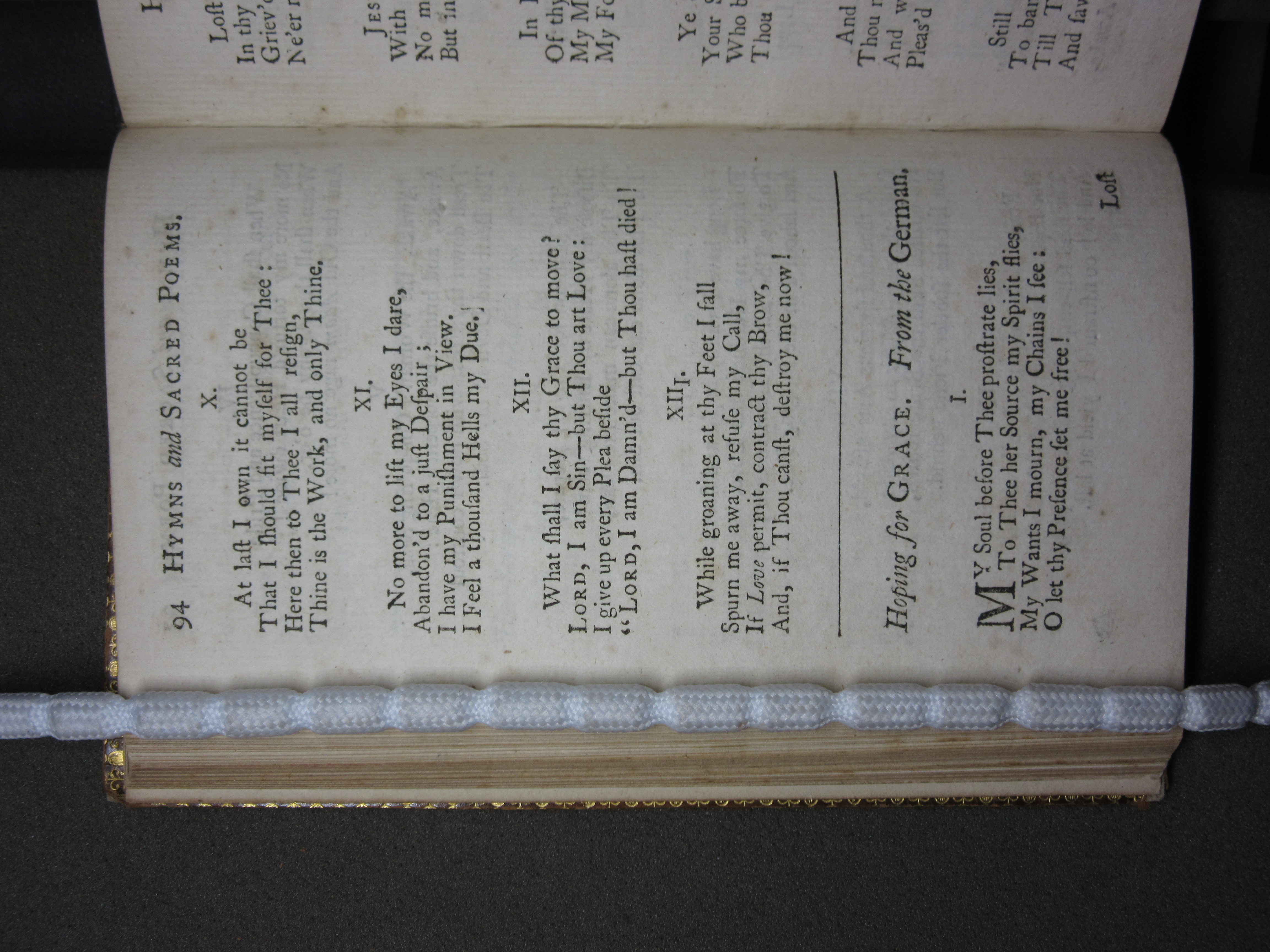 Wesley, John, 1703-1791. Wesley, Charles, 1707-1788. Hymns and sacred poems: Published by John Wesley, ... and Charles Wesley, ... London: printed by William Strahan; and sold by James Hutton; and at Mr. Bray's, 1739, pp. 92-94. x,[6],223,[1]p.; 12⁰. (ESTC T31323; OTA K034809.000) (Page images digitized from a copy in the Bodleian Library [Vet. A4 f. 254].)