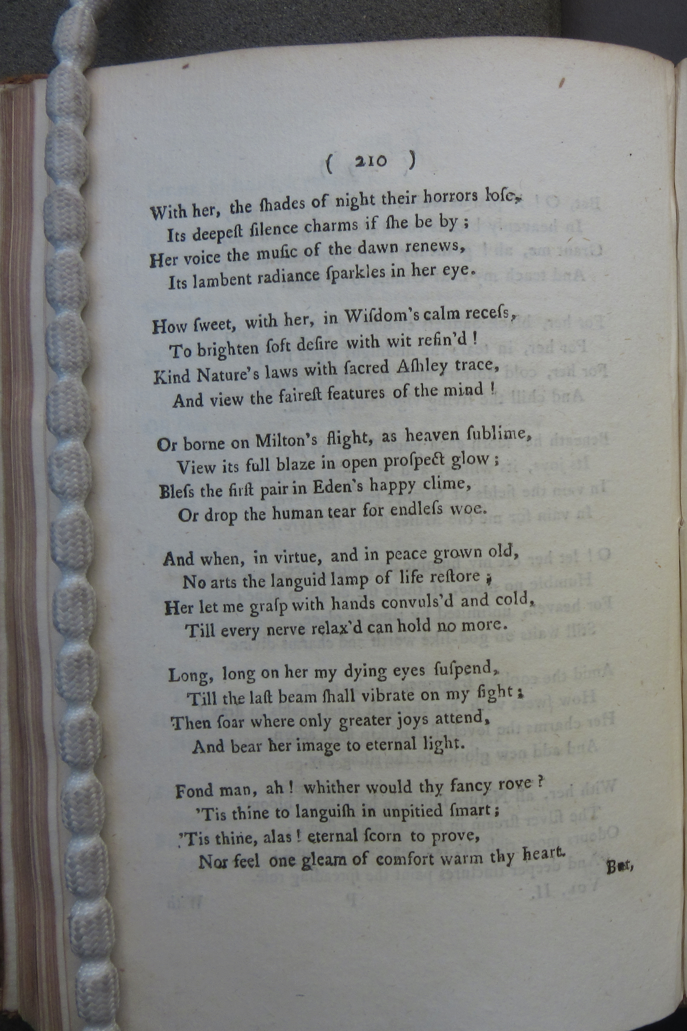 Pearch, G. A collection of poems in four volumes. By several hands. Vol. II. [The second edition]. London: printed for G. Pearch, 1770, pp. 207-211. 4v. ; 8⁰. (ESTC T116245; DMI 1135; OTA K093079.002) (Page images digitized from a copy in the Bodleian Library [(OC) 280 o.789].)