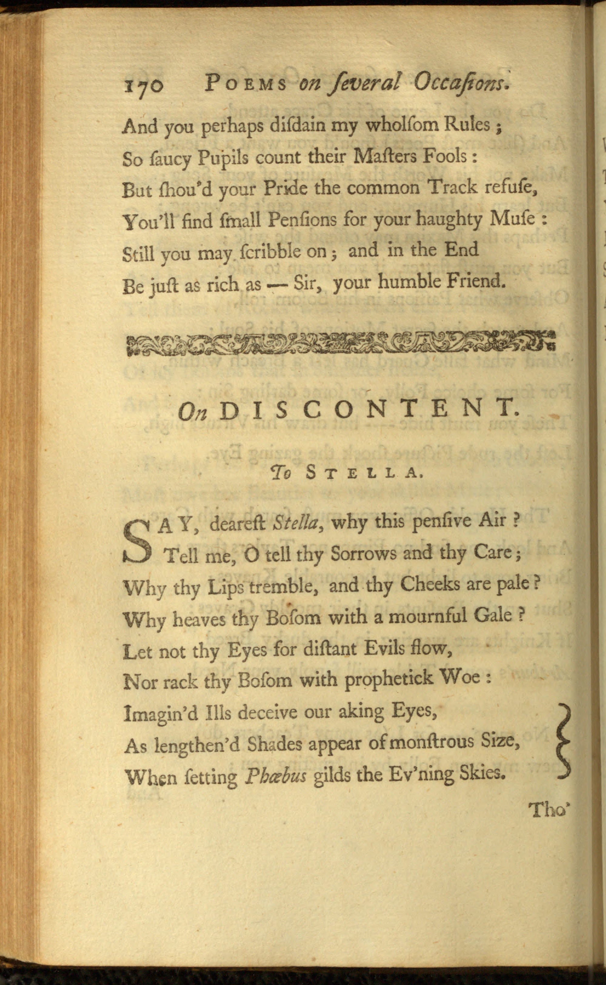 Leapor, Mrs. (Mary), 1722-1746. Poems upon several occasions: By Mrs. Leapor of Brackley in Northamptonshire. London: printed: and sold by J. Roberts, 1748, pp. 170-173. 15,[5],282p. ; 8⁰. (ESTC T127827; Foxon p. 413; OTA K101776.000) (Page images digitized from a copy at University of California Libraries.)