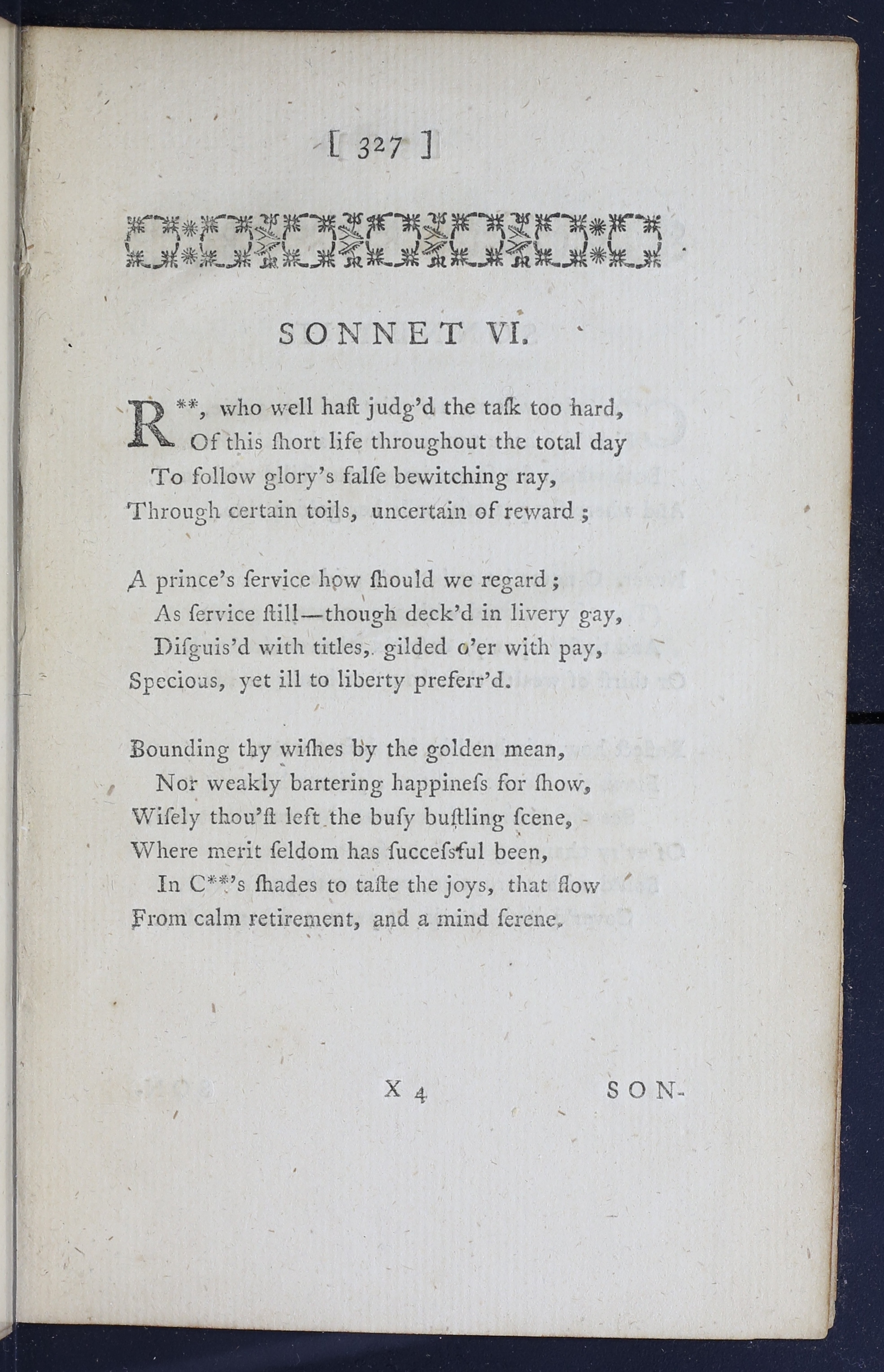 - SONNET XIII. To the Right Hon. Mr. —, with the foregoing SONNETS. ()