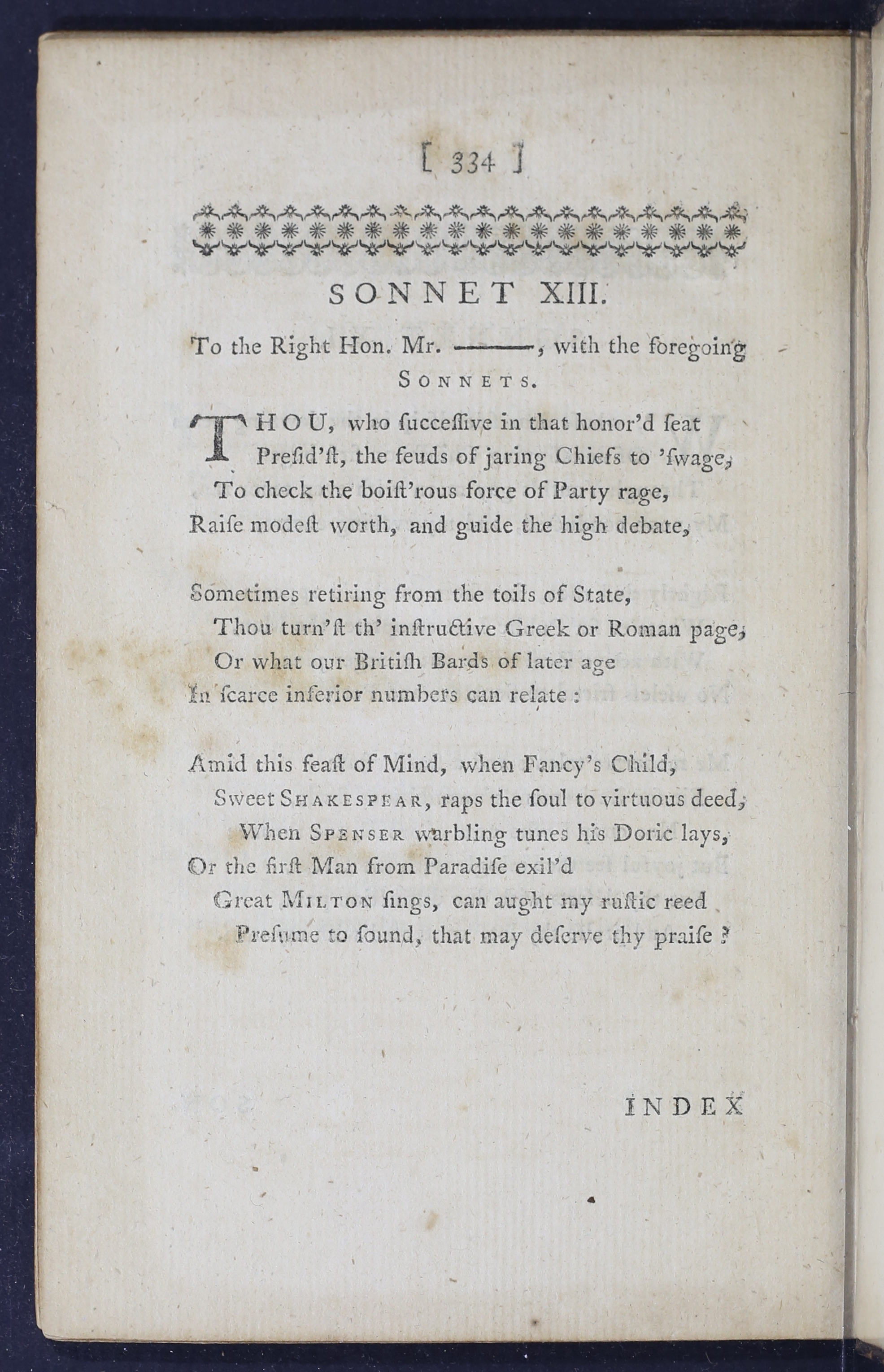 To the Right Hon. Mr. —, with the foregoing SONNETS.