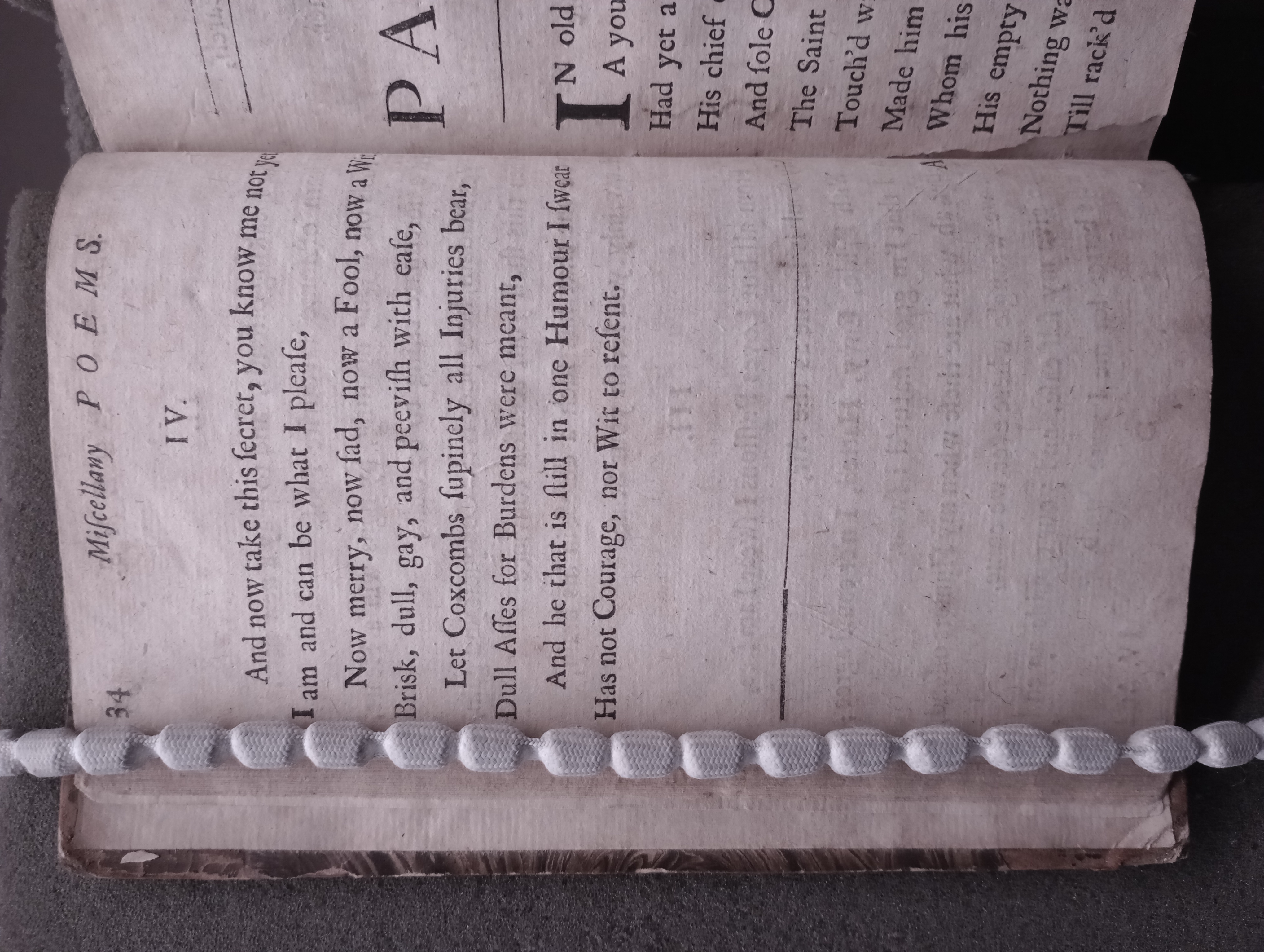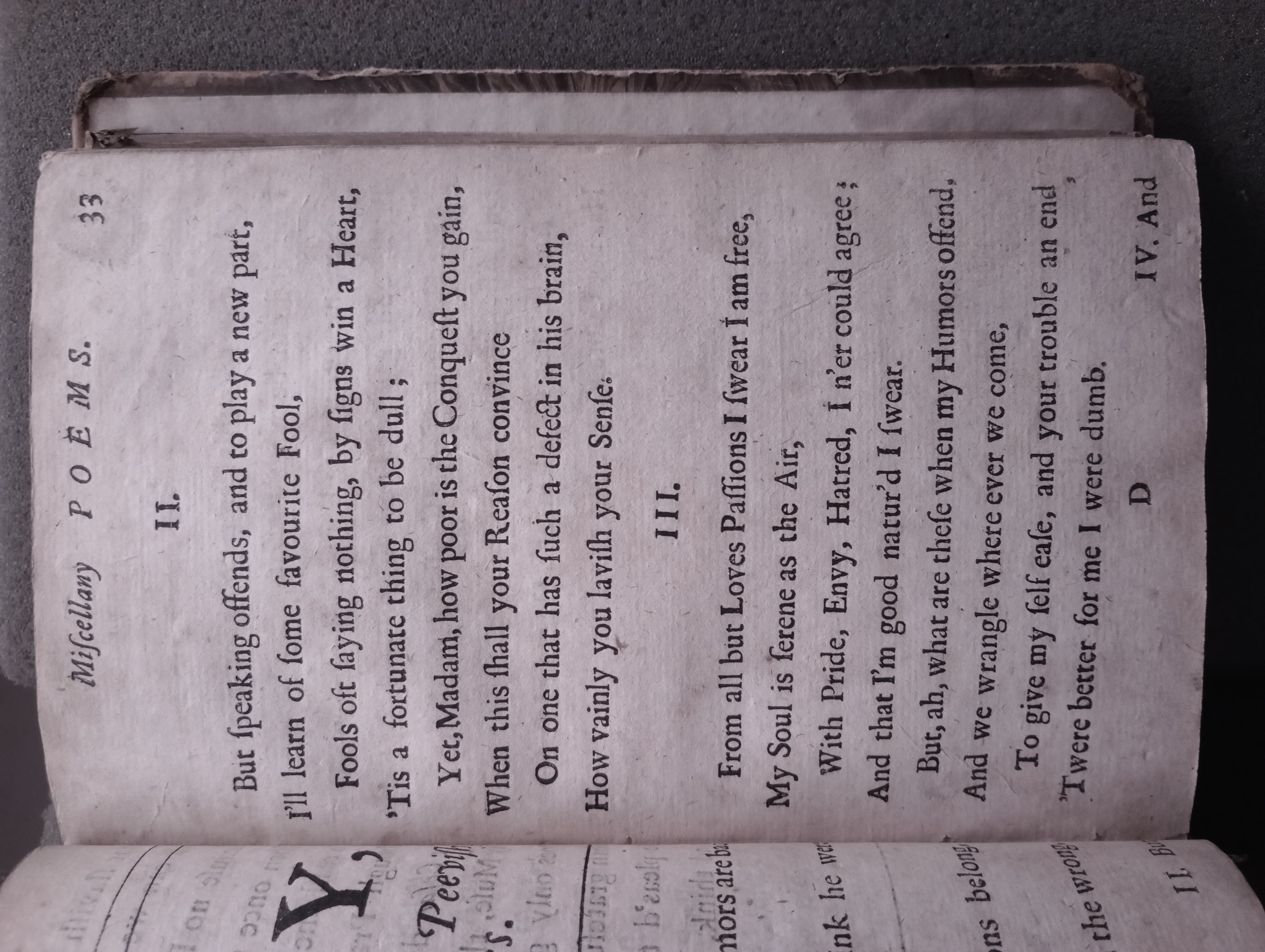 D'Urfey, Thomas, 1653-1723. New poems, consisting of satyrs, elegies, and odes together with a choice collection of the newest court songs set to musick by the best masters of the age / all written by Mr. D'Urfey. London: Printed for J. Bullord ... and A. Roper ..., 1690, pp. 32-34. [16],207,[1]p. (ESTC R17889) (Page images digitized from a copy in the Bodleian Library [Harding C 1197 (1)].)