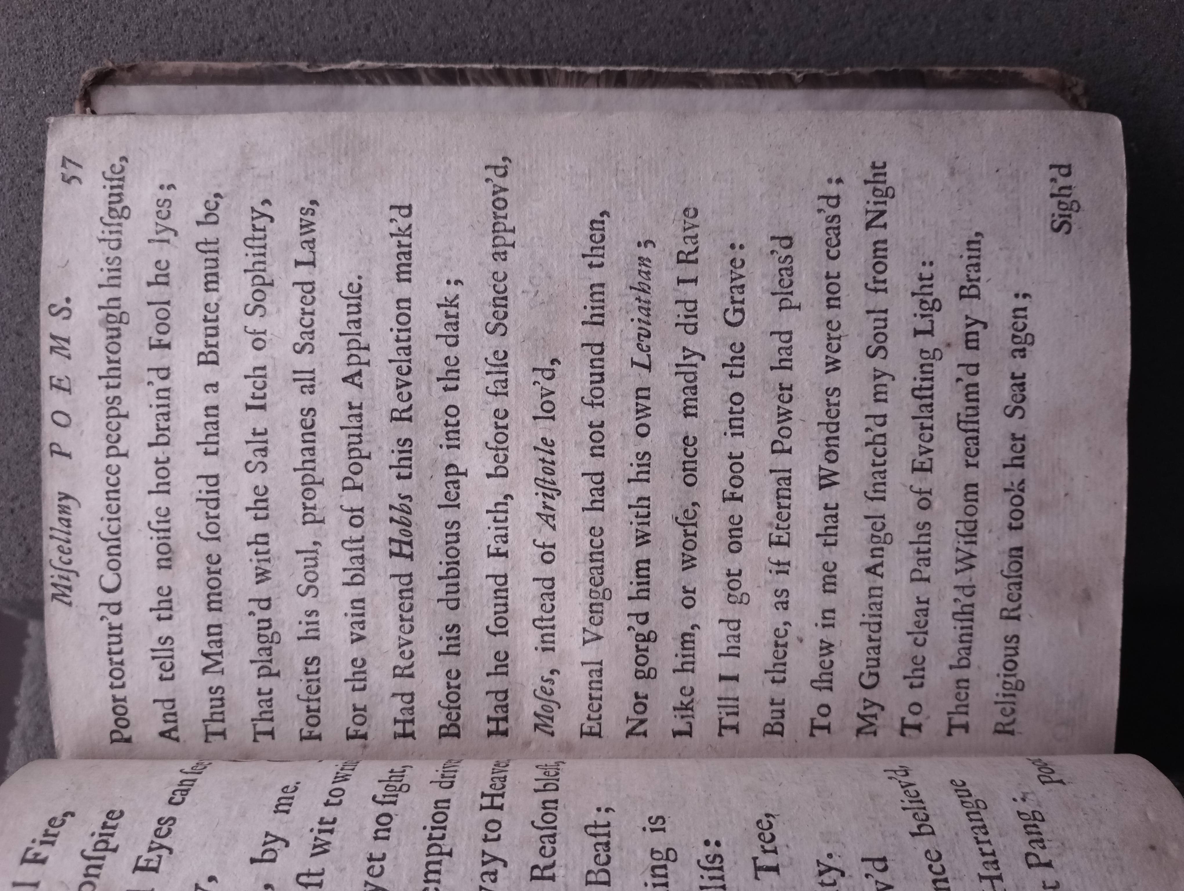 [Page 57]45 Poor tortur'd Conscience peeps through his disguise,