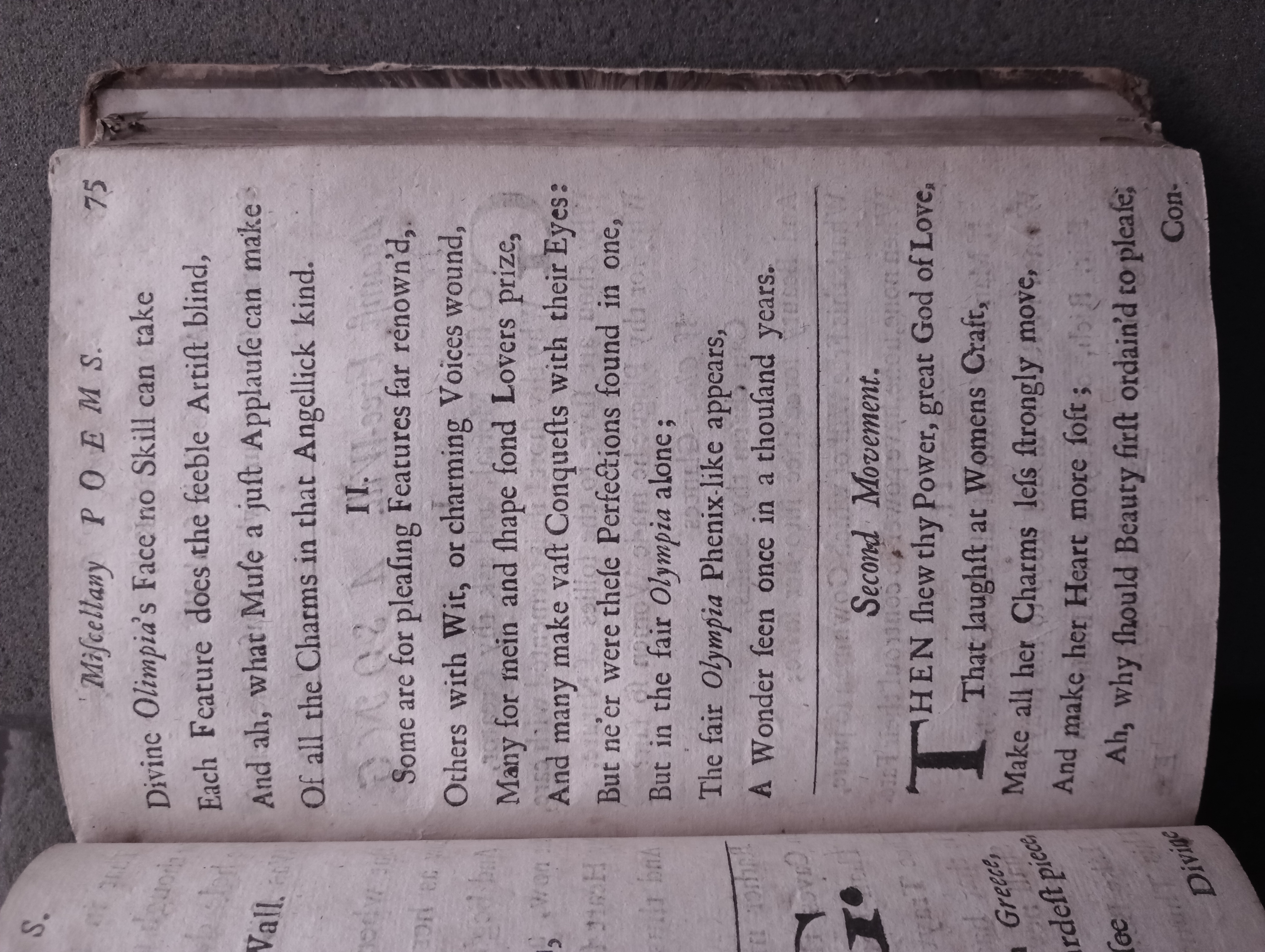D'Urfey, Thomas, 1653-1723. New poems, consisting of satyrs, elegies, and odes together with a choice collection of the newest court songs set to musick by the best masters of the age / all written by Mr. D'Urfey. London: Printed for J. Bullord ... and A. Roper ..., 1690, pp. 74-76. [16],207,[1]p. (ESTC R17889) (Page images digitized from a copy in the Bodleian Library [Harding C 1197 (1)].)