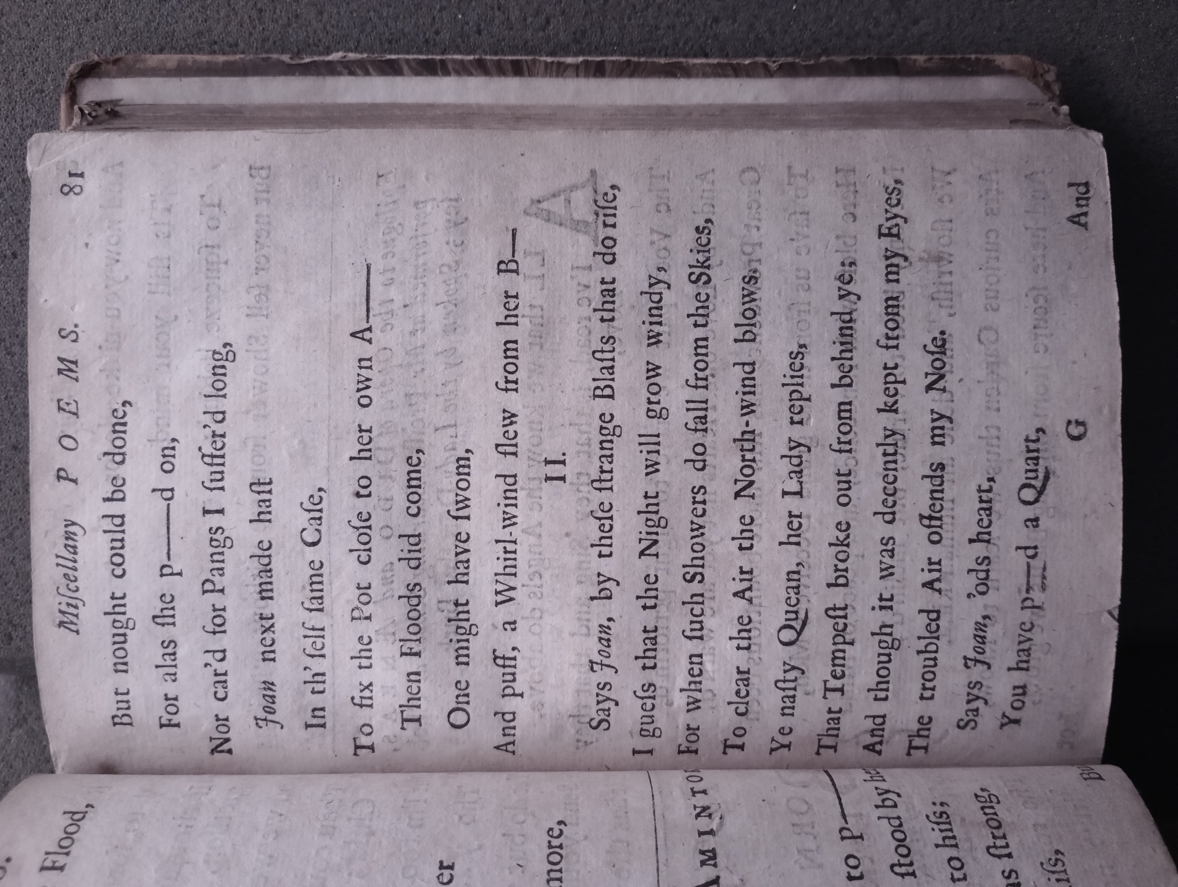 D'Urfey, Thomas, 1653-1723. New poems, consisting of satyrs, elegies, and odes together with a choice collection of the newest court songs set to musick by the best masters of the age / all written by Mr. D'Urfey. London: Printed for J. Bullord ... and A. Roper ..., 1690, pp. 80-82. [16],207,[1]p. (ESTC R17889) (Page images digitized from a copy in the Bodleian Library [Harding C 1197 (1)].)