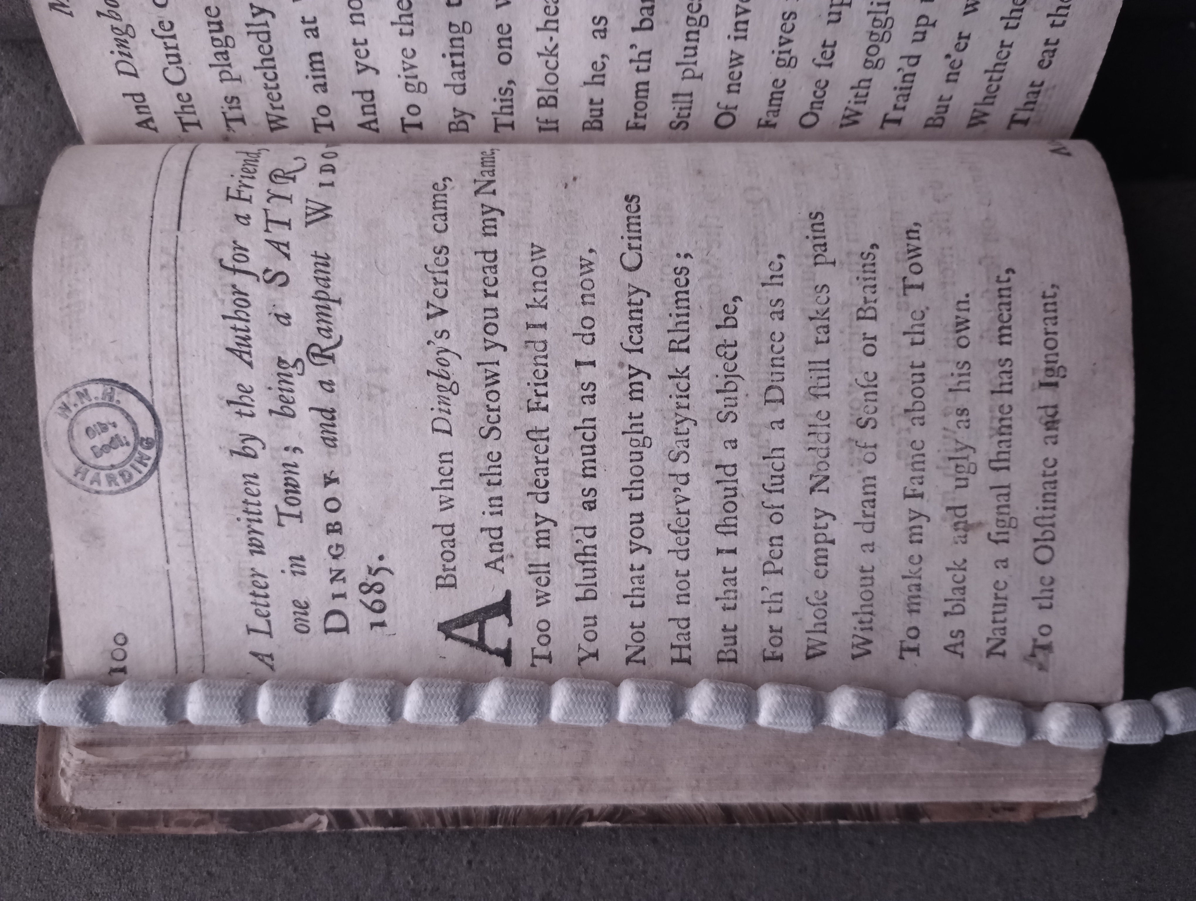 Title (in Source Edition): A Letter written by the Author for a Friend, to one in Town; being a SATYR, on DINGBOY and a Rampant WIDOW. 1685.