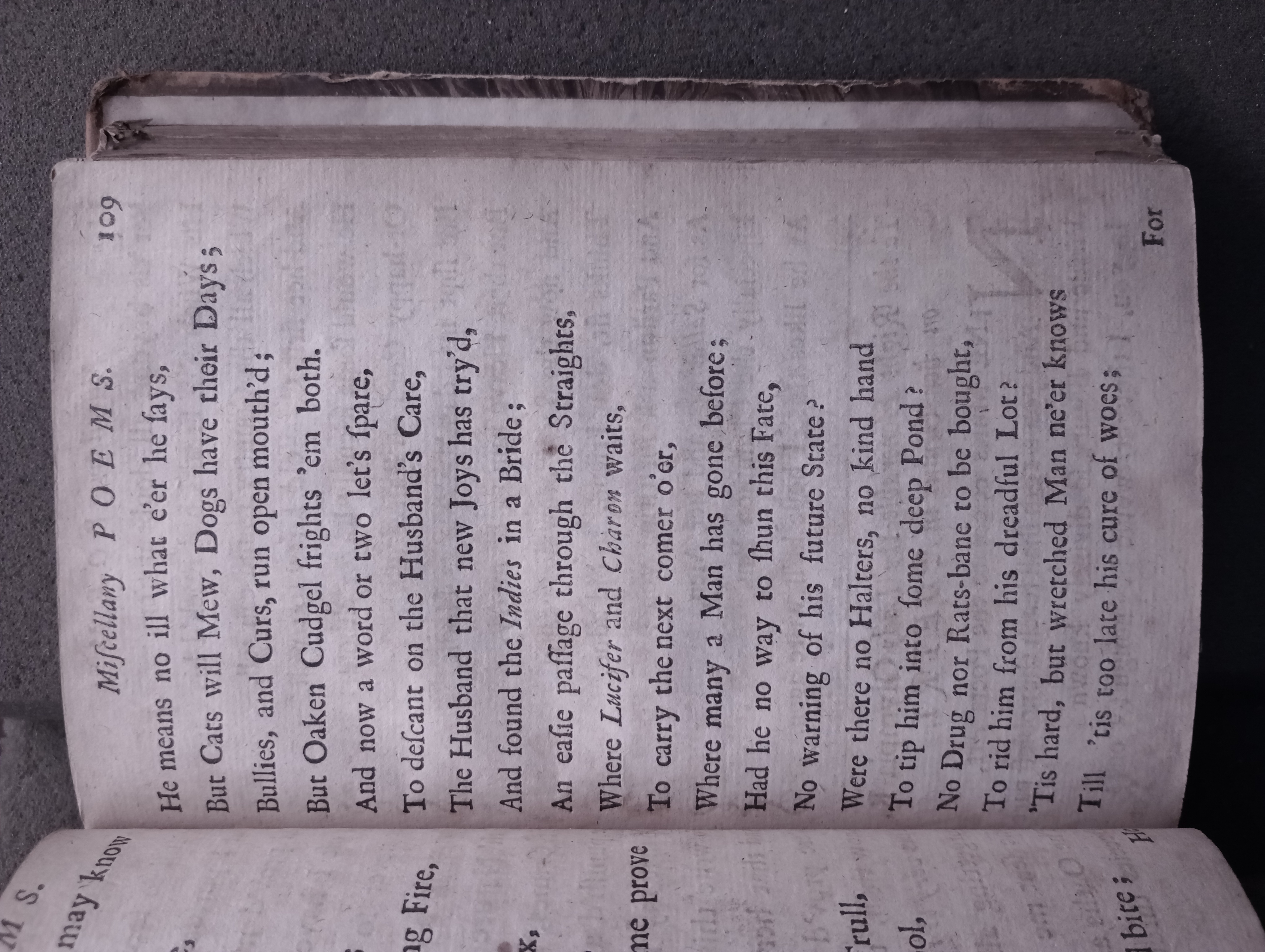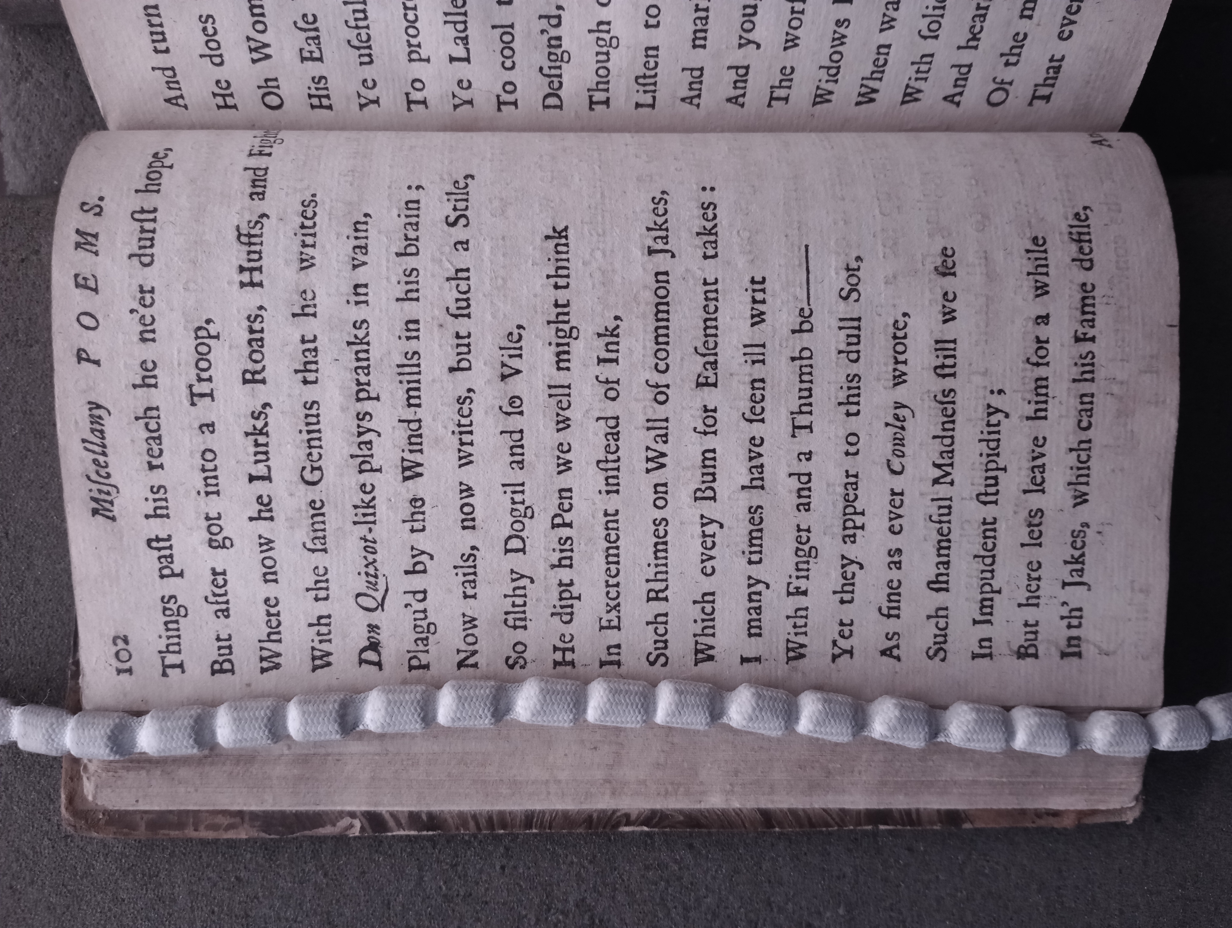 D'Urfey, Thomas, 1653-1723. New poems, consisting of satyrs, elegies, and odes together with a choice collection of the newest court songs set to musick by the best masters of the age / all written by Mr. D'Urfey. London: Printed for J. Bullord ... and A. Roper ..., 1690, pp. 100-110. [16],207,[1]p. (ESTC R17889) (Page images digitized from a copy in the Bodleian Library [Harding C 1197 (1)].)