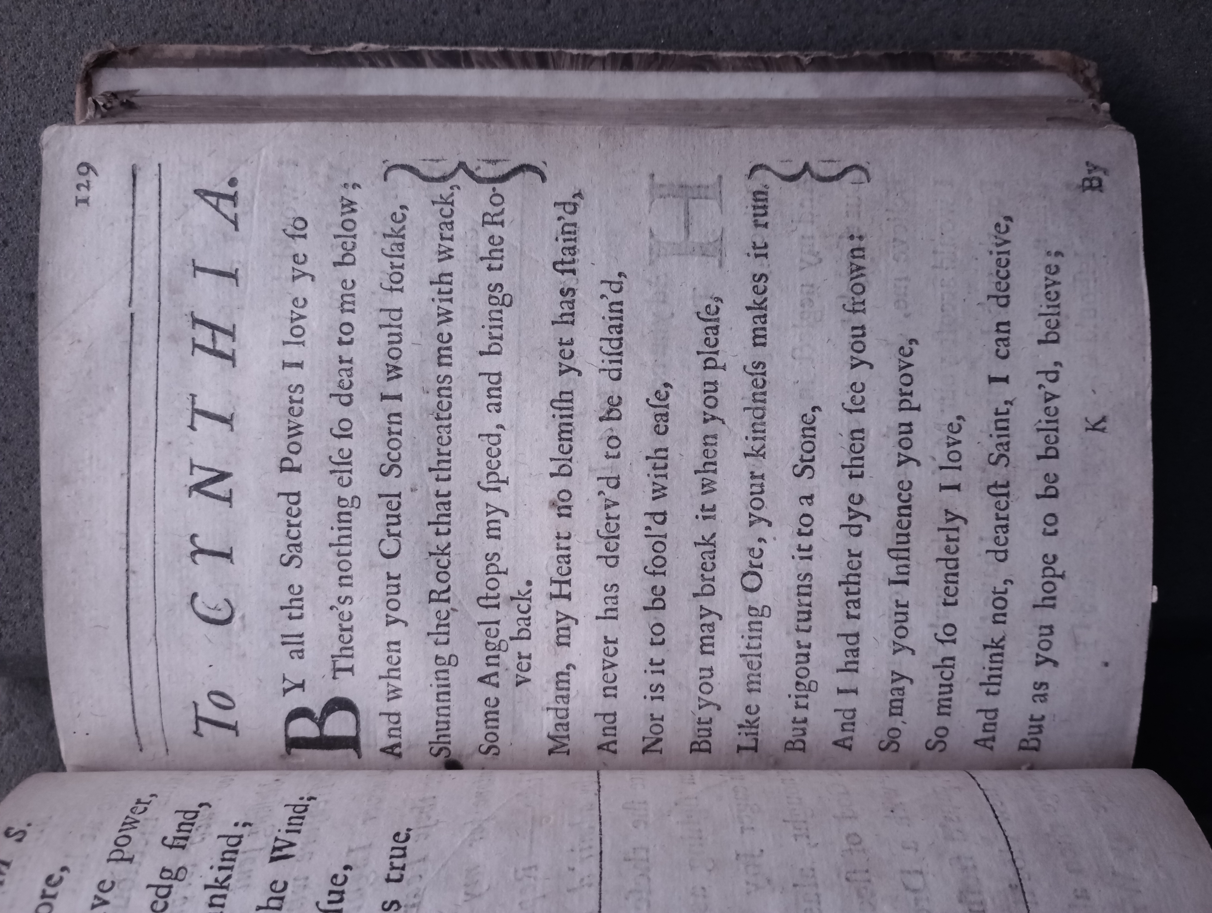 D'Urfey, Thomas, 1653-1723. New poems, consisting of satyrs, elegies, and odes together with a choice collection of the newest court songs set to musick by the best masters of the age / all written by Mr. D'Urfey. London: Printed for J. Bullord ... and A. Roper ..., 1690, pp. 129-130. [16],207,[1]p. (ESTC R17889) (Page images digitized from a copy in the Bodleian Library [Harding C 1197 (1)].)