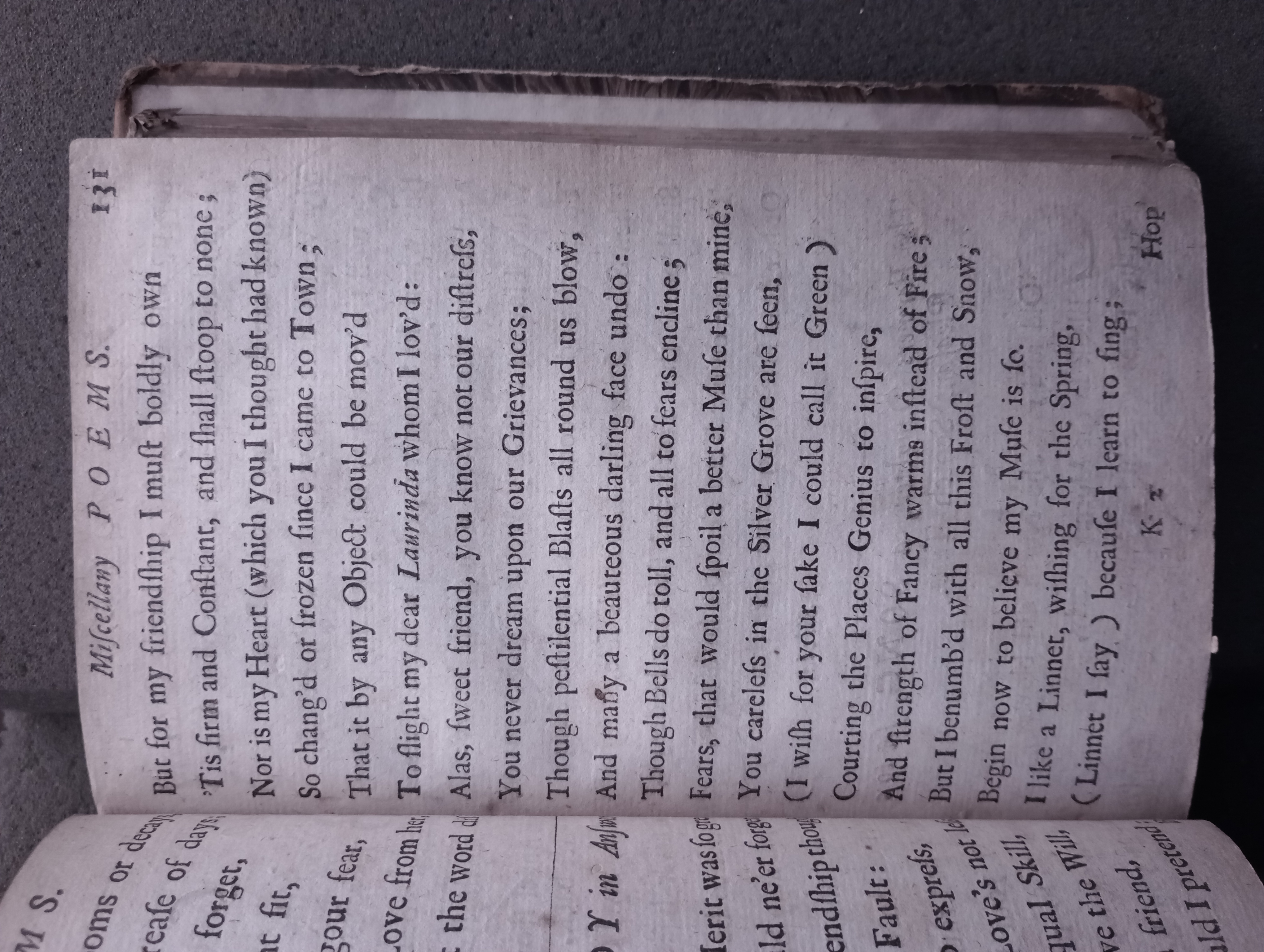 D'Urfey, Thomas, 1653-1723. New poems, consisting of satyrs, elegies, and odes together with a choice collection of the newest court songs set to musick by the best masters of the age / all written by Mr. D'Urfey. London: Printed for J. Bullord ... and A. Roper ..., 1690, pp. 130-132. [16],207,[1]p. (ESTC R17889) (Page images digitized from a copy in the Bodleian Library [Harding C 1197 (1)].)