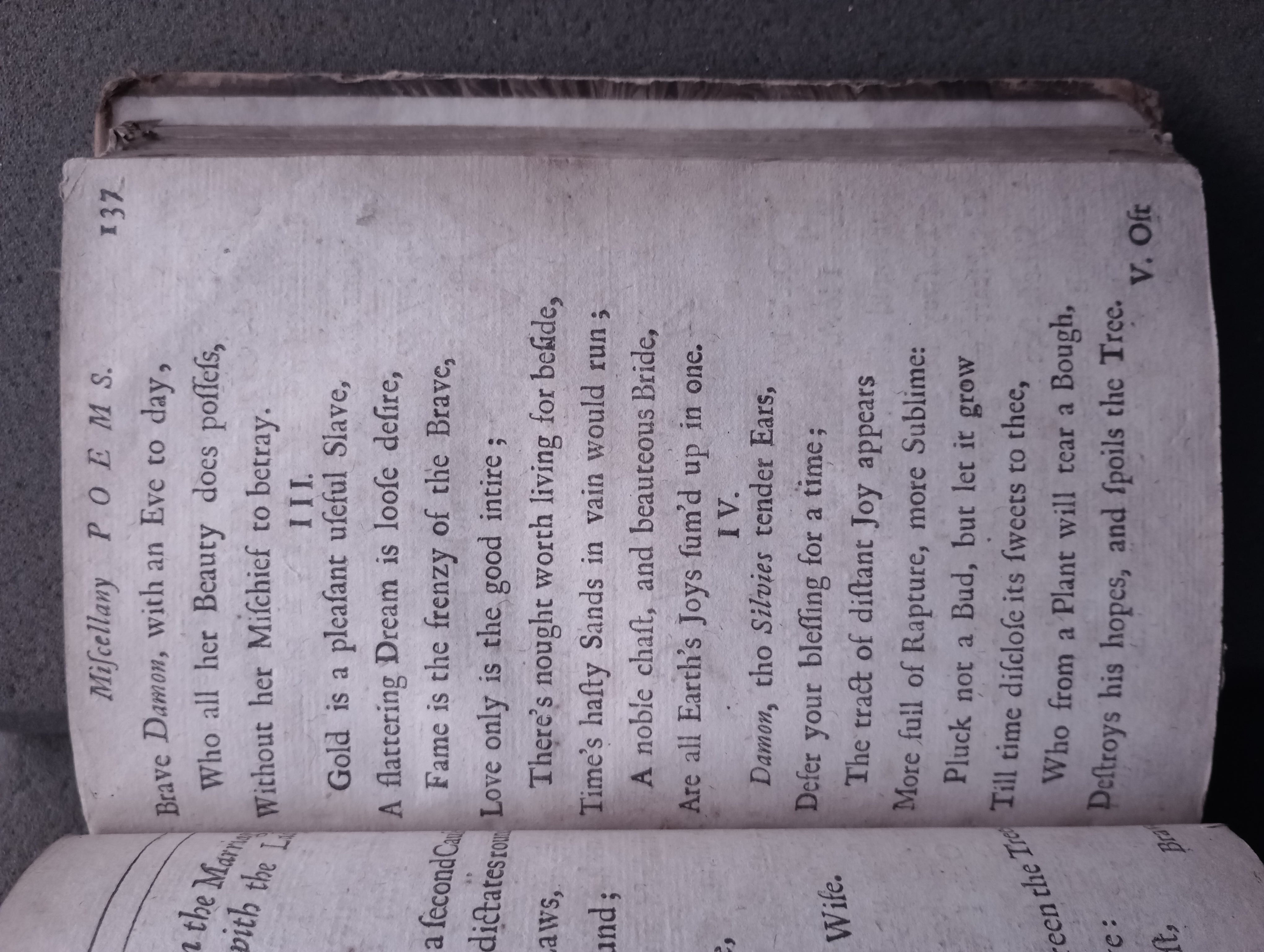 D'Urfey, Thomas, 1653-1723. New poems, consisting of satyrs, elegies, and odes together with a choice collection of the newest court songs set to musick by the best masters of the age / all written by Mr. D'Urfey. London: Printed for J. Bullord ... and A. Roper ..., 1690, pp. 136-138. [16],207,[1]p. (ESTC R17889) (Page images digitized from a copy in the Bodleian Library [Harding C 1197 (1)].)