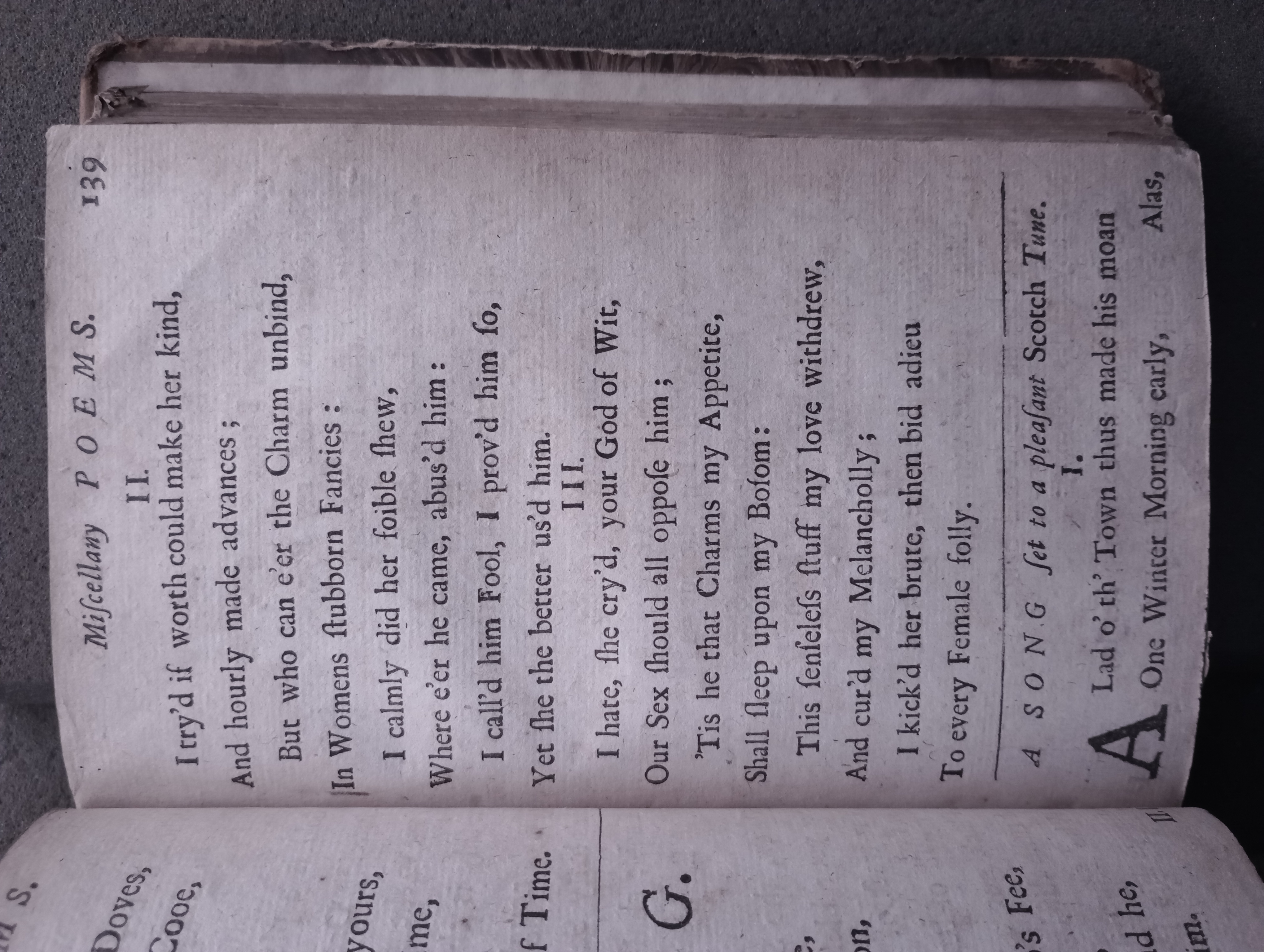 D'Urfey, Thomas, 1653-1723. New poems, consisting of satyrs, elegies, and odes together with a choice collection of the newest court songs set to musick by the best masters of the age / all written by Mr. D'Urfey. London: Printed for J. Bullord ... and A. Roper ..., 1690, pp. 139-141. [16],207,[1]p. (ESTC R17889) (Page images digitized from a copy in the Bodleian Library [Harding C 1197 (1)].)