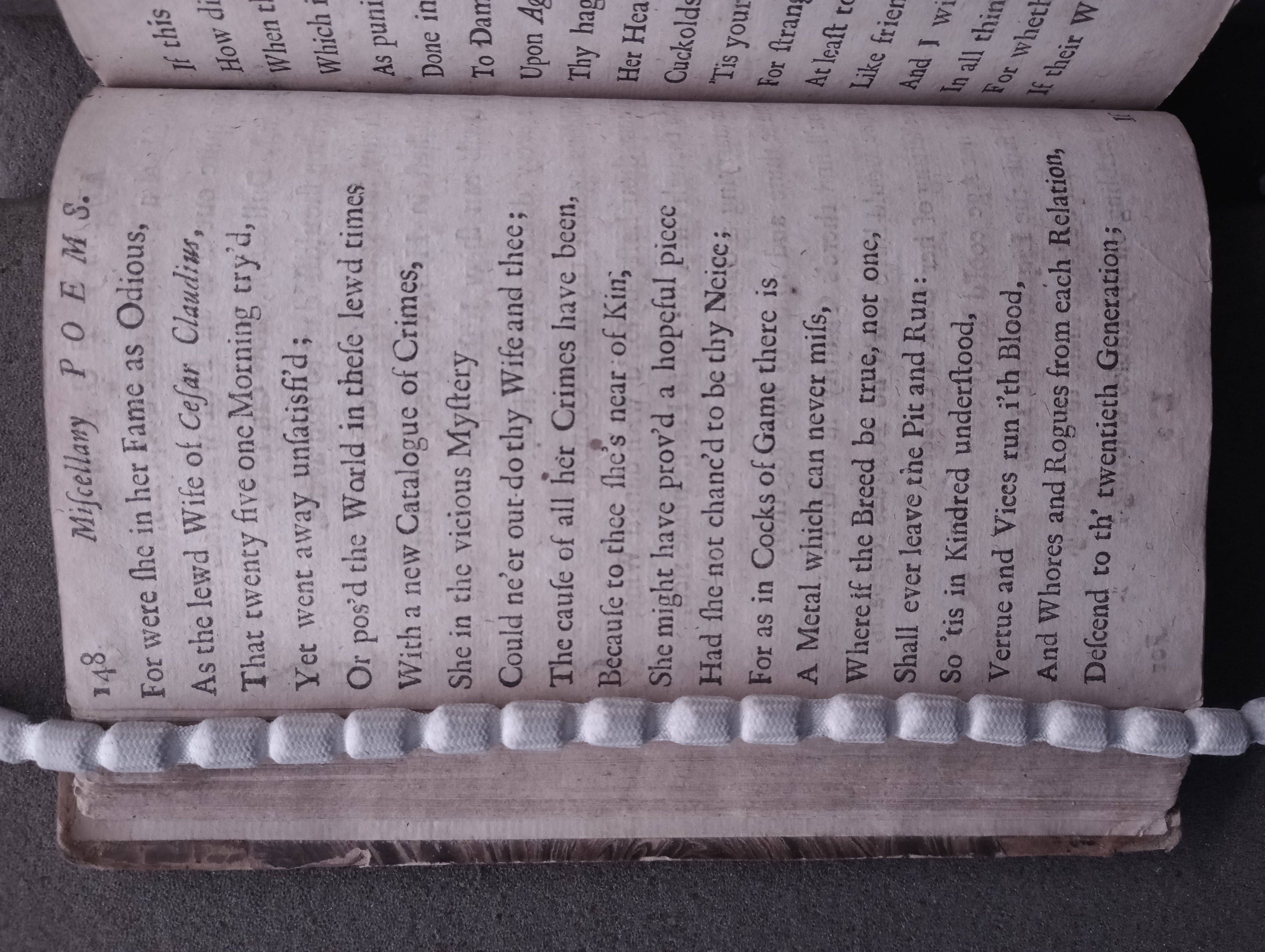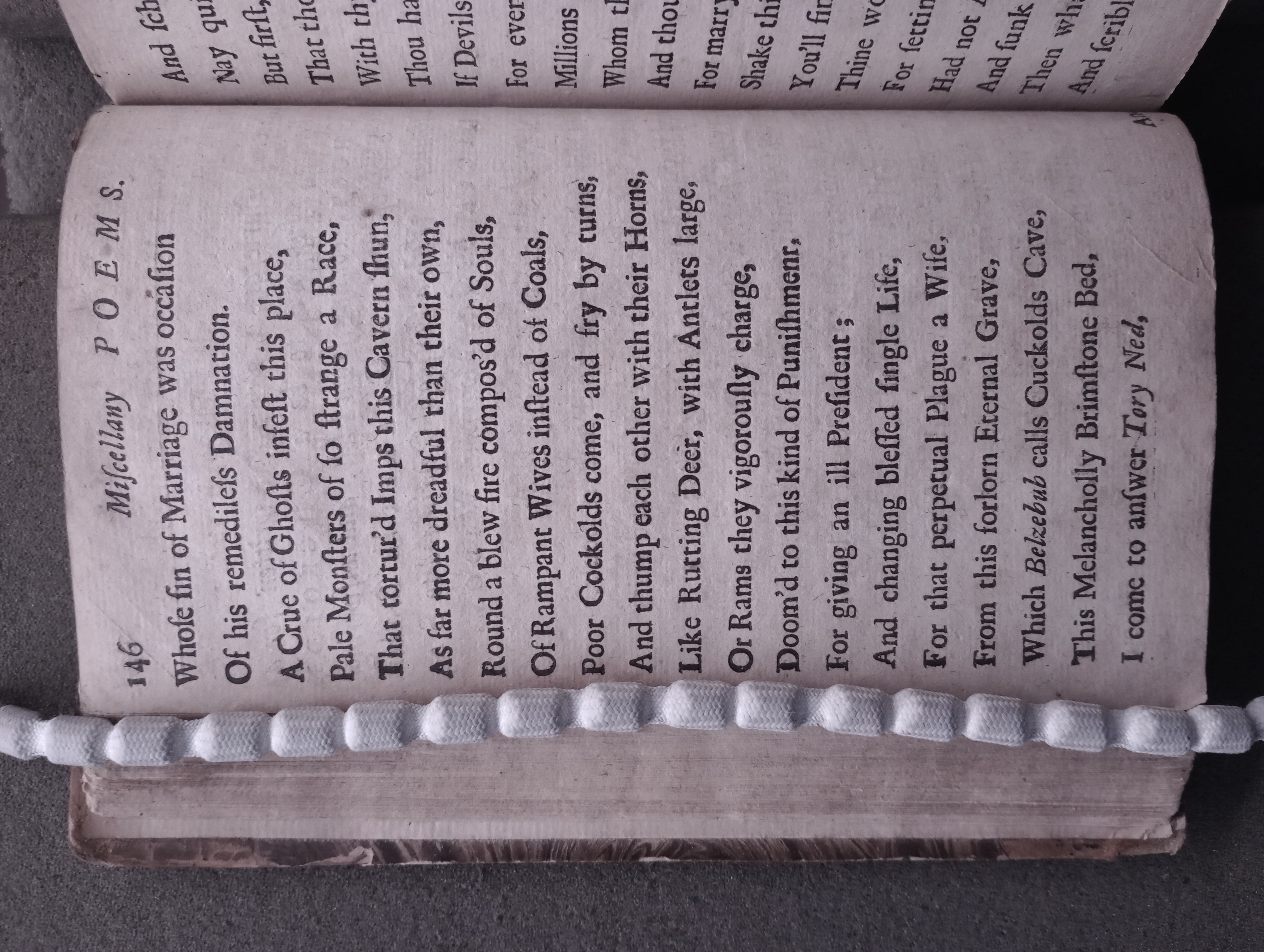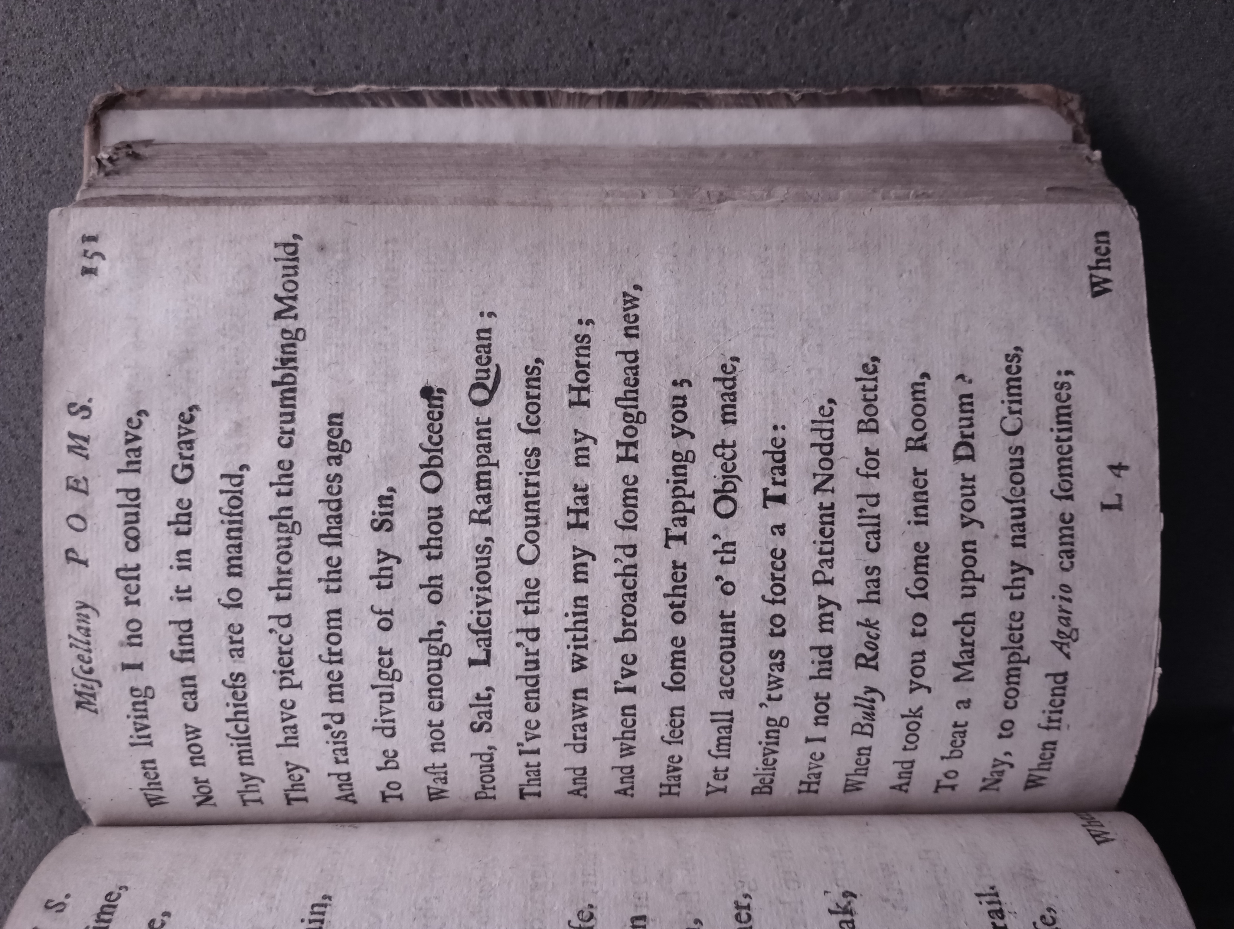 D'Urfey, Thomas, 1653-1723. New poems, consisting of satyrs, elegies, and odes together with a choice collection of the newest court songs set to musick by the best masters of the age / all written by Mr. D'Urfey. London: Printed for J. Bullord ... and A. Roper ..., 1690, pp. 145-156. [16],207,[1]p. (ESTC R17889) (Page images digitized from a copy in the Bodleian Library [Harding C 1197 (1)].)