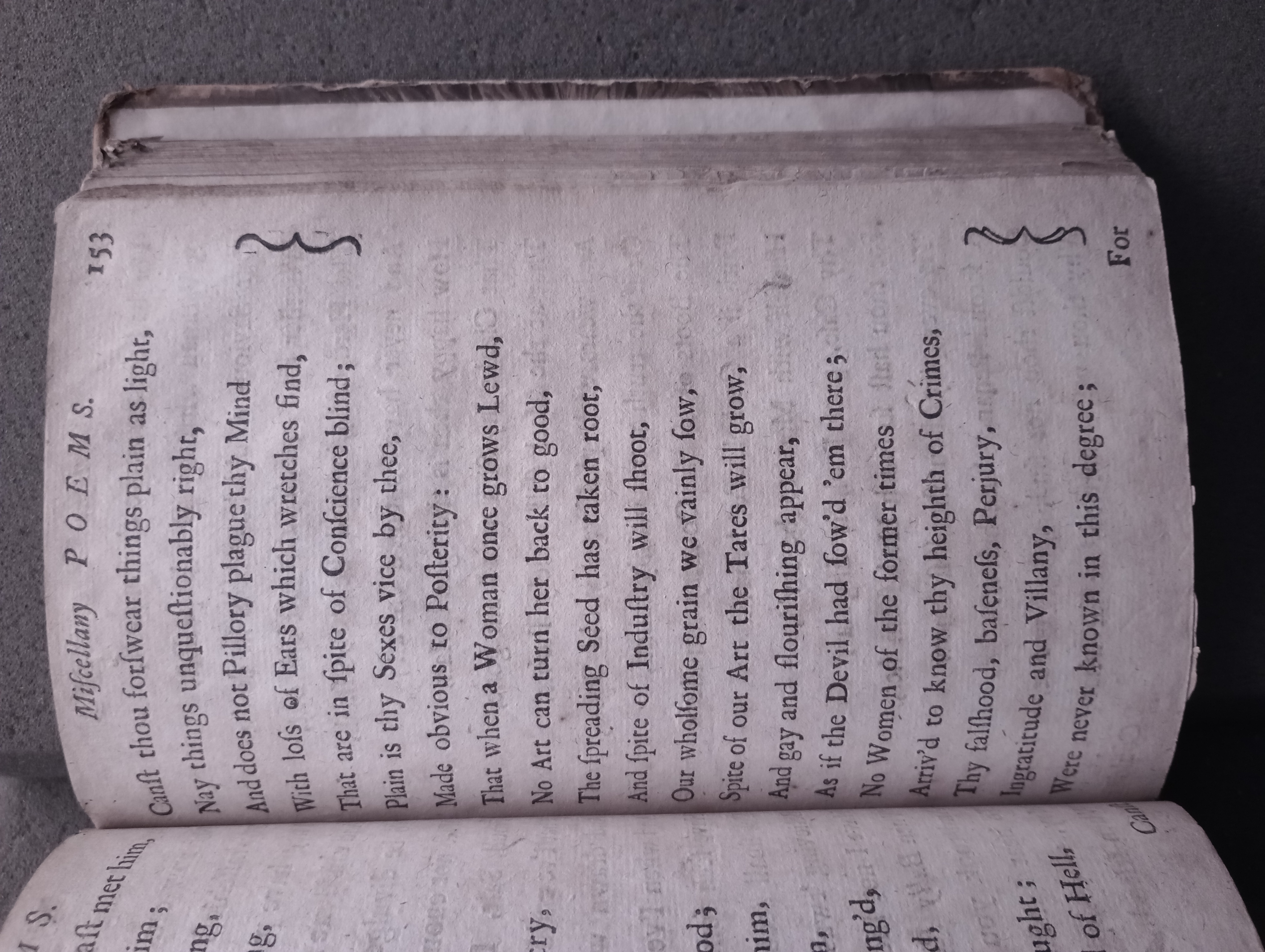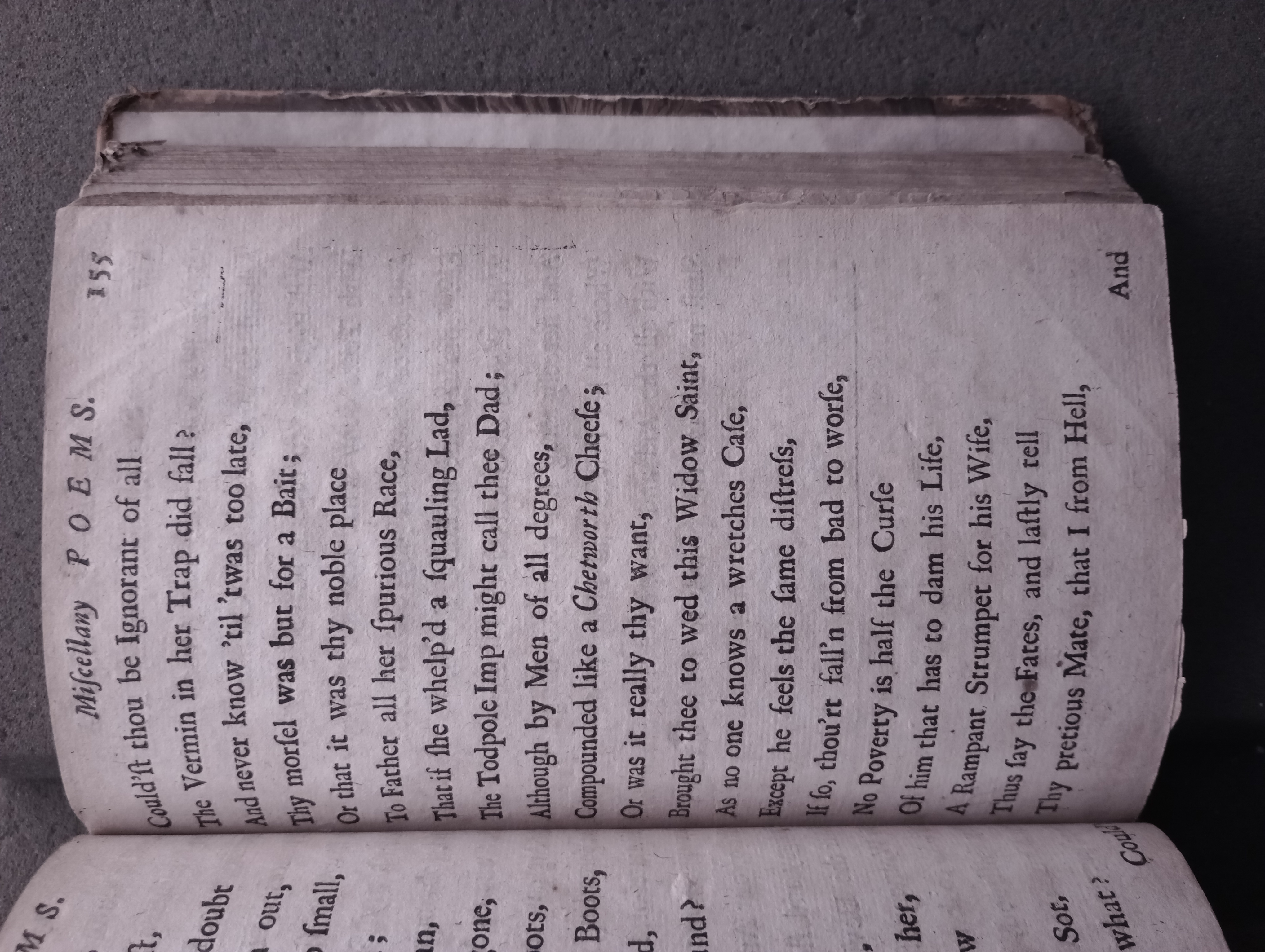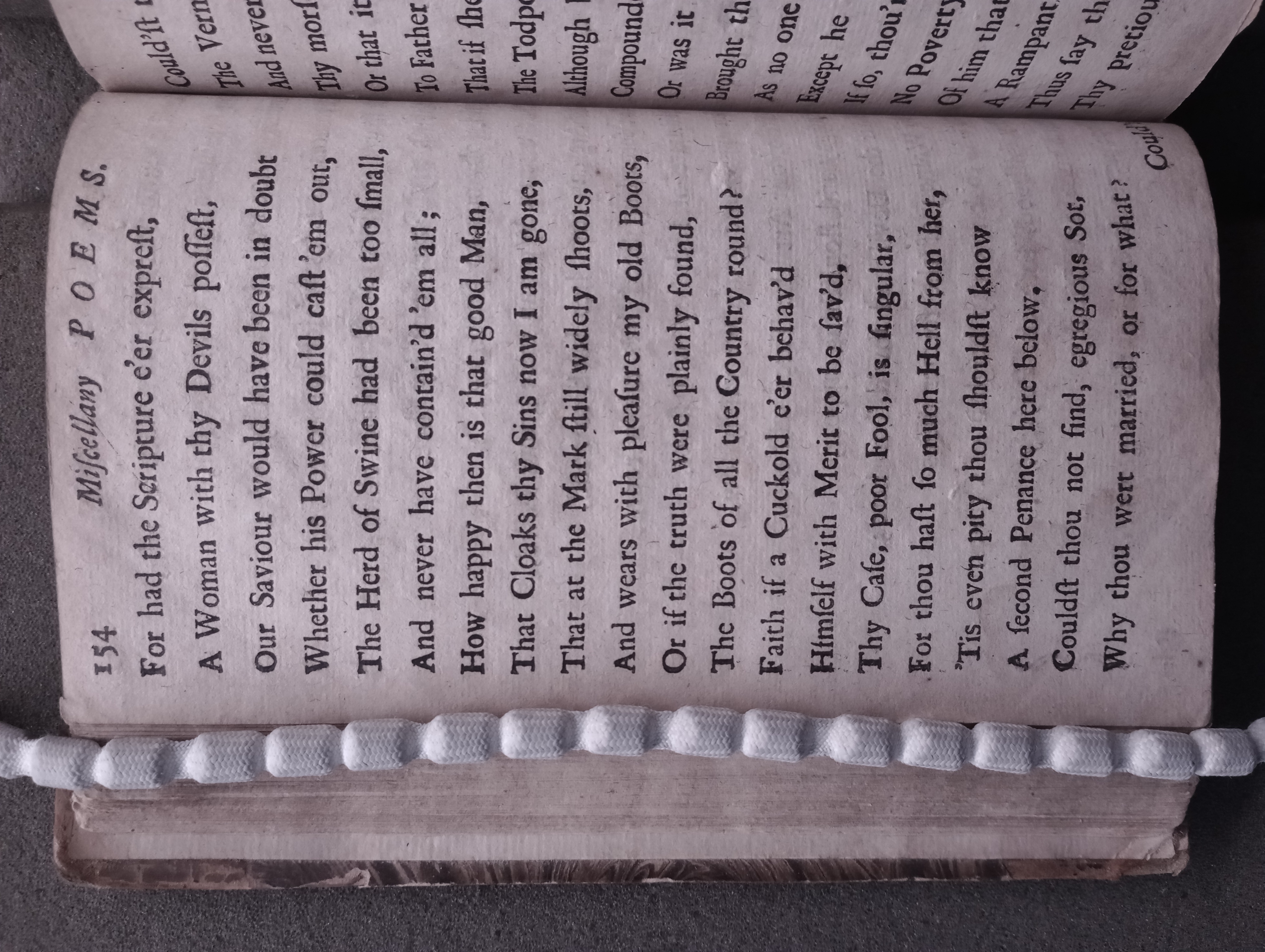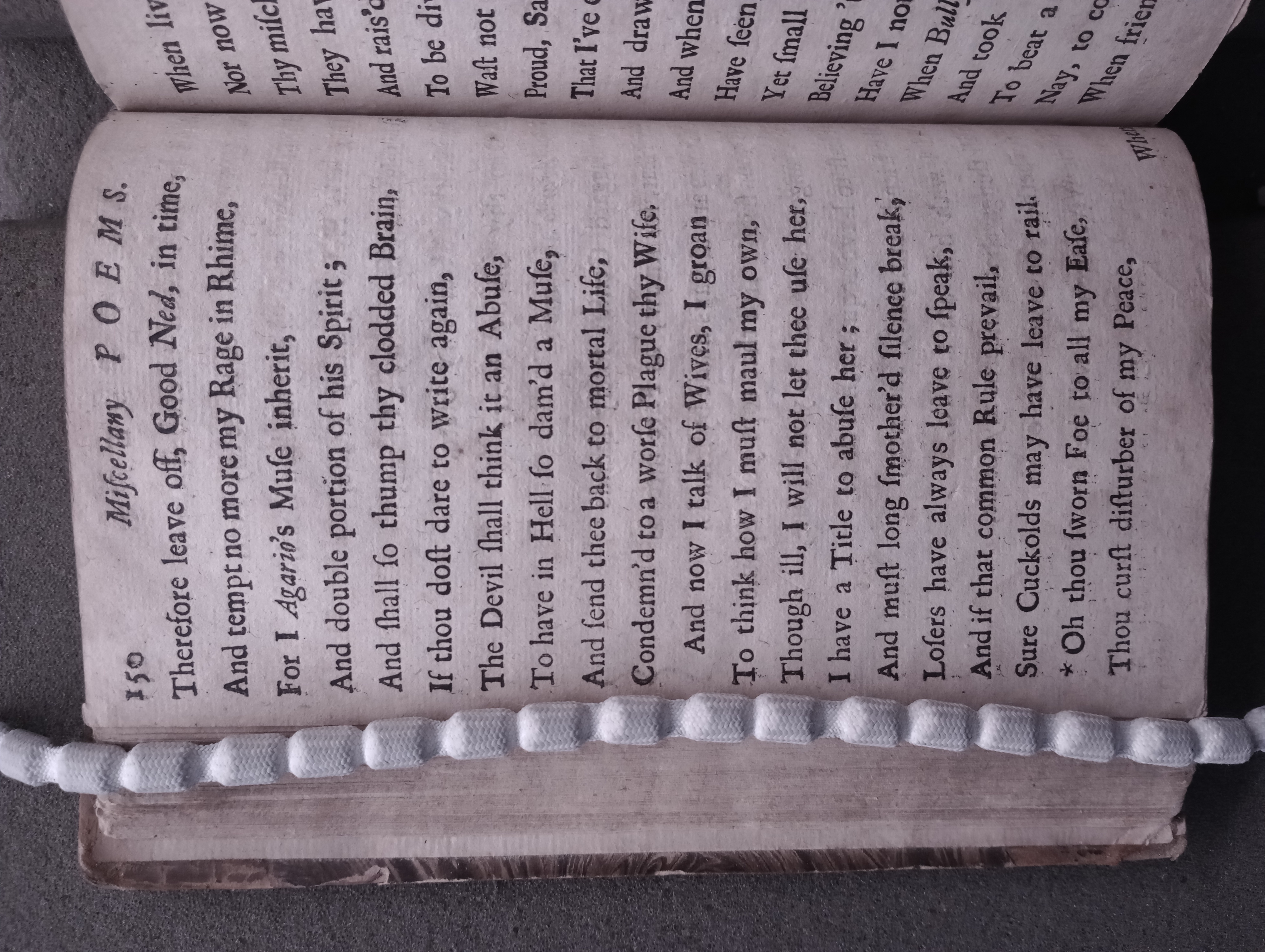D'Urfey, Thomas, 1653-1723. New poems, consisting of satyrs, elegies, and odes together with a choice collection of the newest court songs set to musick by the best masters of the age / all written by Mr. D'Urfey. London: Printed for J. Bullord ... and A. Roper ..., 1690, pp. 145-156. [16],207,[1]p. (ESTC R17889) (Page images digitized from a copy in the Bodleian Library [Harding C 1197 (1)].)