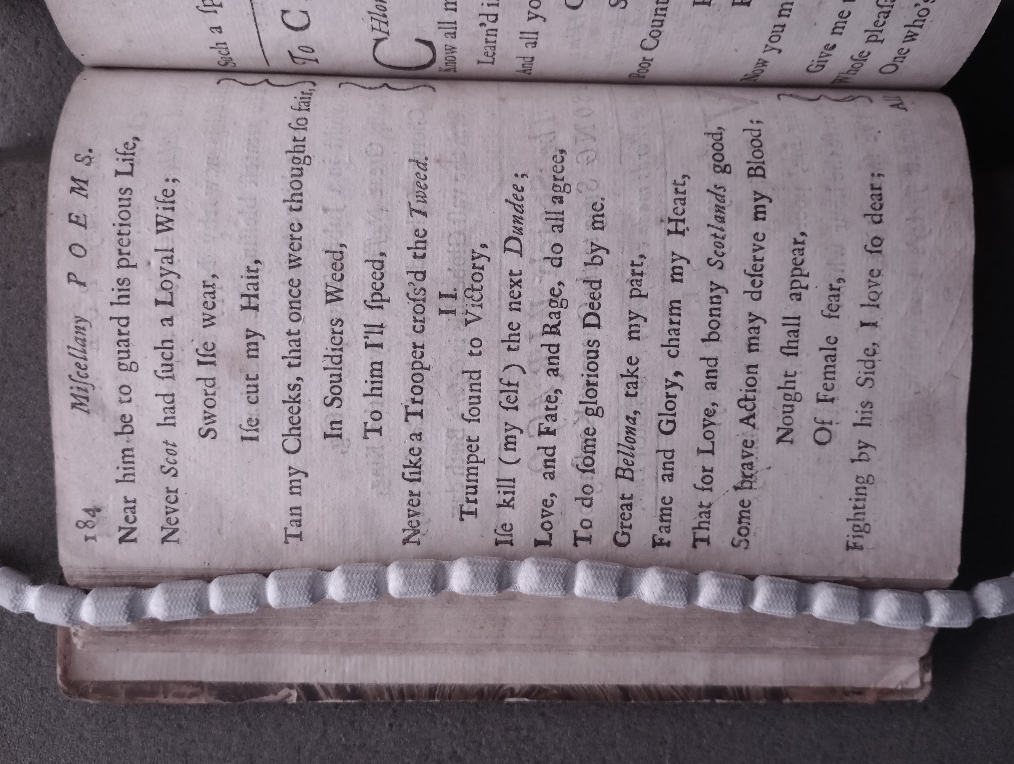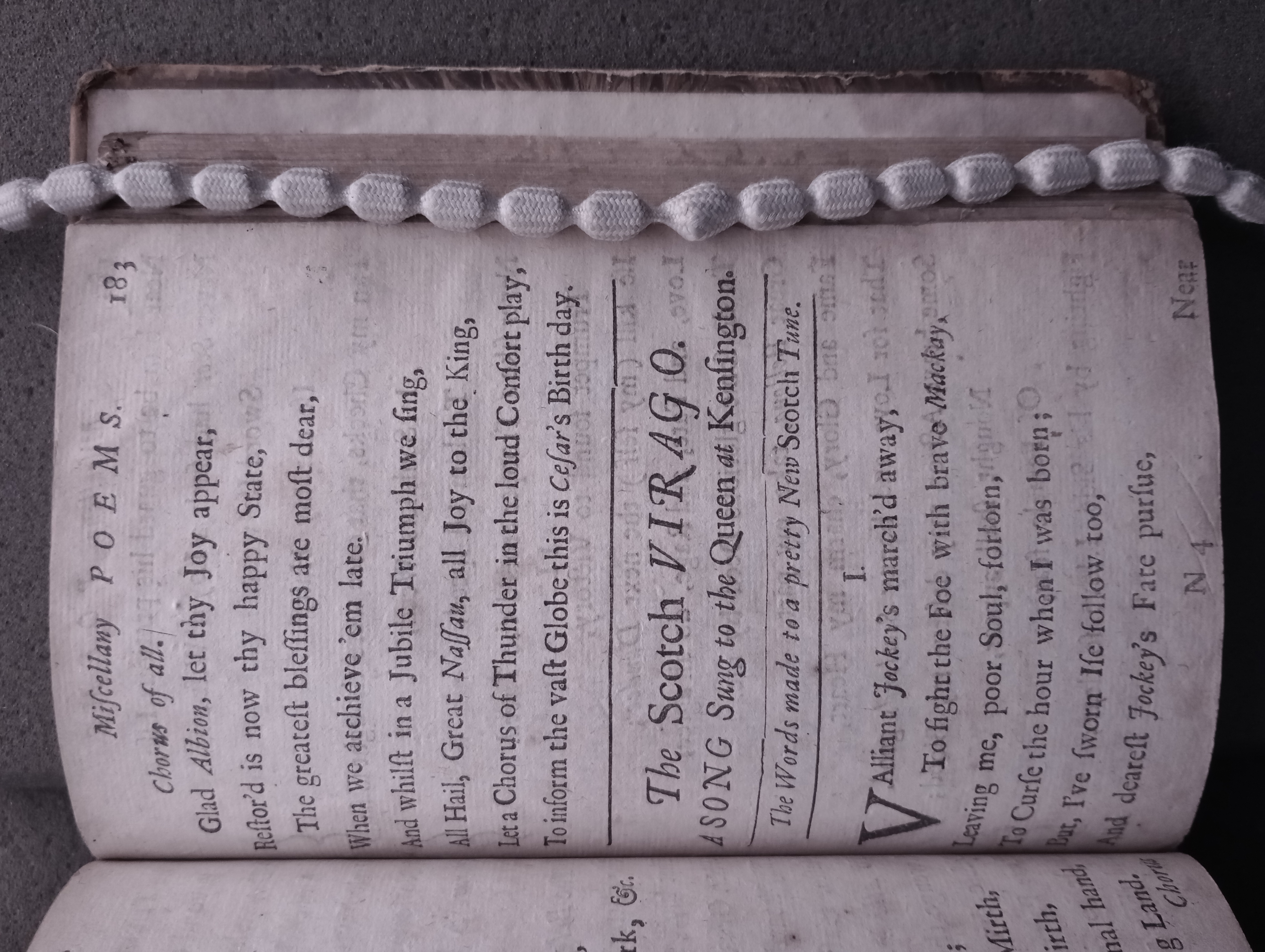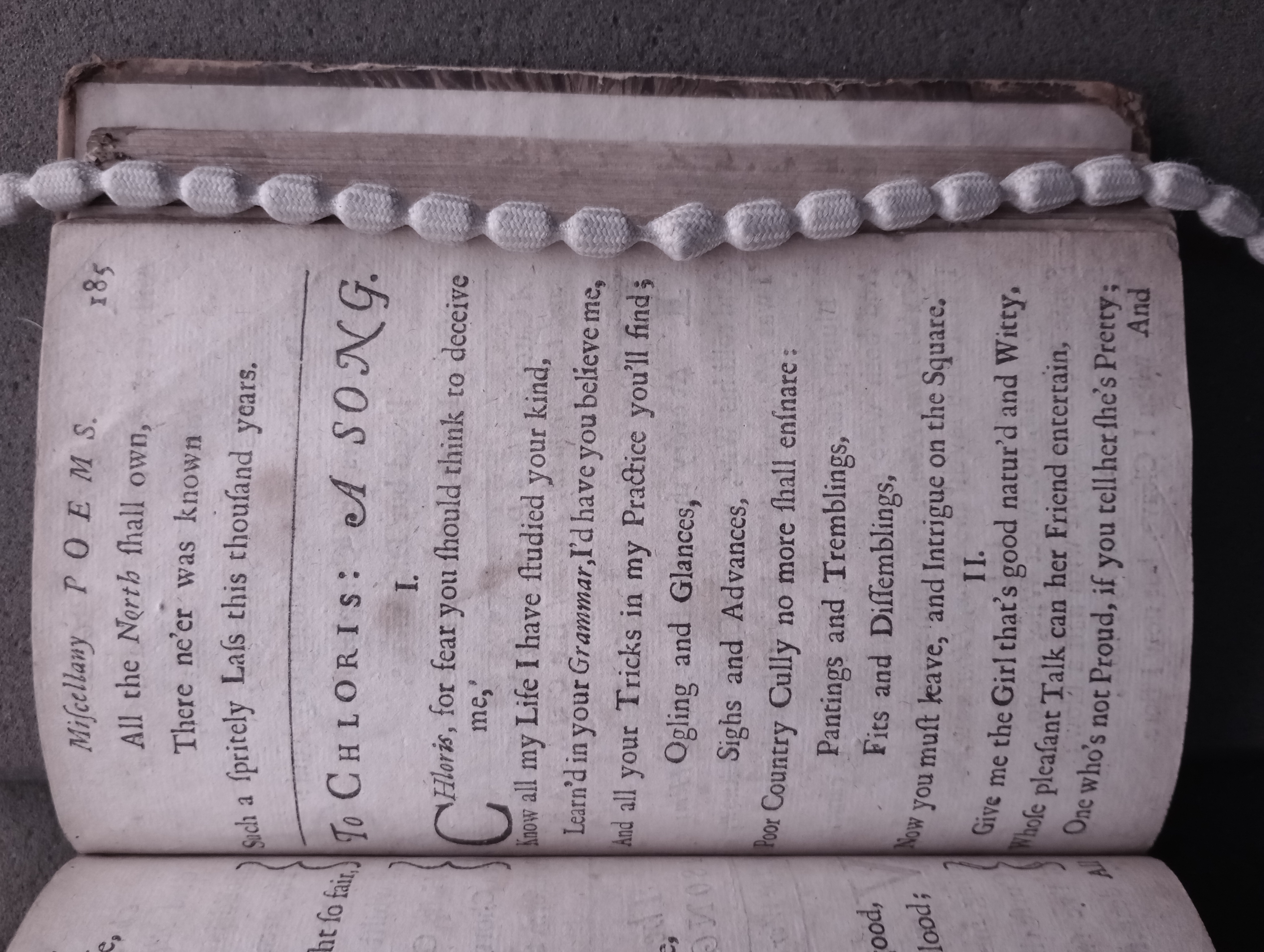 D'Urfey, Thomas, 1653-1723. New poems, consisting of satyrs, elegies, and odes together with a choice collection of the newest court songs set to musick by the best masters of the age / all written by Mr. D'Urfey. London: Printed for J. Bullord ... and A. Roper ..., 1690, pp. 183-185. [16],207,[1]p. (ESTC R17889) (Page images digitized from a copy in the Bodleian Library [Harding C 1197 (1)].)