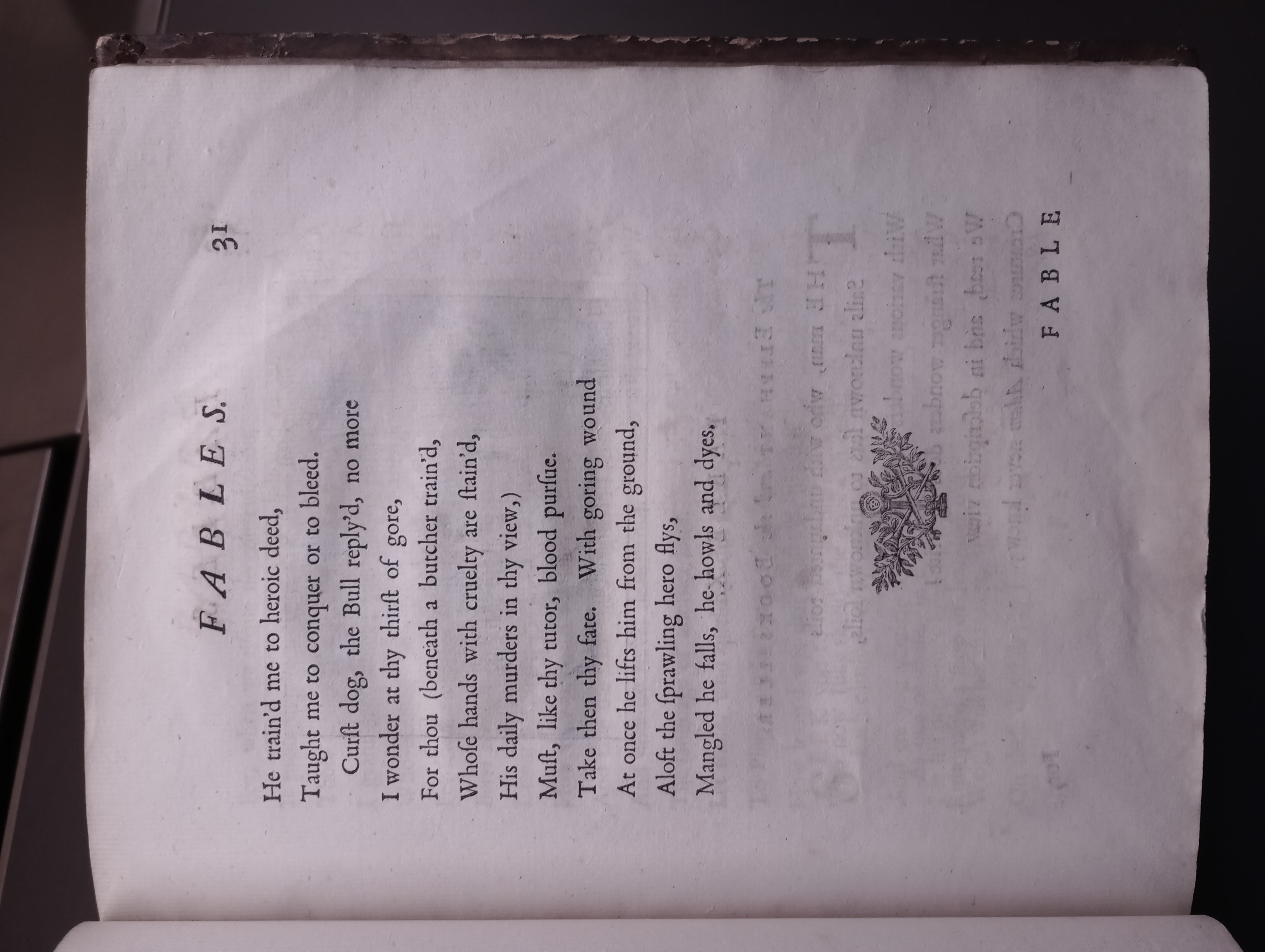 Gay, John, 1685-1732. FABLES. By Mr. GAY. London: Printed for J. Tonson and J. Watts, MDCCXXVII., 1727, pp. 29-31. [14],173,[1]p.: ill.; 4°. (ESTC T13818) (Page images digitized from a copy in the Bodleian Library [AA 29 Art.Seld.].)