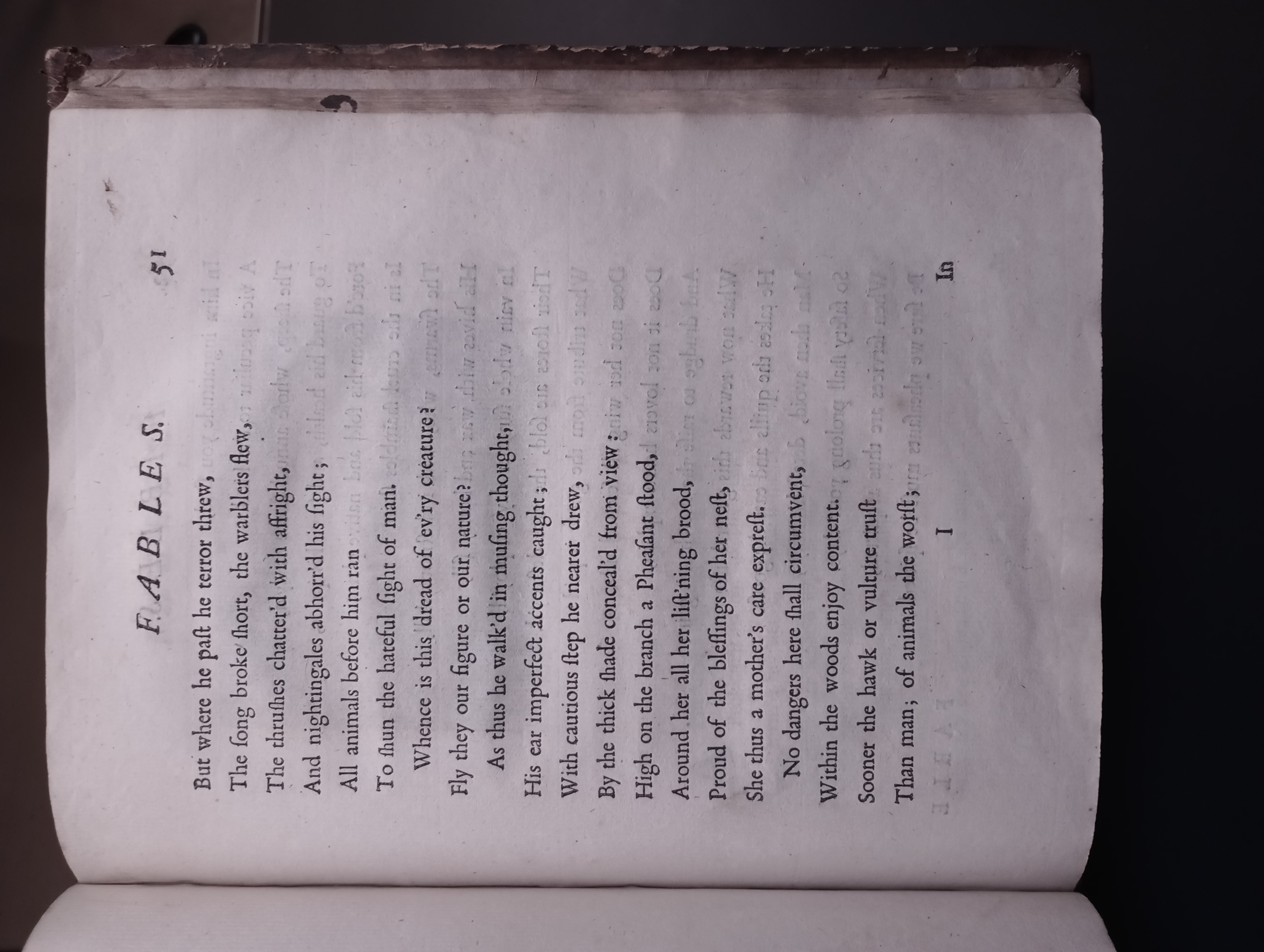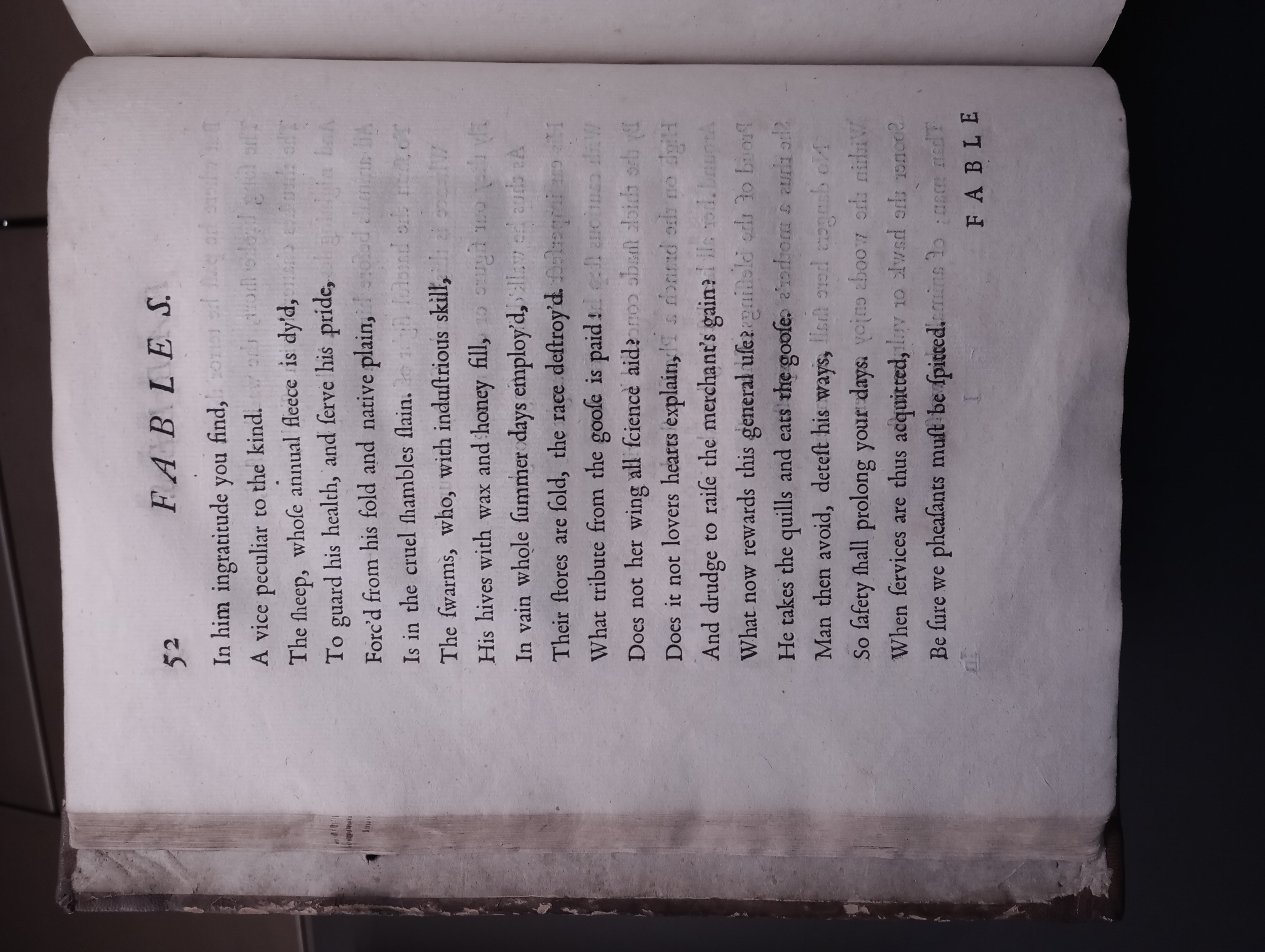 Gay, John, 1685-1732. FABLES. By Mr. GAY. London: Printed for J. Tonson and J. Watts, MDCCXXVII., 1727, pp. 50-52. [14],173,[1]p.: ill.; 4°. (ESTC T13818) (Page images digitized from a copy in the Bodleian Library [AA 29 Art.Seld.].)