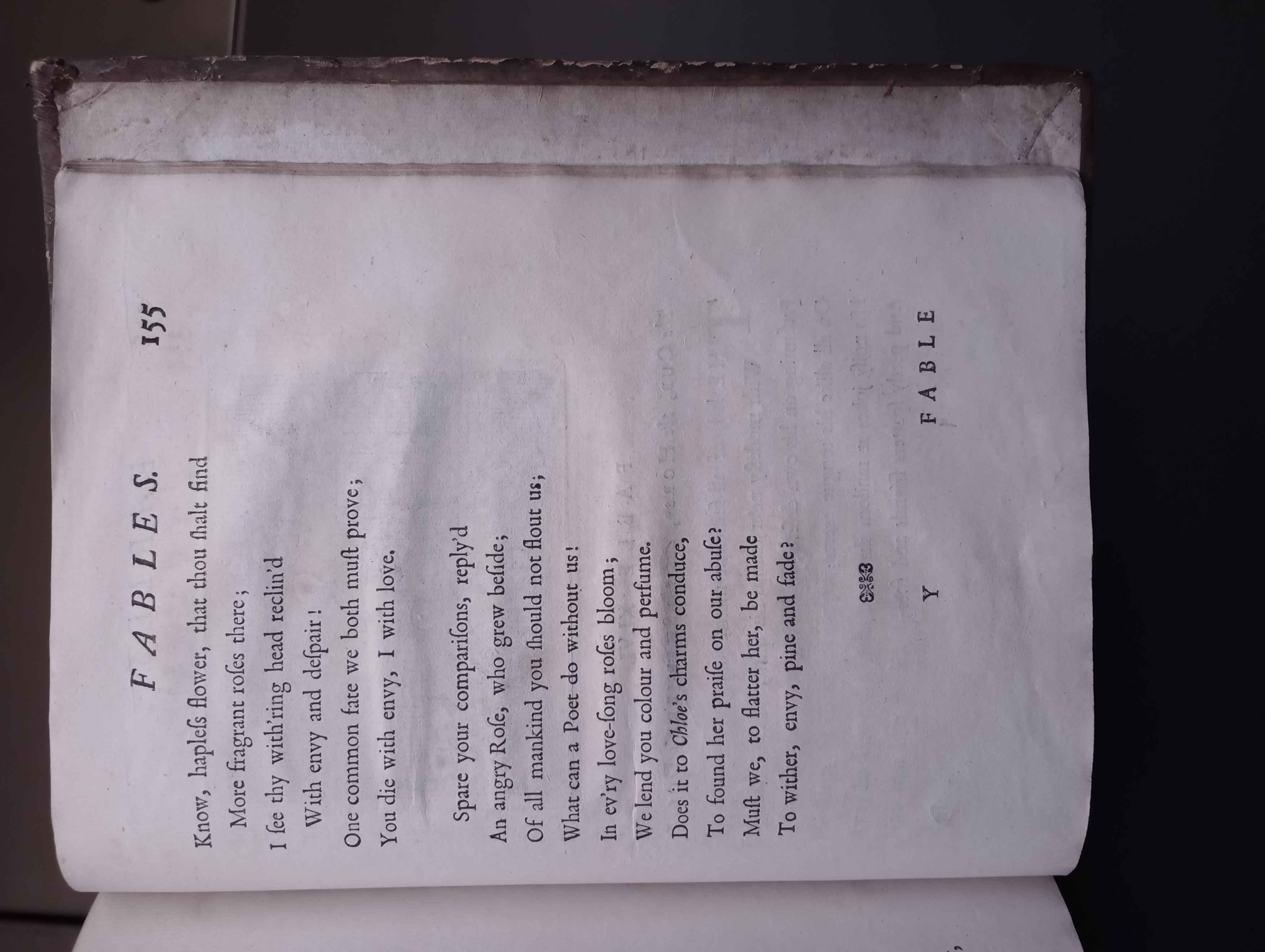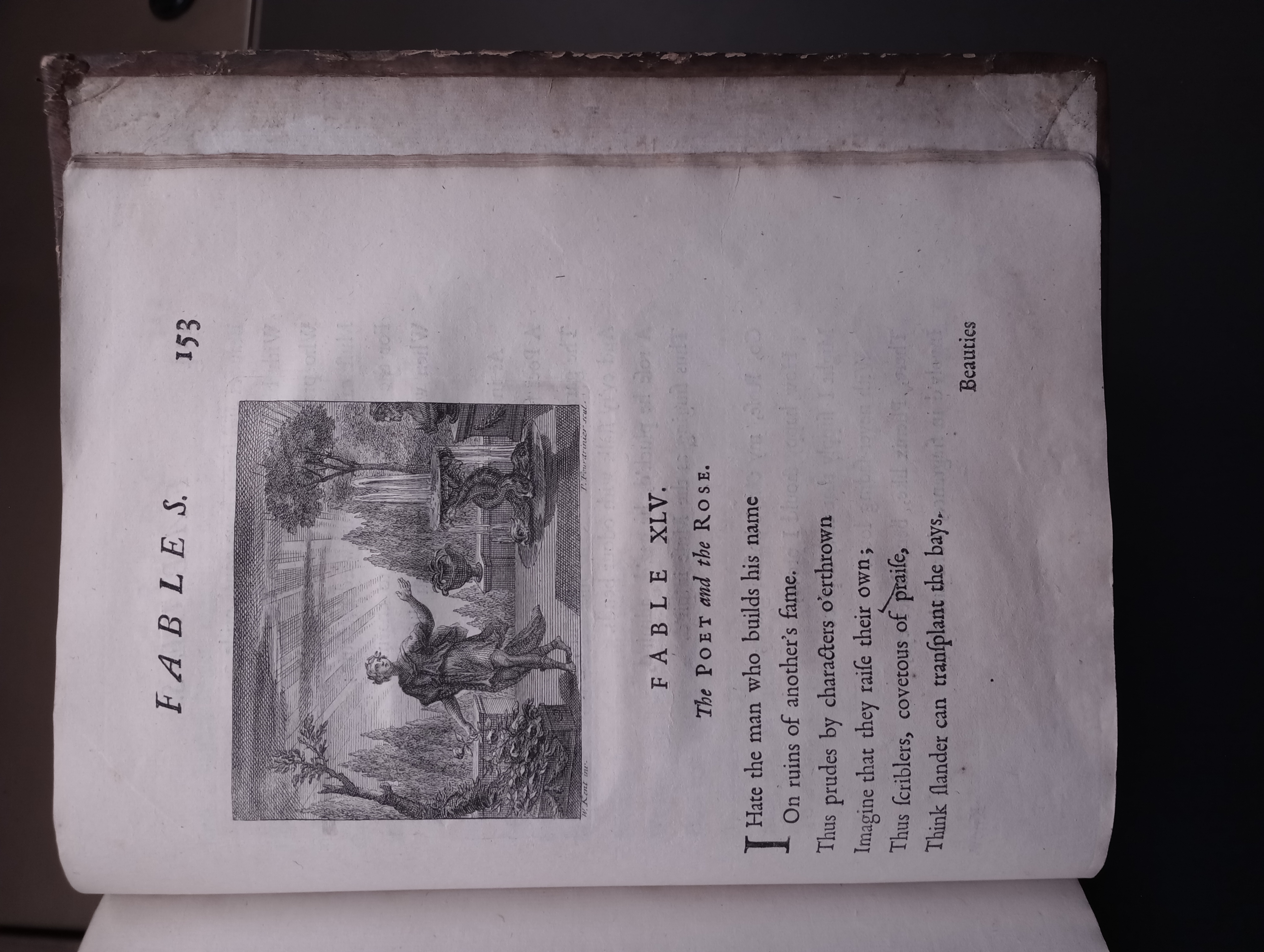 Gay, John, 1685-1732. FABLES. By Mr. GAY. London: Printed for J. Tonson and J. Watts, MDCCXXVII., 1727, pp. 153-155. [14],173,[1]p.: ill.; 4°. (ESTC T13818) (Page images digitized from a copy in the Bodleian Library [AA 29 Art.Seld.].)