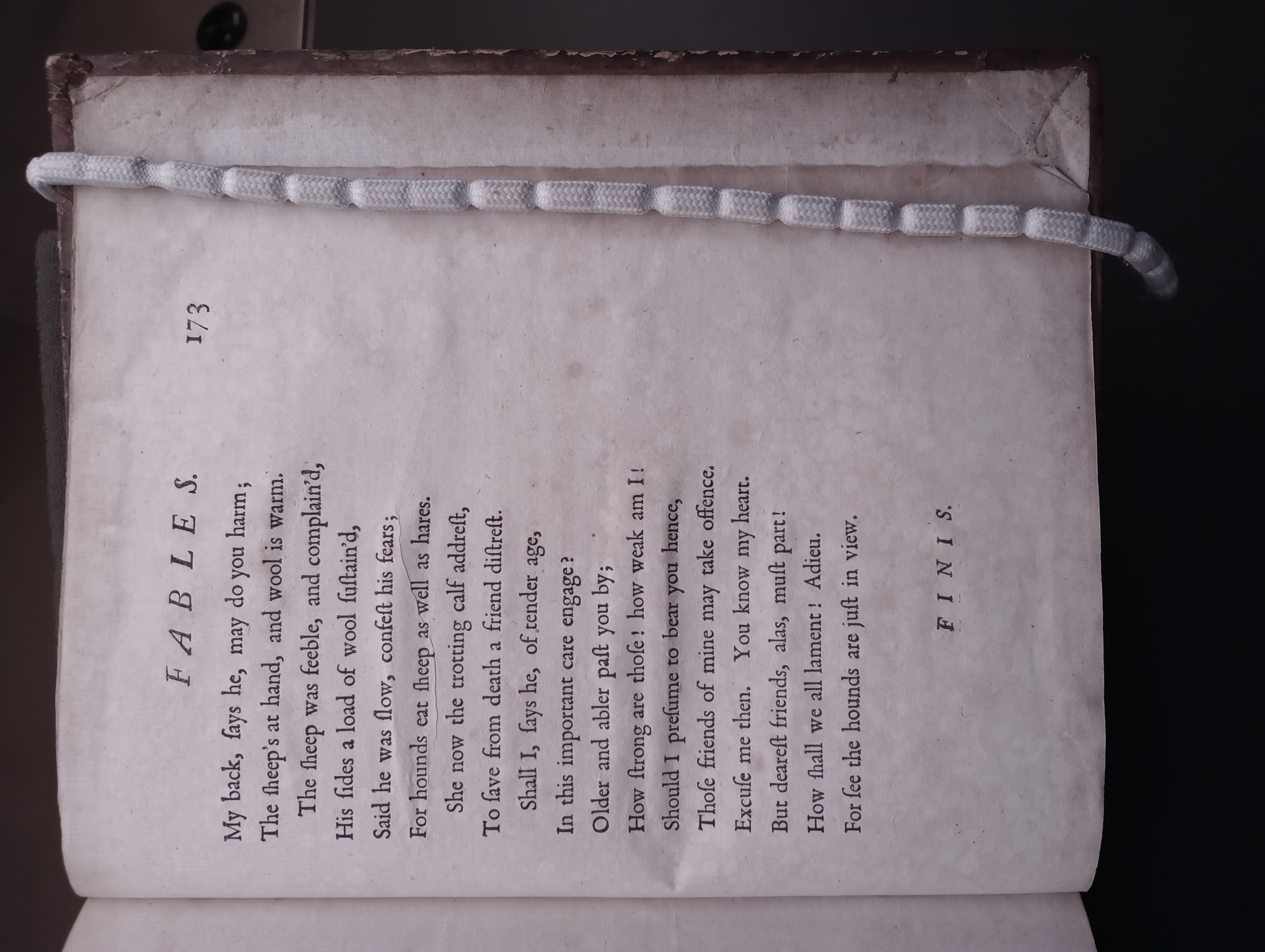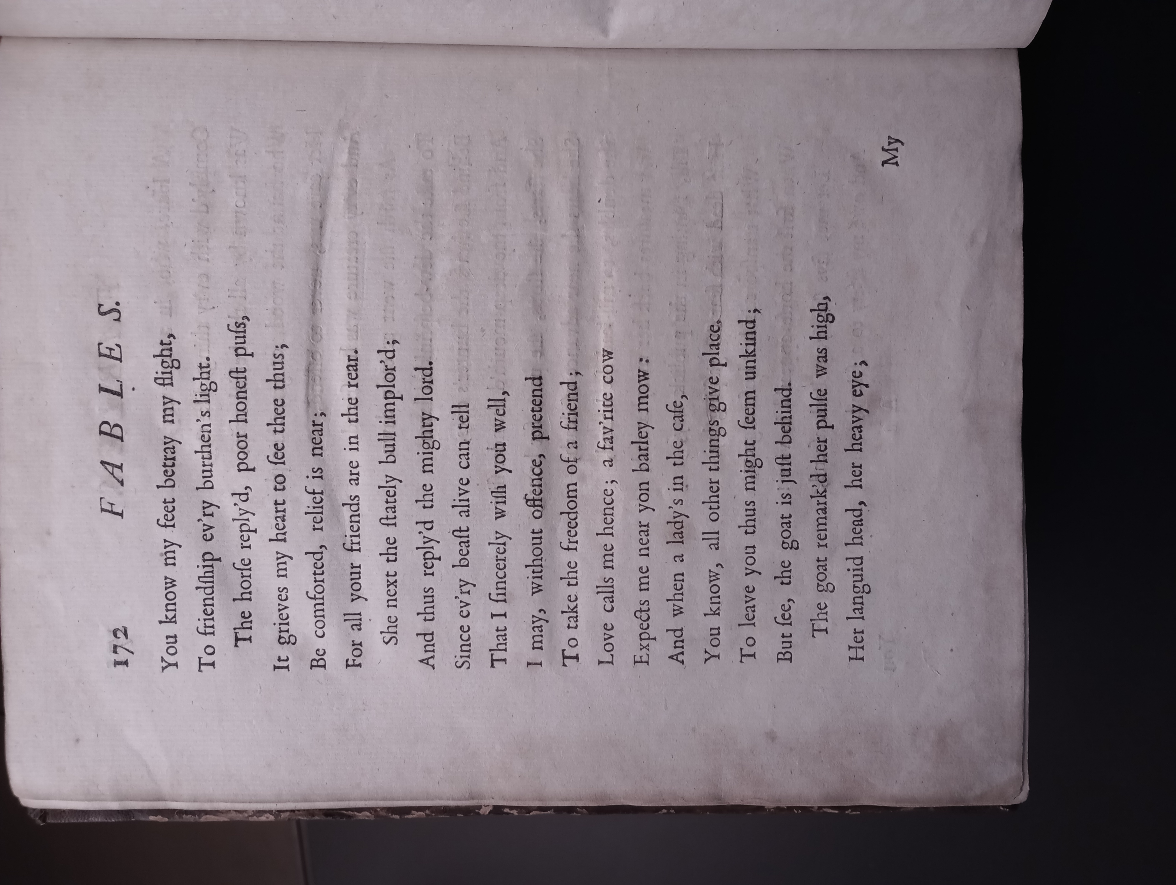 Gay, John, 1685-1732. FABLES. By Mr. GAY. London: Printed for J. Tonson and J. Watts, MDCCXXVII., 1727, pp. 170-173. [14],173,[1]p.: ill.; 4°. (ESTC T13818) (Page images digitized from a copy in the Bodleian Library [AA 29 Art.Seld.].)