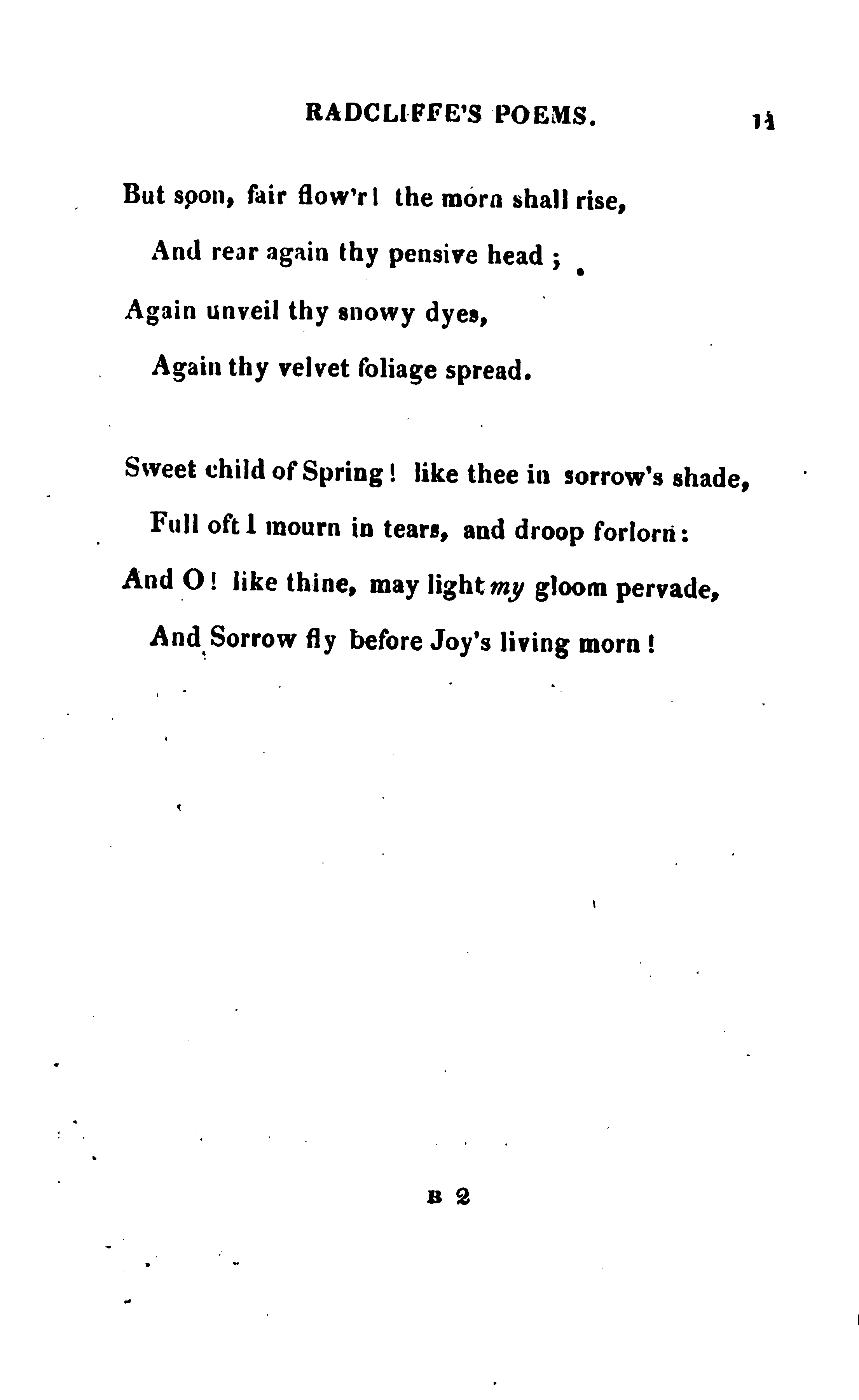 Radcliffe, Ann Ward, 1764-1823. The Poems of Mrs. Ann Radcliffe. London: printed by and for J. Smith, Princes Street, 1816, pp. 10-11. 118p. [Radcliffe's poems only, pp. 1-95] (Page images digitized from a copy held at the National Library of the Netherlands.)