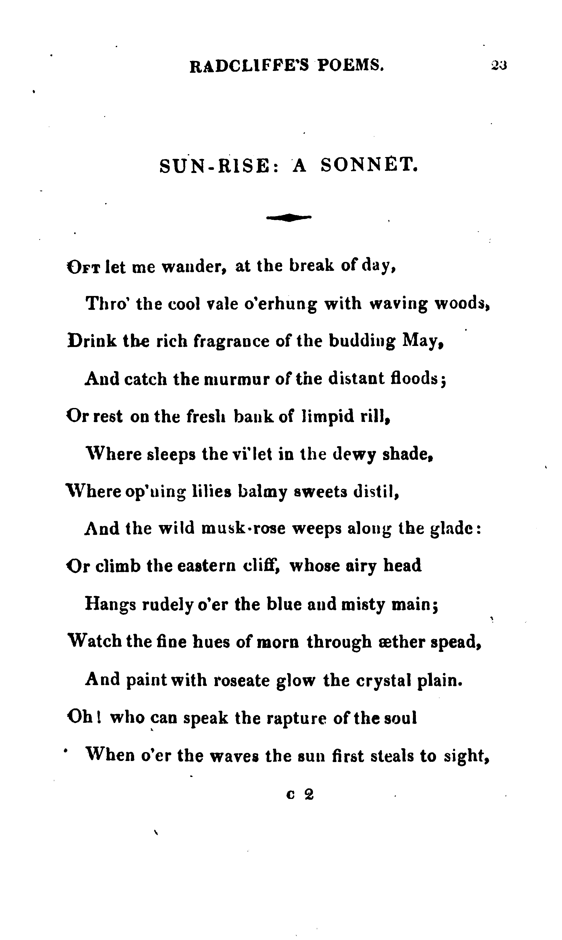 Radcliffe, Ann Ward, 1764-1823. The Poems of Mrs. Ann Radcliffe. London: printed by and for J. Smith, Princes Street, 1816, pp. 23-24. 118p. [Radcliffe's poems only, pp. 1-95] (Page images digitized from a copy held at the National Library of the Netherlands.)
