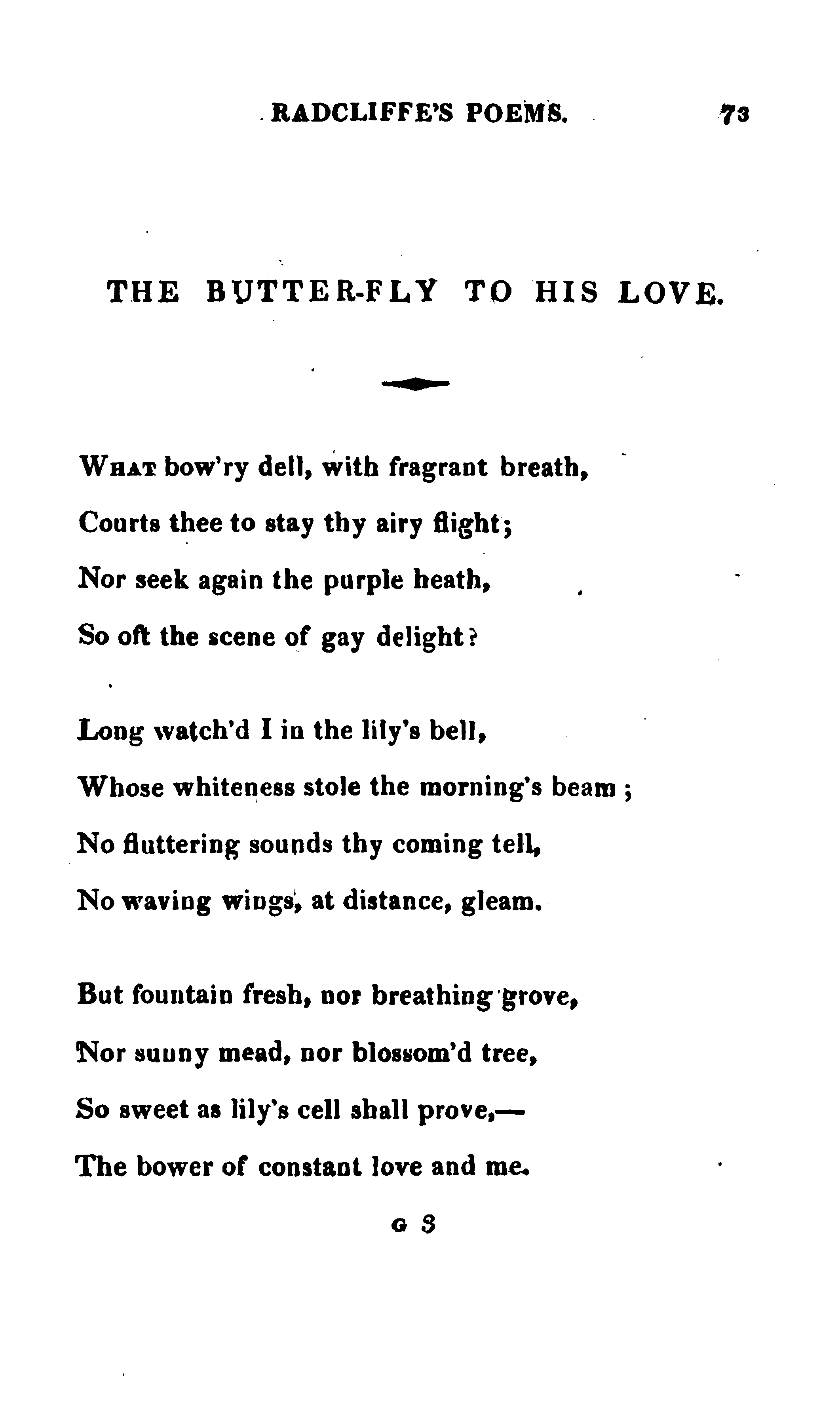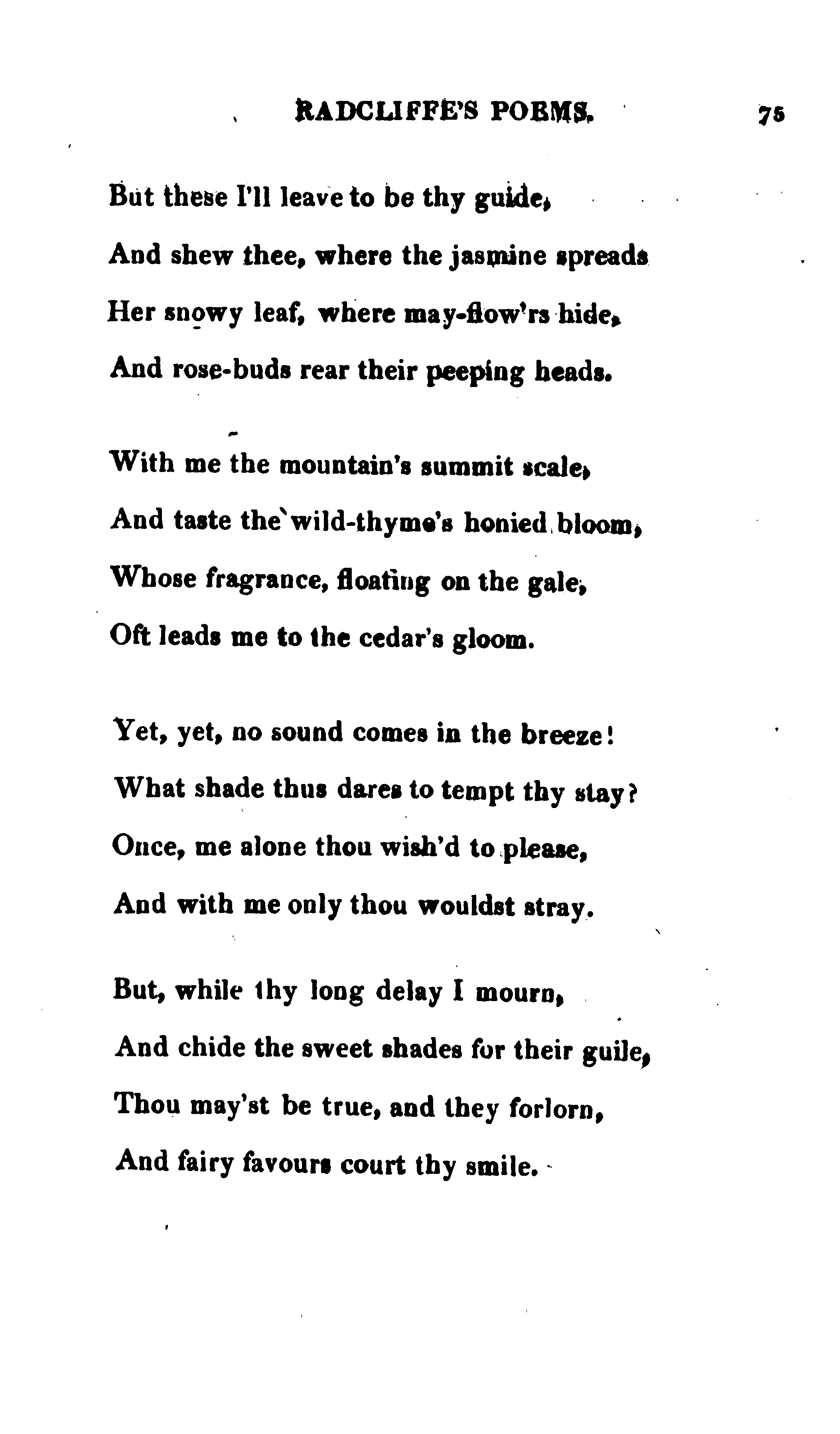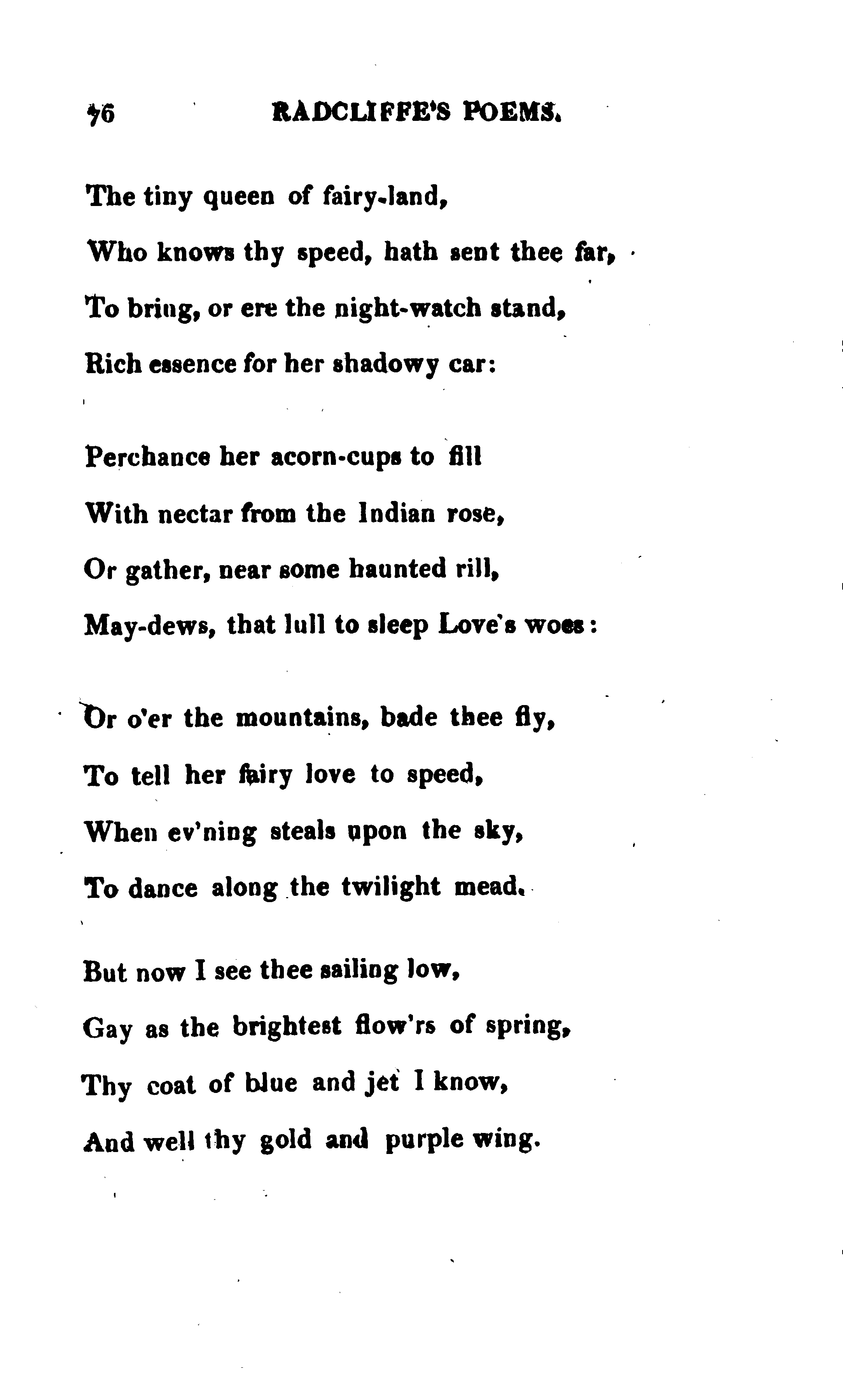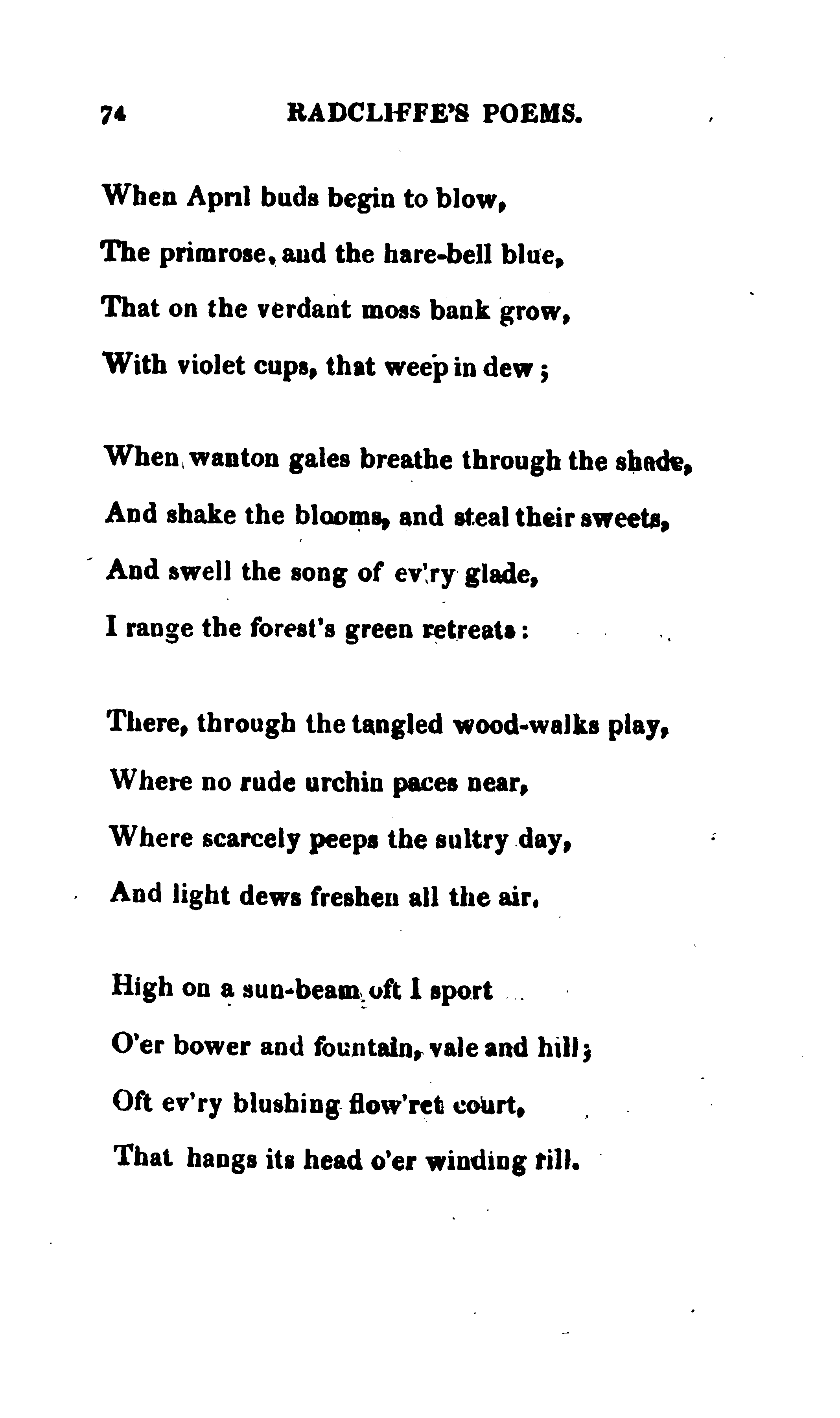 Radcliffe, Ann Ward, 1764-1823. The Poems of Mrs. Ann Radcliffe. London: printed by and for J. Smith, Princes Street, 1816, pp. 73-77. 118p. [Radcliffe's poems only, pp. 1-95] (Page images digitized from a copy held at the National Library of the Netherlands.)
