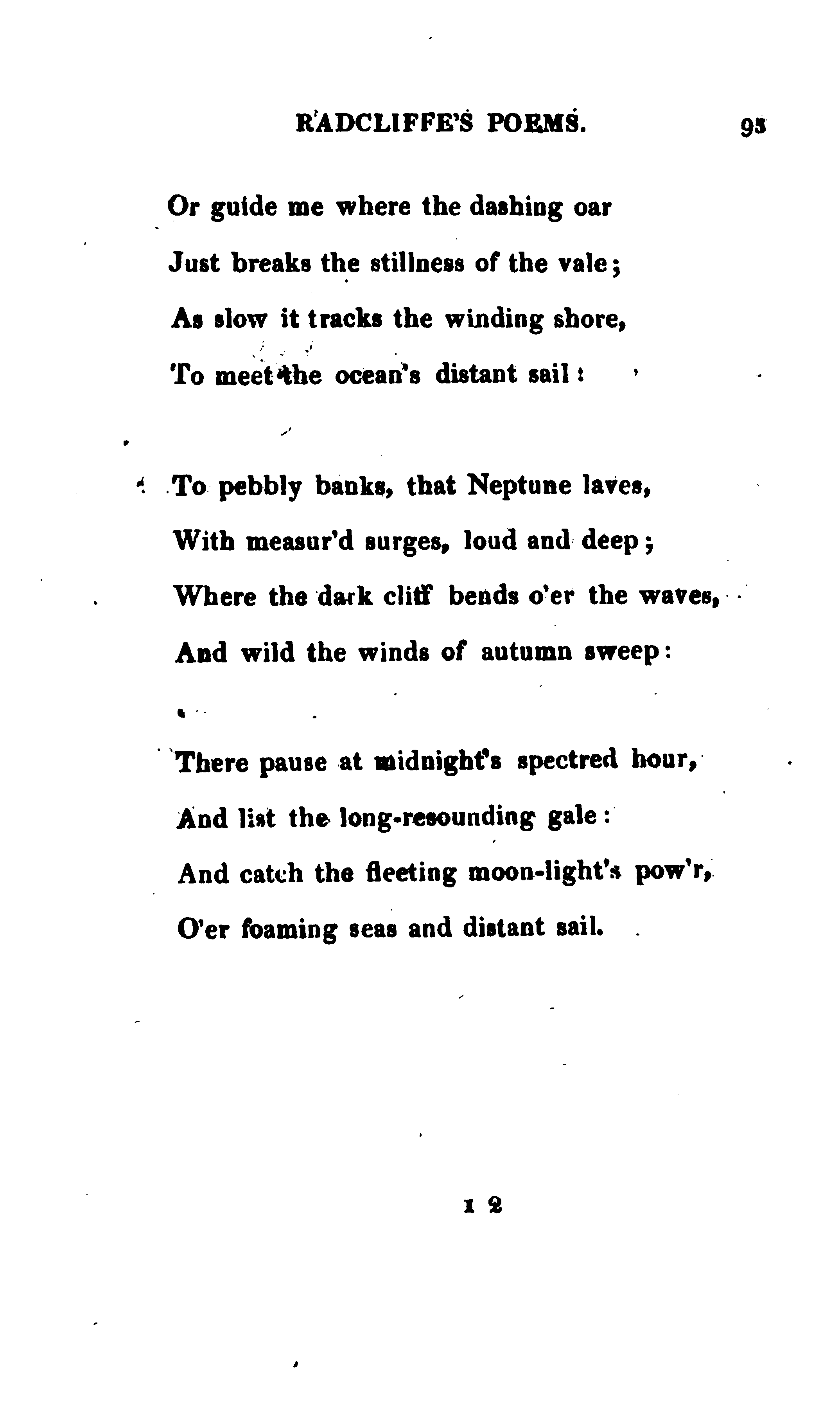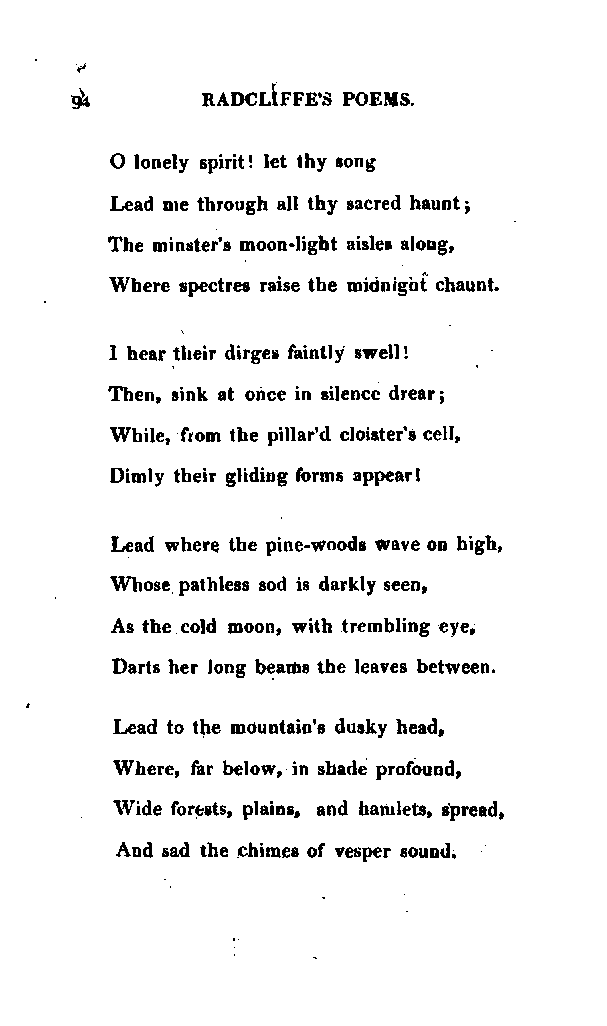 Radcliffe, Ann Ward, 1764-1823. The Poems of Mrs. Ann Radcliffe. London: printed by and for J. Smith, Princes Street, 1816, pp. 93-95. 118p. [Radcliffe's poems only, pp. 1-95] (Page images digitized from a copy held at the National Library of the Netherlands.)