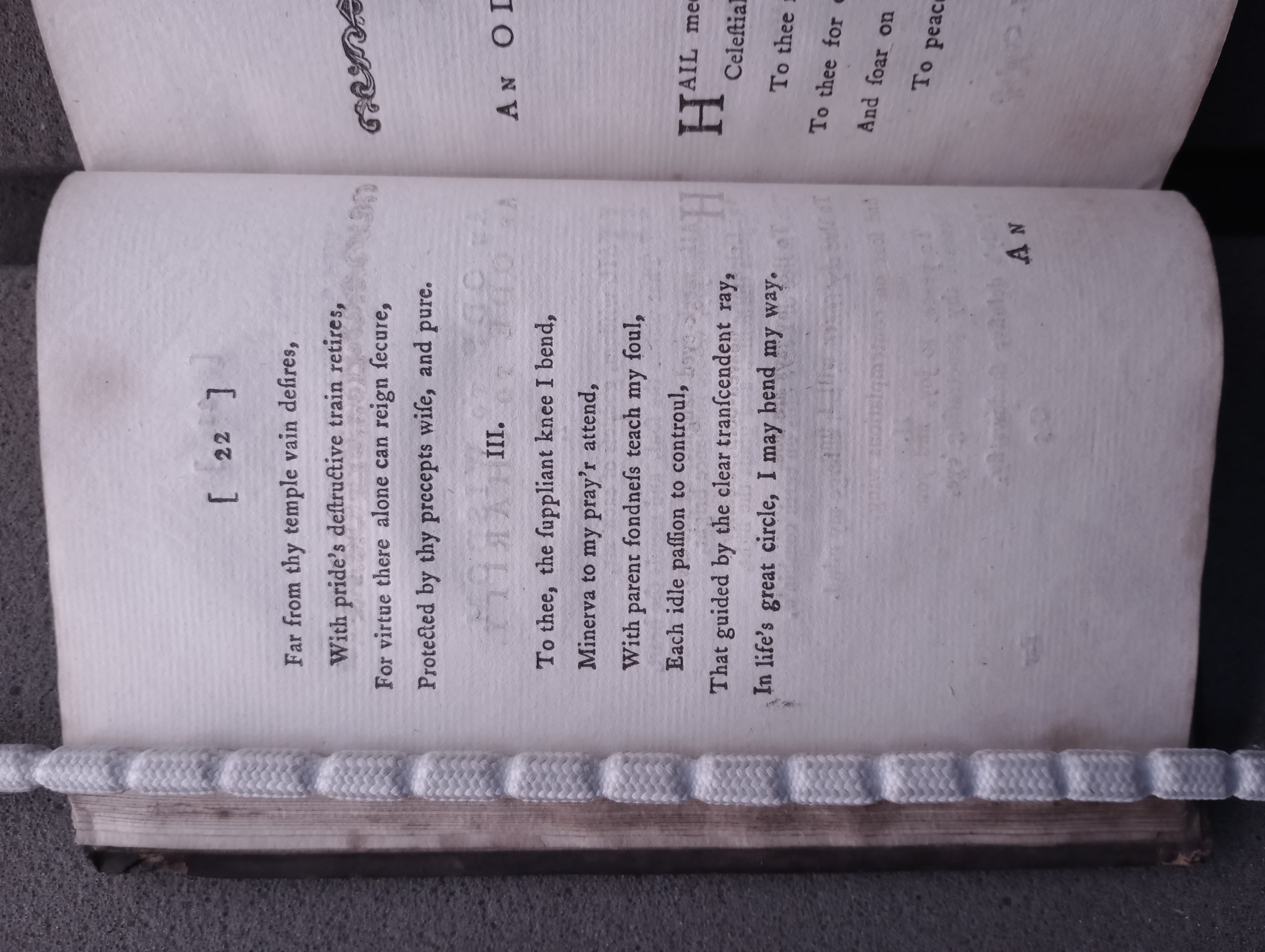 Robinson, Mary, 1758-1800. Poems by Mrs. Robinson [poems only]. London: Printed for C. Parker, the Upper Part of New Bond-Street, 1775, pp. 21-22. [8],134p.,plate; 8⁰. (ESTC T100118) (Page images digitized from a copy in the Bodleian Library [Harding C 2601].)
