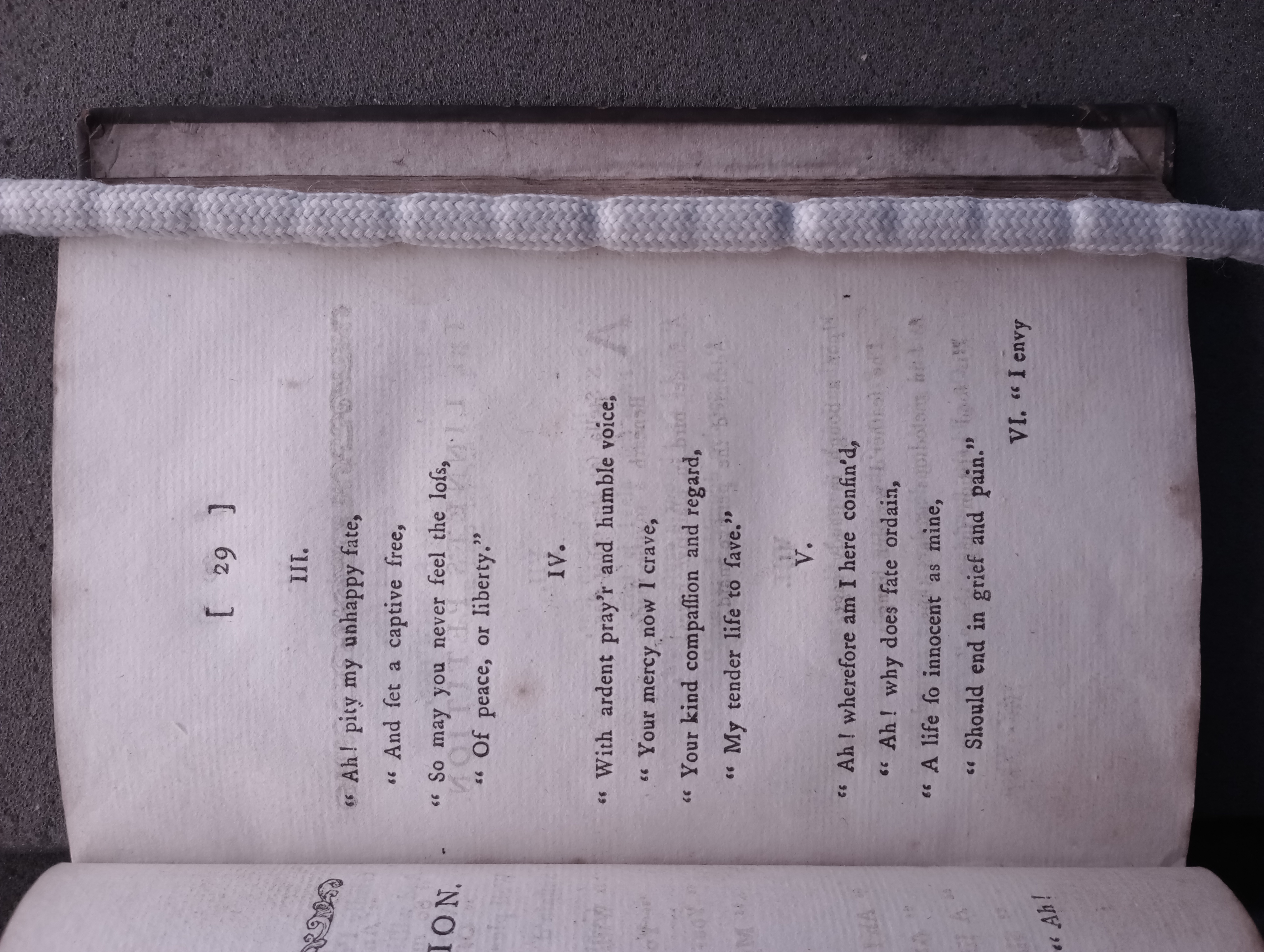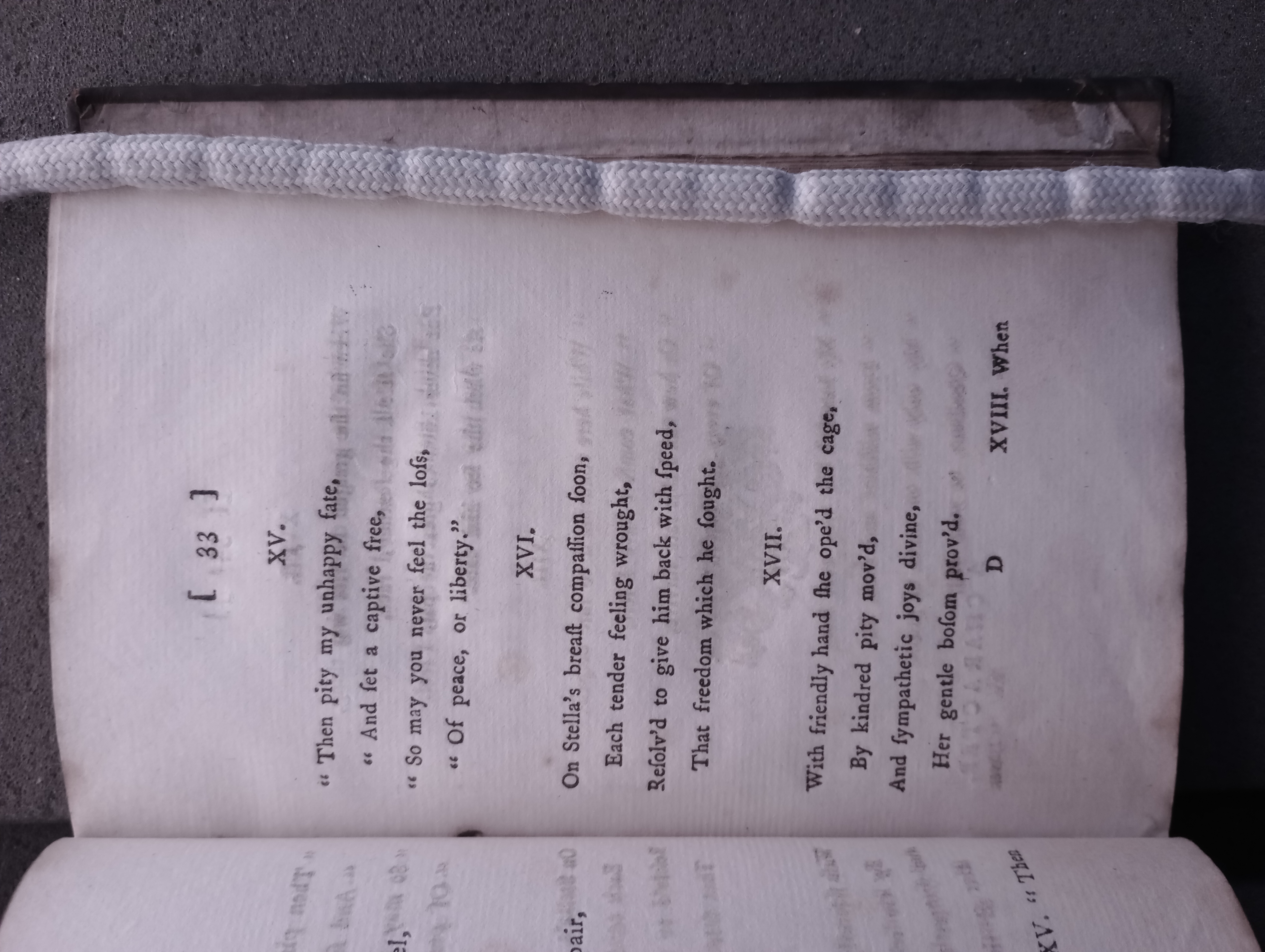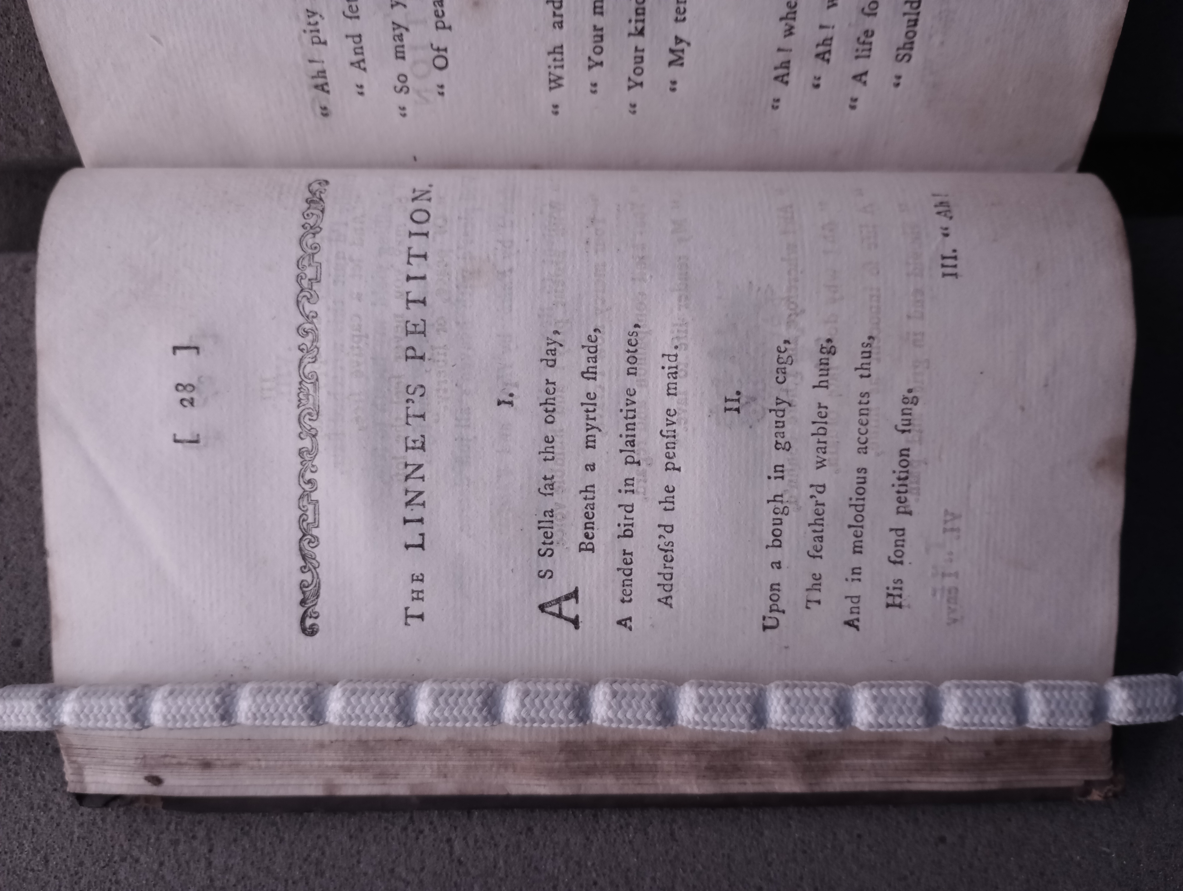 Robinson, Mary, 1758-1800. Poems by Mrs. Robinson [poems only]. London: Printed for C. Parker, the Upper Part of New Bond-Street, 1775, pp. 28-34. [8],134p.,plate; 8⁰. (ESTC T100118) (Page images digitized from a copy in the Bodleian Library [Harding C 2601].)