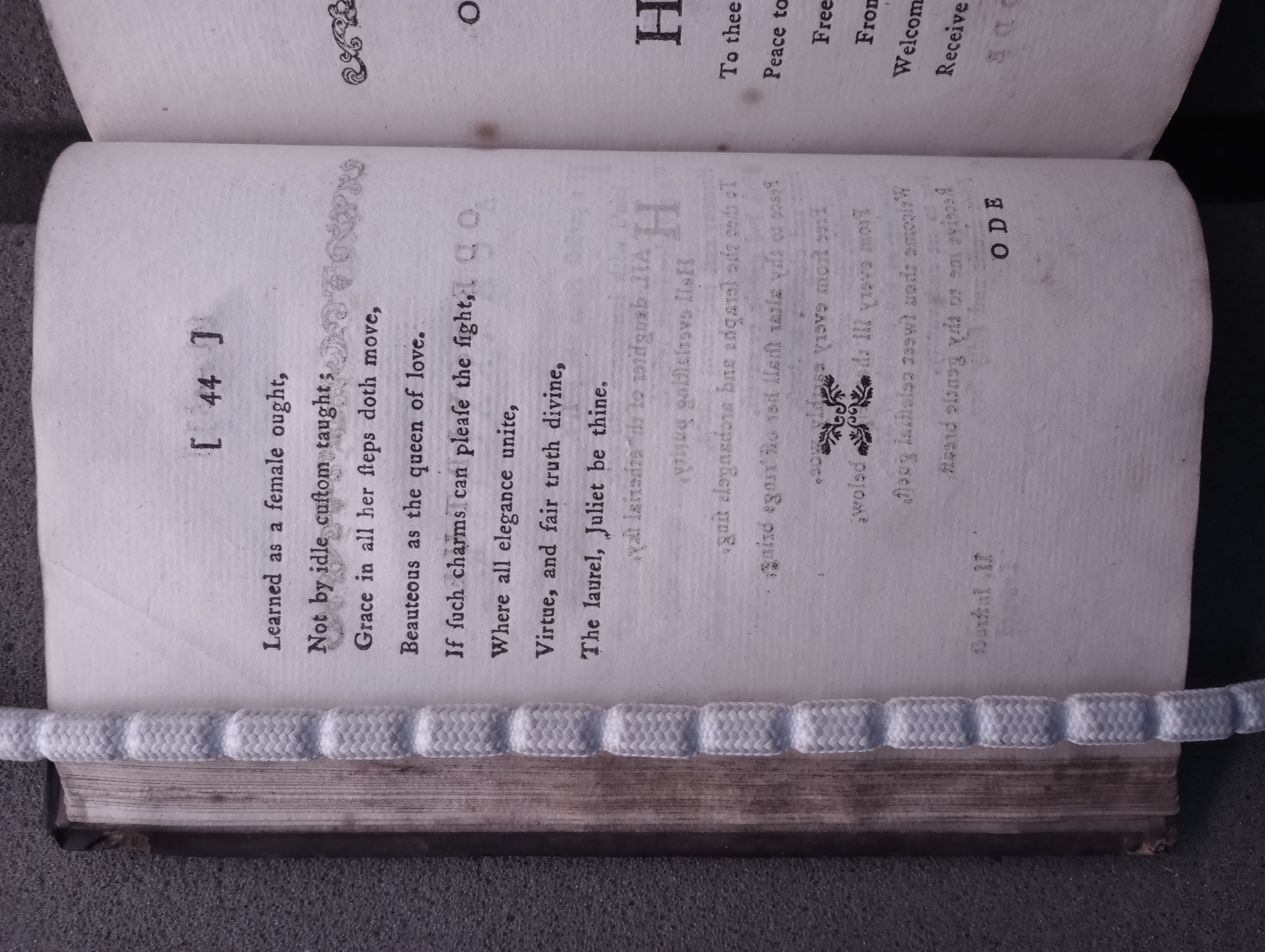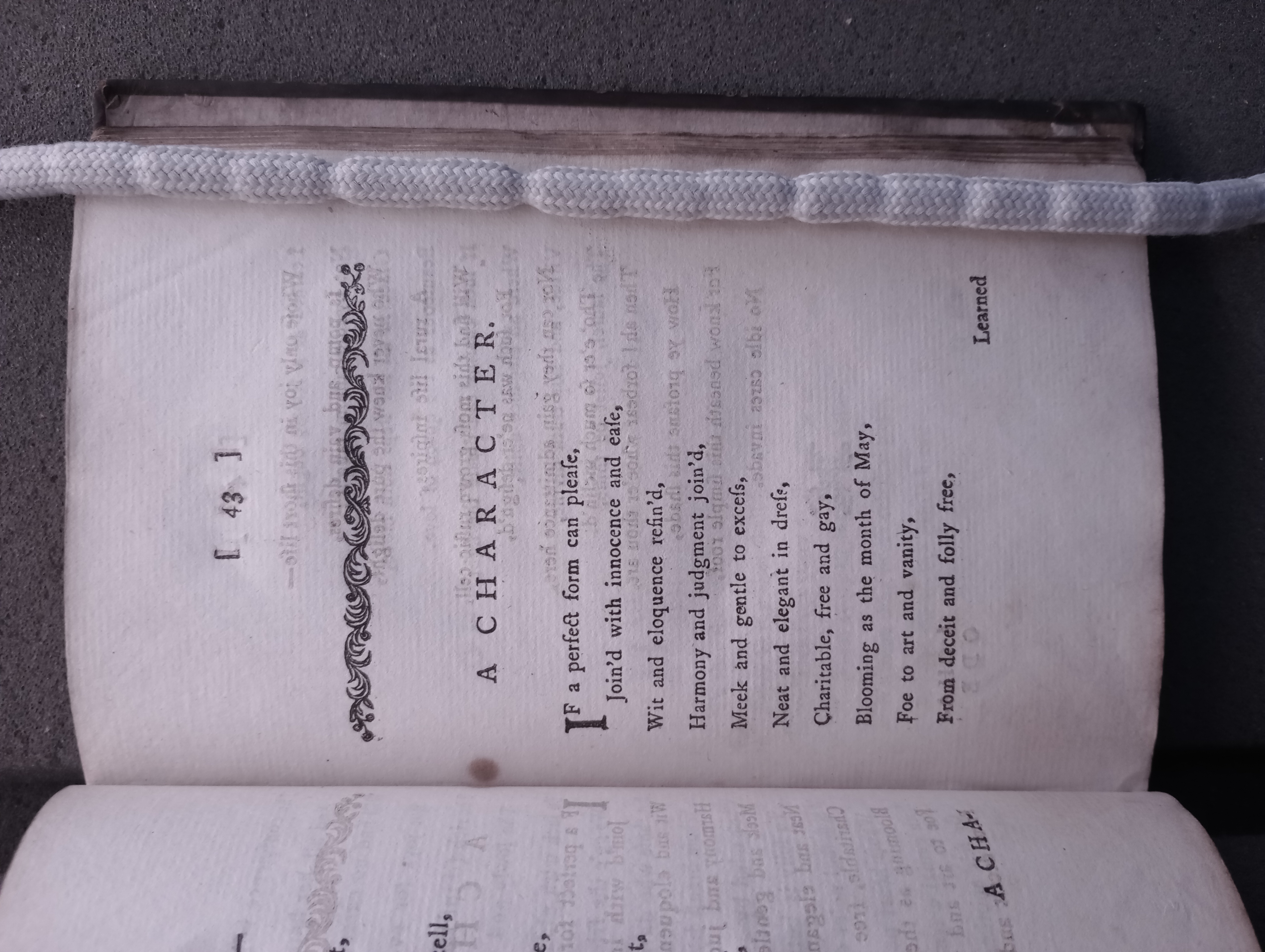 Robinson, Mary, 1758-1800. Poems by Mrs. Robinson [poems only]. London: Printed for C. Parker, the Upper Part of New Bond-Street, 1775, pp. 43-44. [8],134p.,plate; 8⁰. (ESTC T100118) (Page images digitized from a copy in the Bodleian Library [Harding C 2601].)