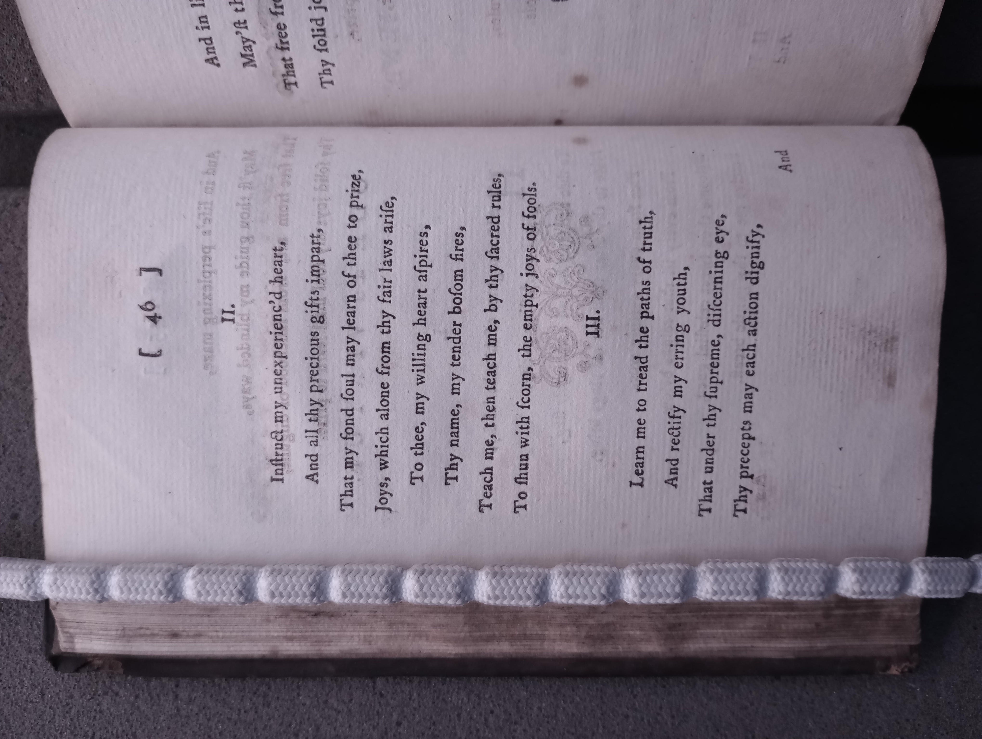 Robinson, Mary, 1758-1800. Poems by Mrs. Robinson [poems only]. London: Printed for C. Parker, the Upper Part of New Bond-Street, 1775, pp. 45-47. [8],134p.,plate; 8⁰. (ESTC T100118) (Page images digitized from a copy in the Bodleian Library [Harding C 2601].)