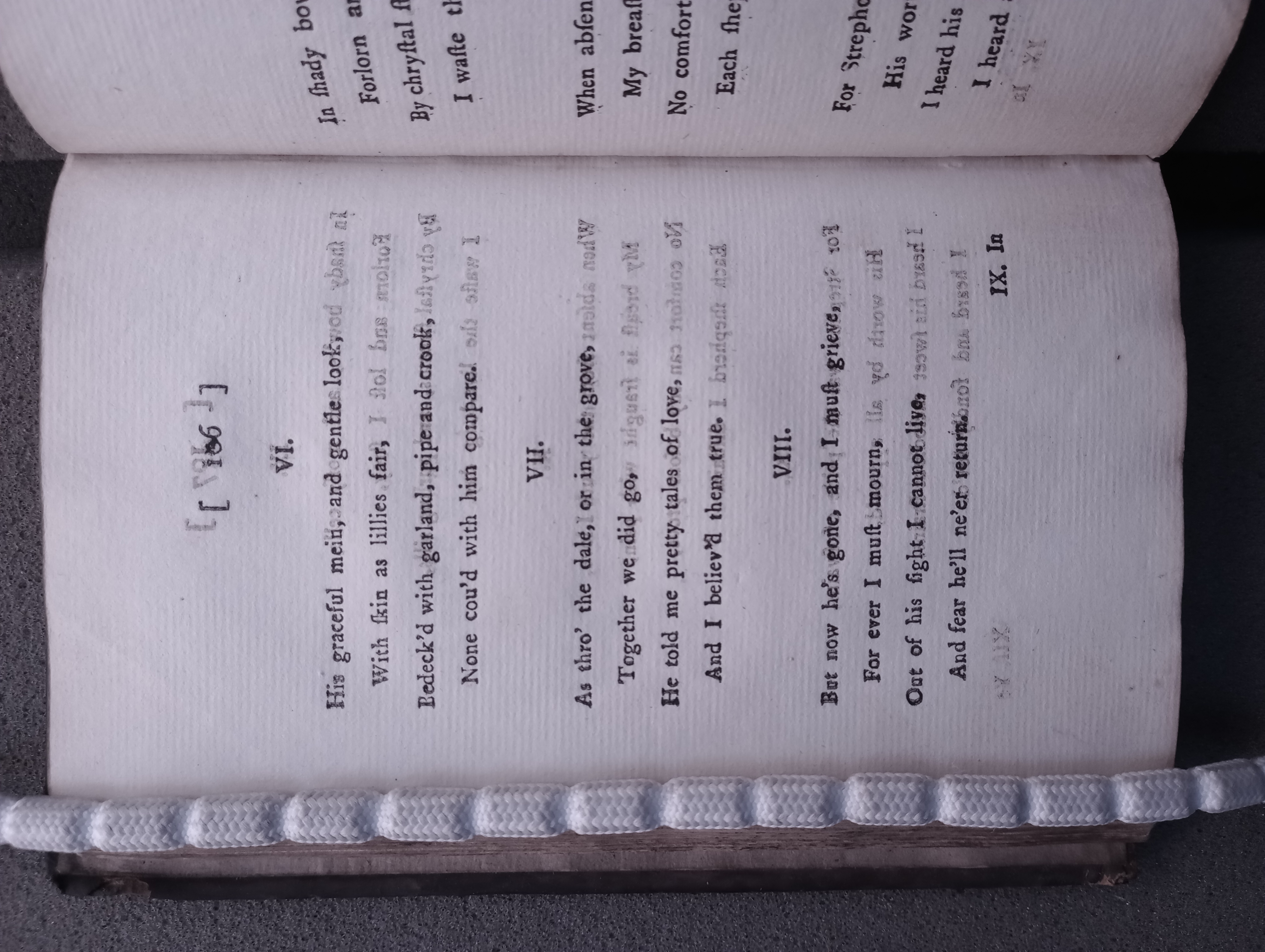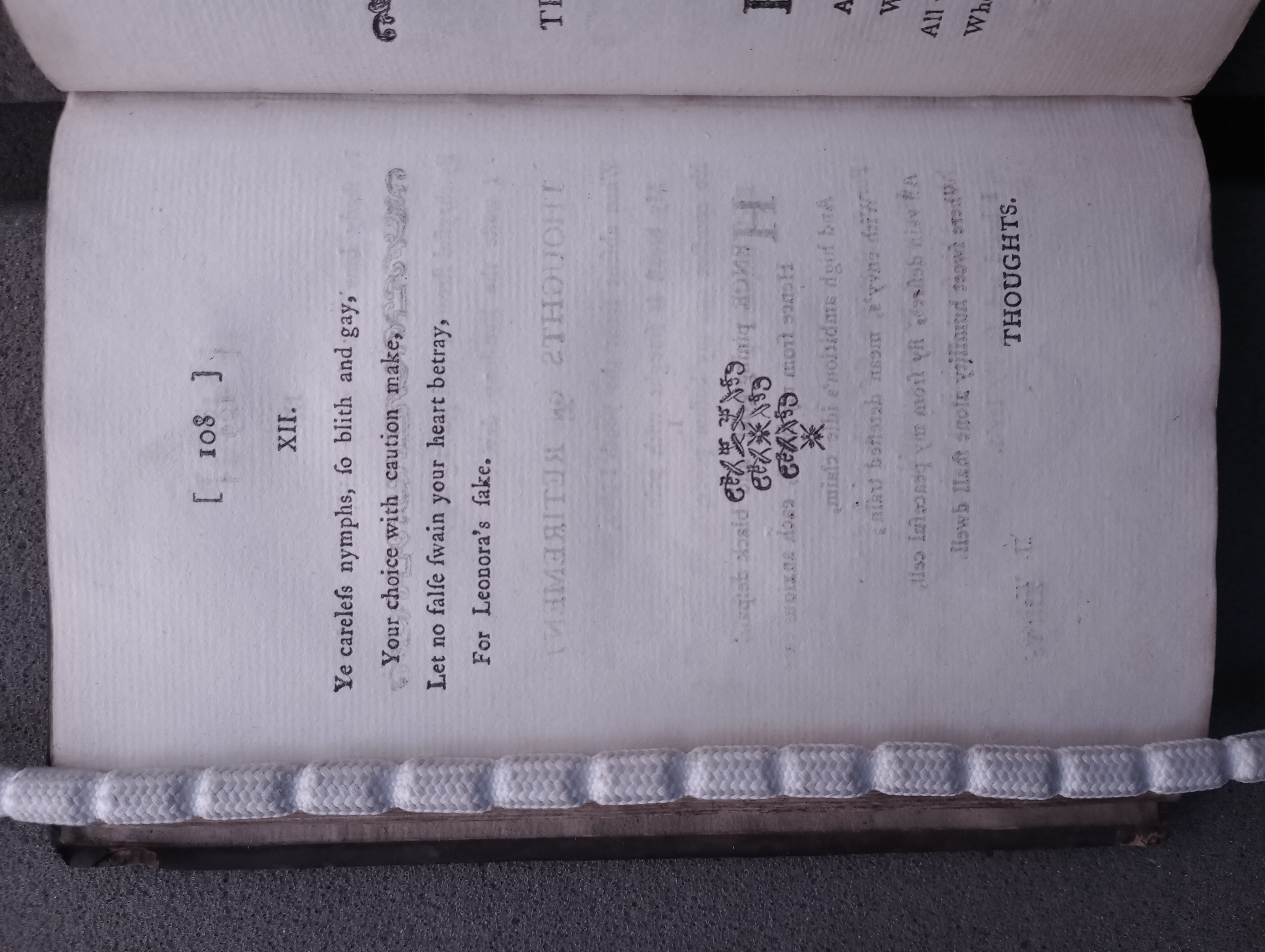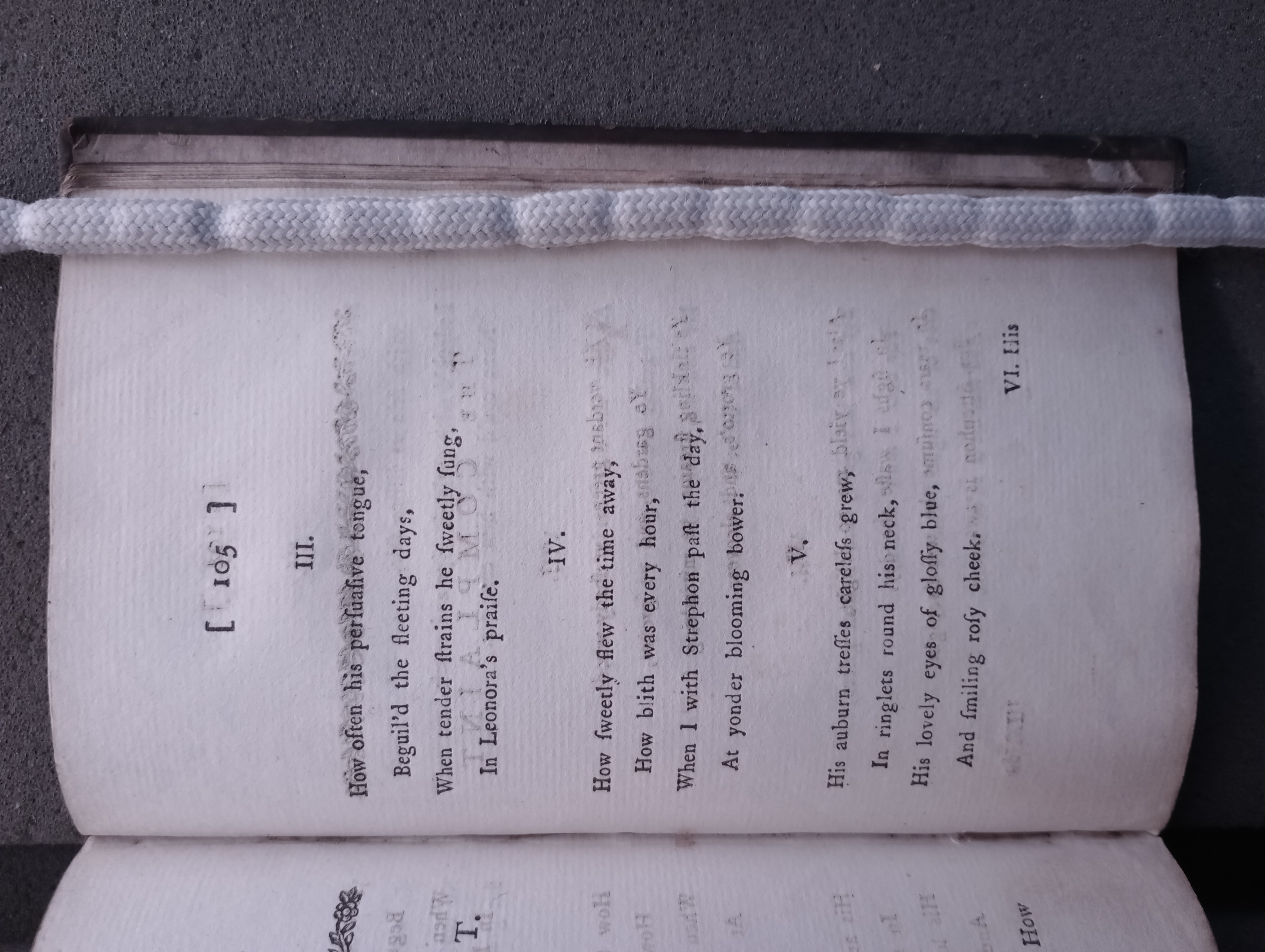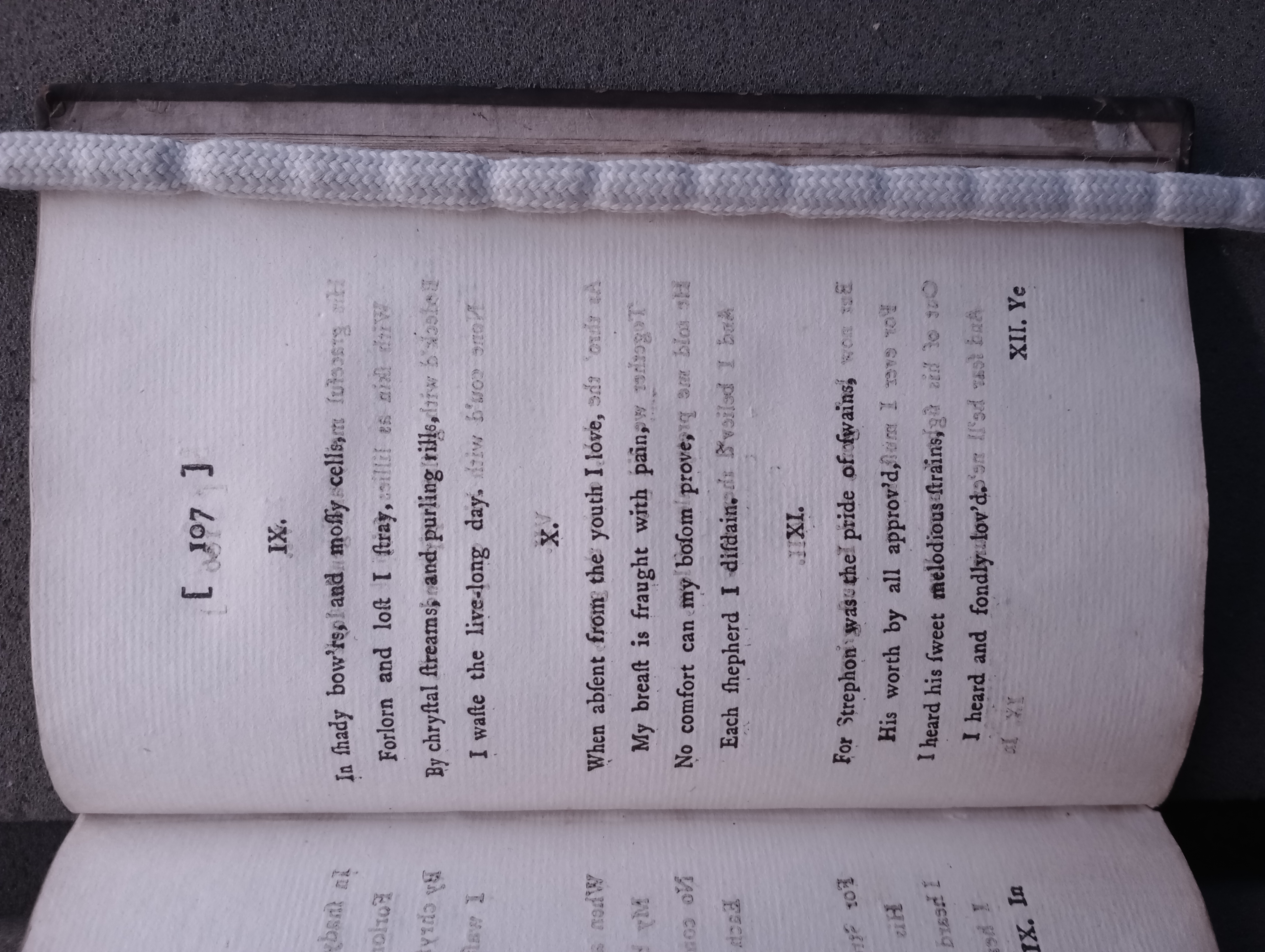 Robinson, Mary, 1758-1800. Poems by Mrs. Robinson [poems only]. London: Printed for C. Parker, the Upper Part of New Bond-Street, 1775, pp. 104-108. [8],134p.,plate; 8⁰. (ESTC T100118) (Page images digitized from a copy in the Bodleian Library [Harding C 2601].)
