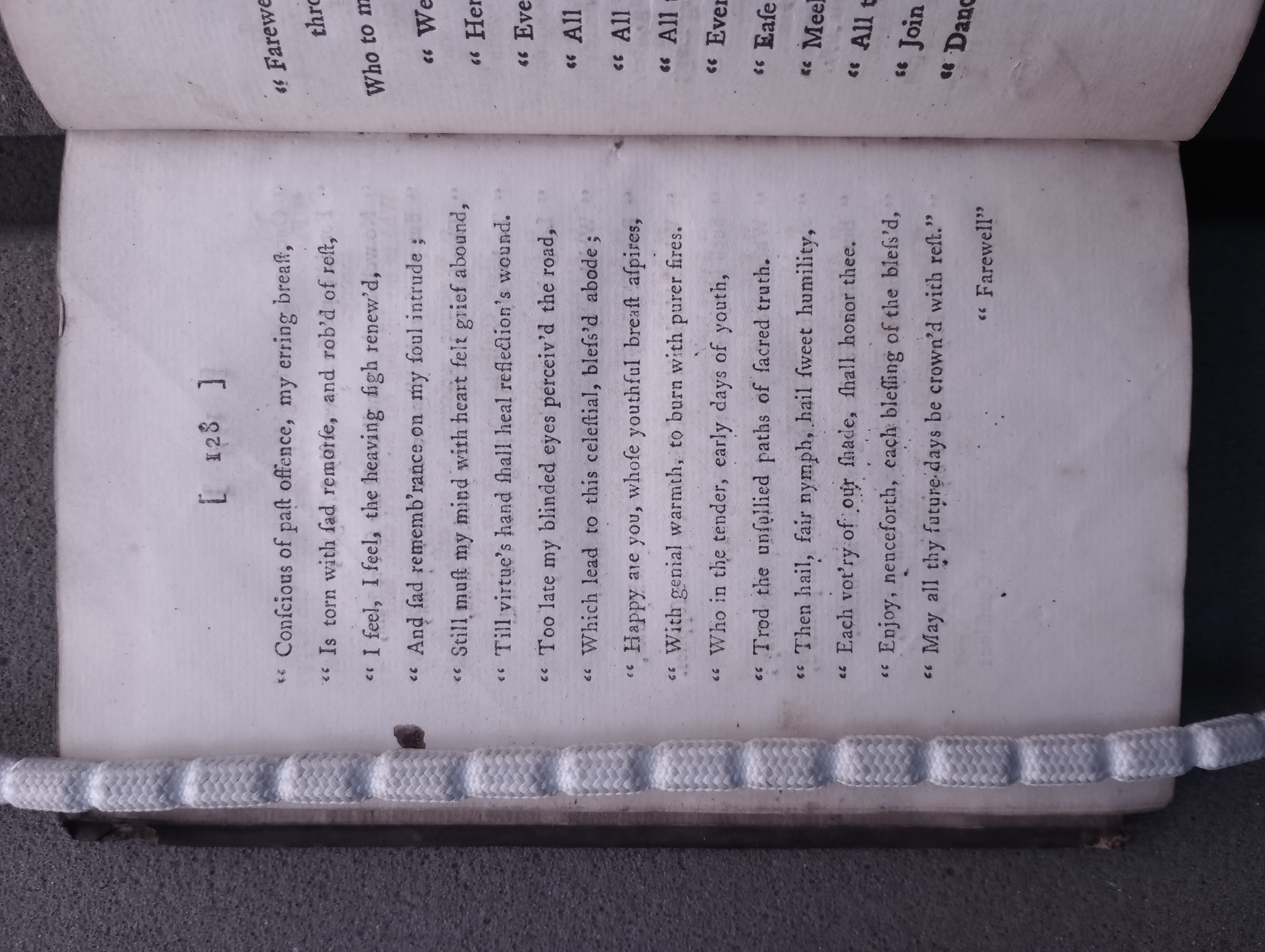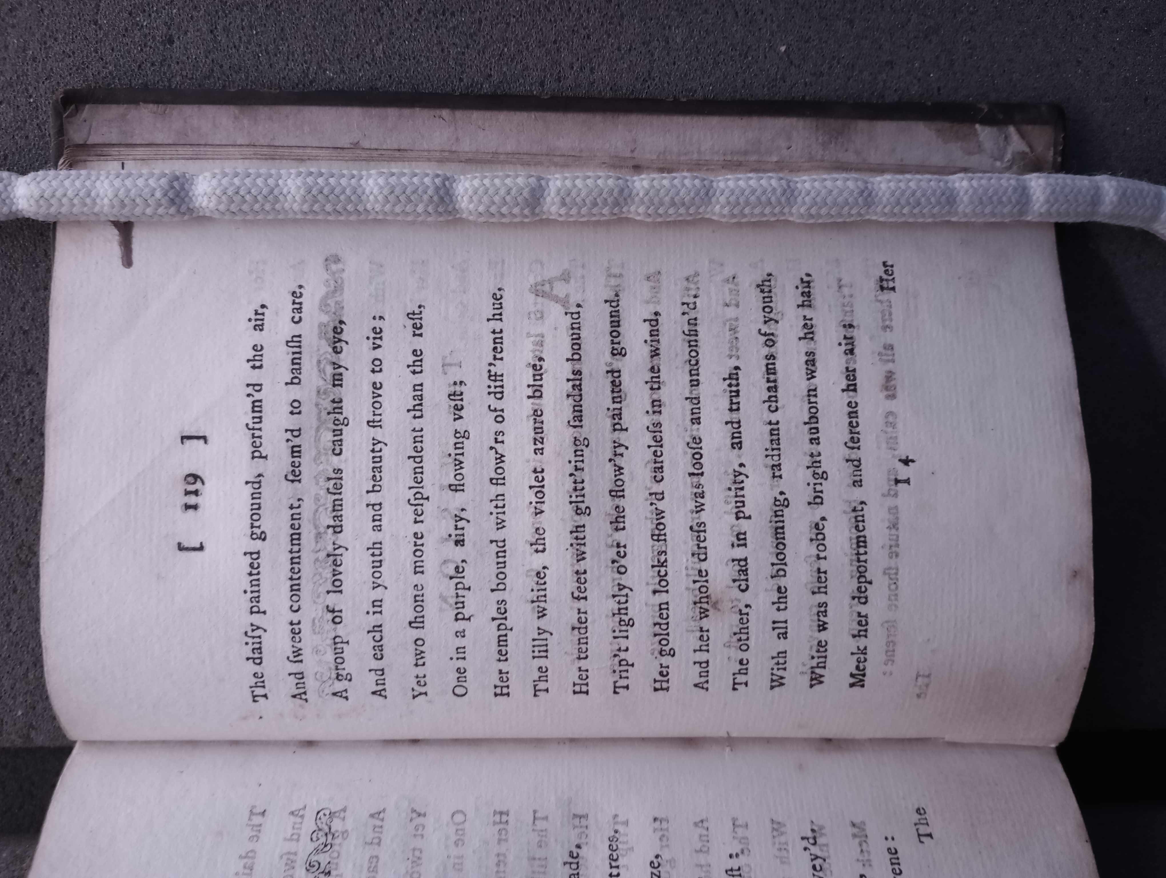 Robinson, Mary, 1758-1800. Poems by Mrs. Robinson [poems only]. London: Printed for C. Parker, the Upper Part of New Bond-Street, 1775, pp. 118-130. [8],134p.,plate; 8⁰. (ESTC T100118) (Page images digitized from a copy in the Bodleian Library [Harding C 2601].)