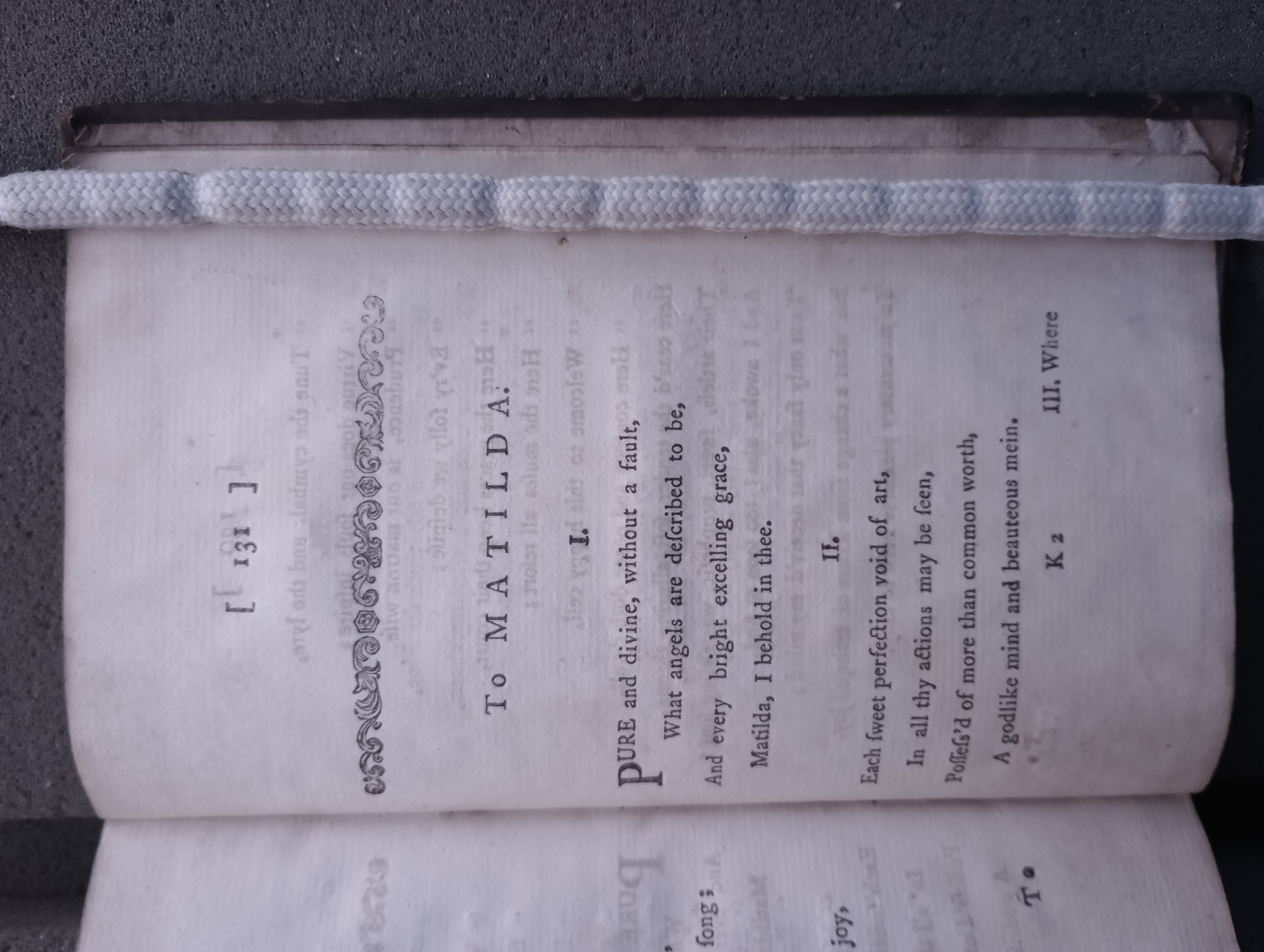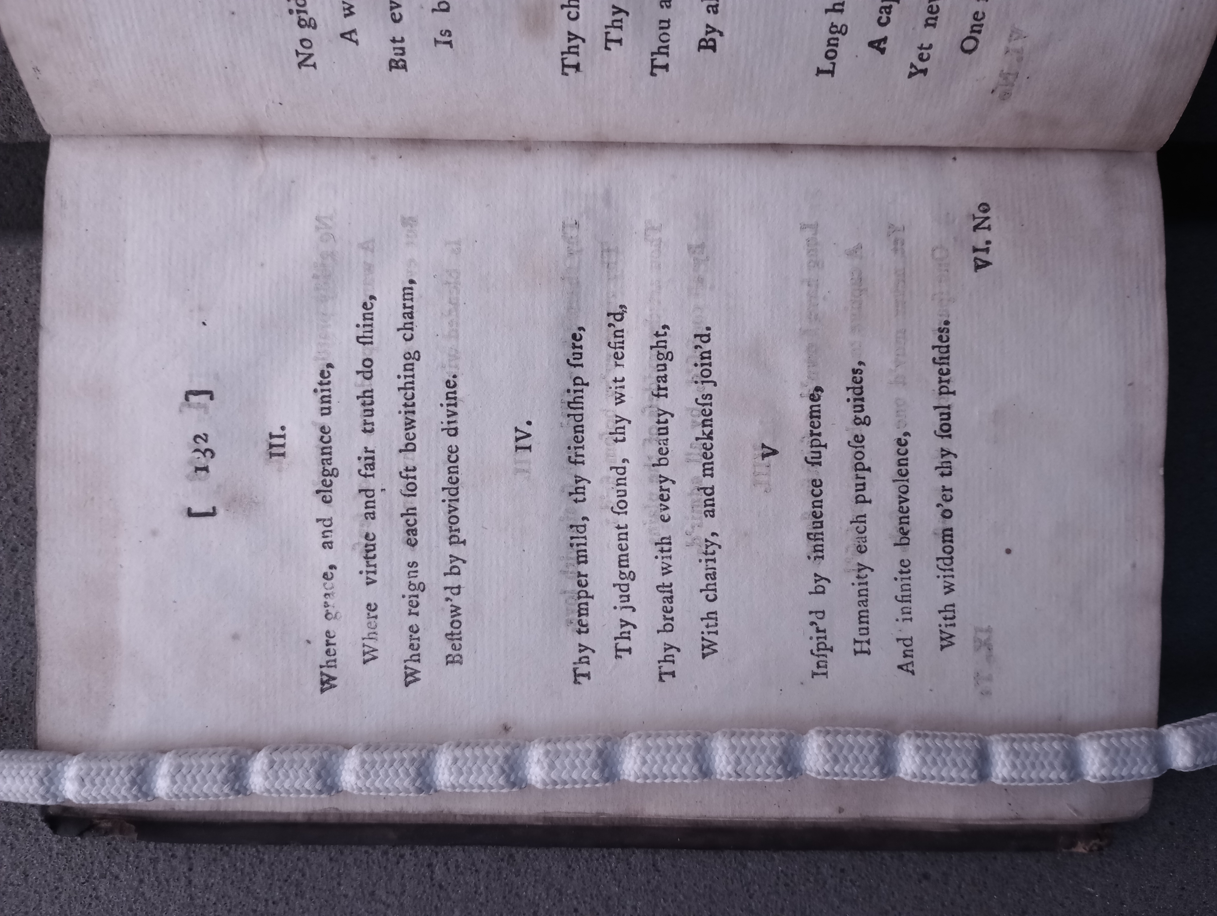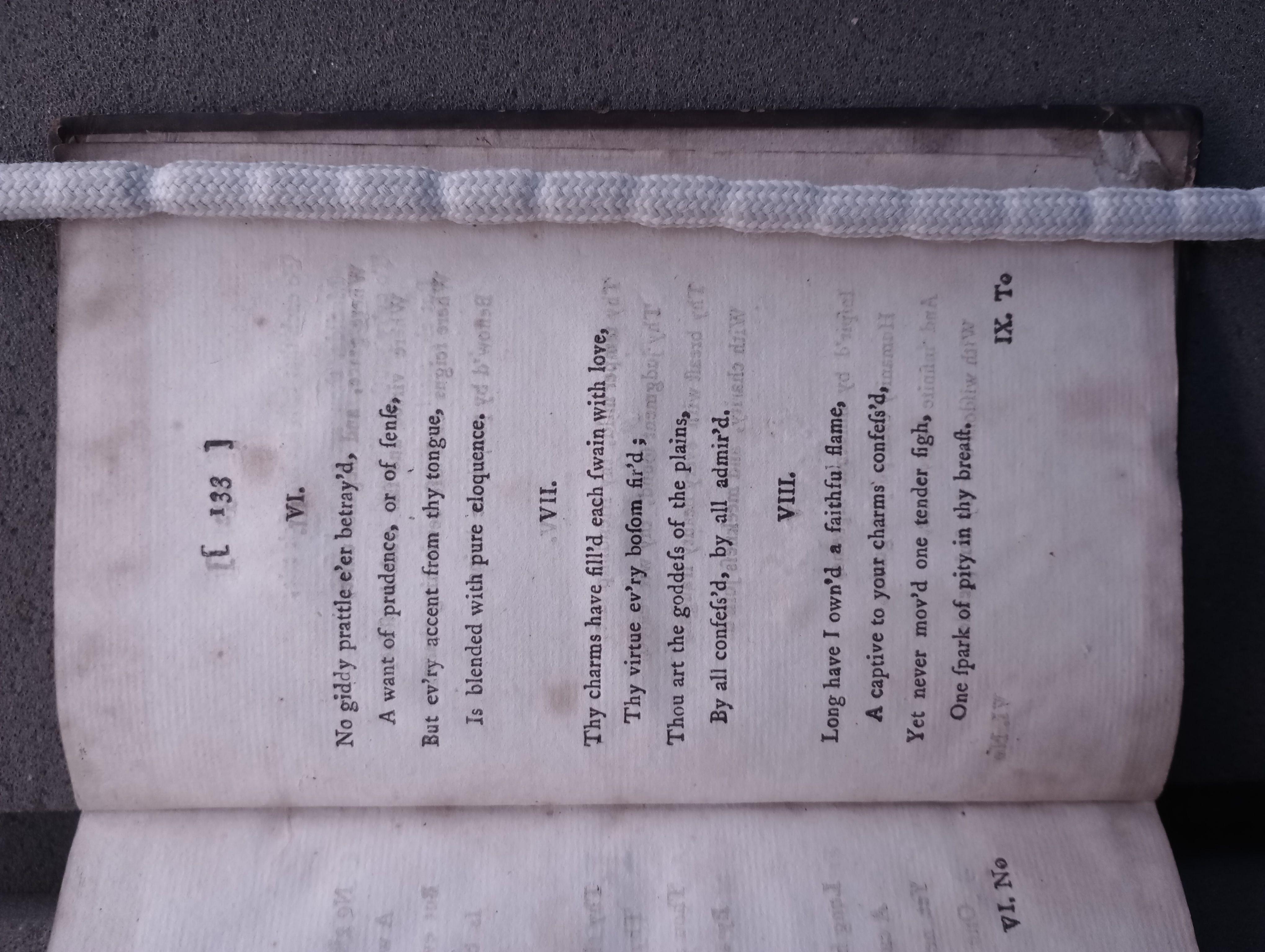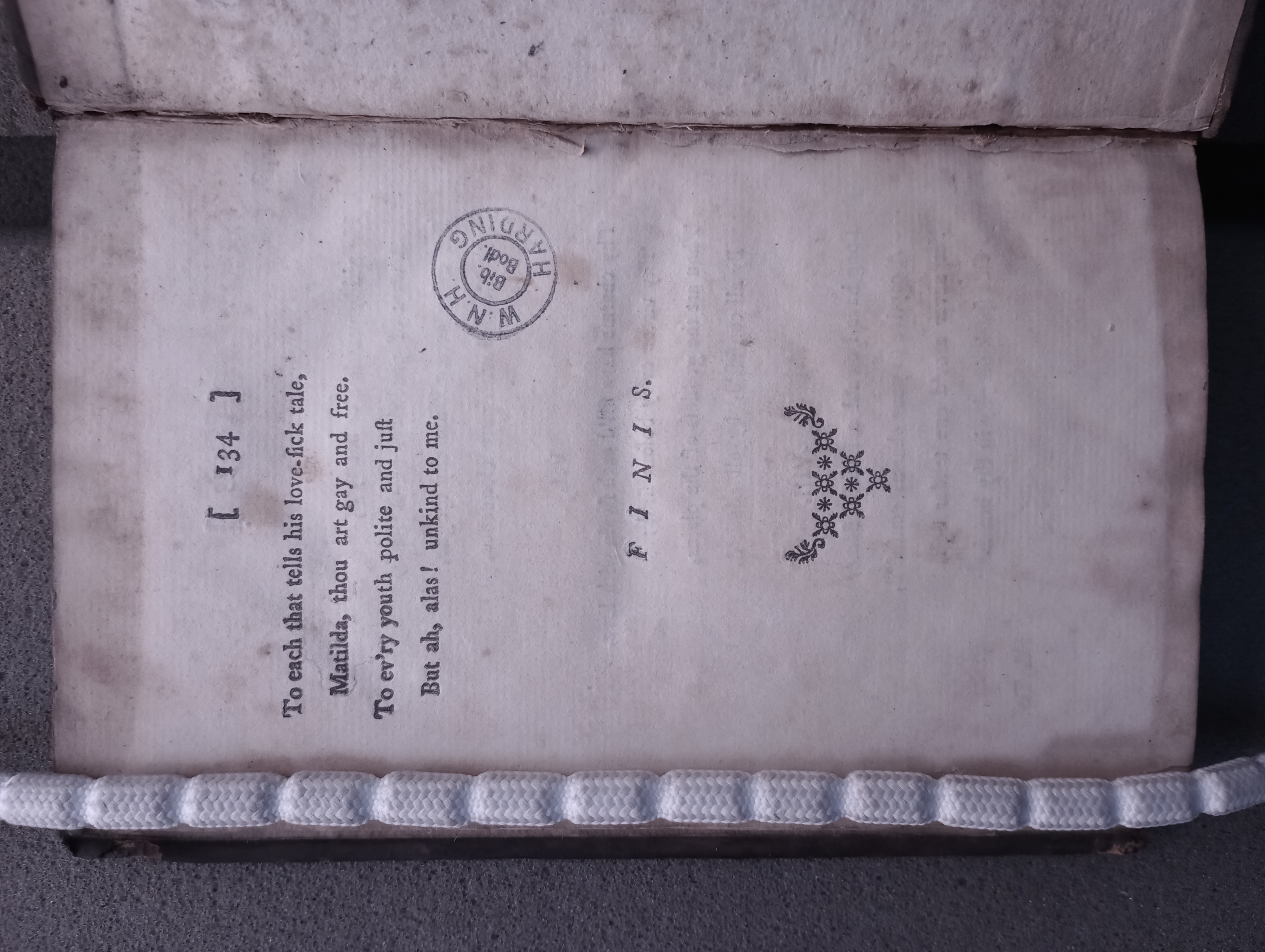 Robinson, Mary, 1758-1800. Poems by Mrs. Robinson [poems only]. London: Printed for C. Parker, the Upper Part of New Bond-Street, 1775, pp. 131-134. [8],134p.,plate; 8⁰. (ESTC T100118) (Page images digitized from a copy in the Bodleian Library [Harding C 2601].)